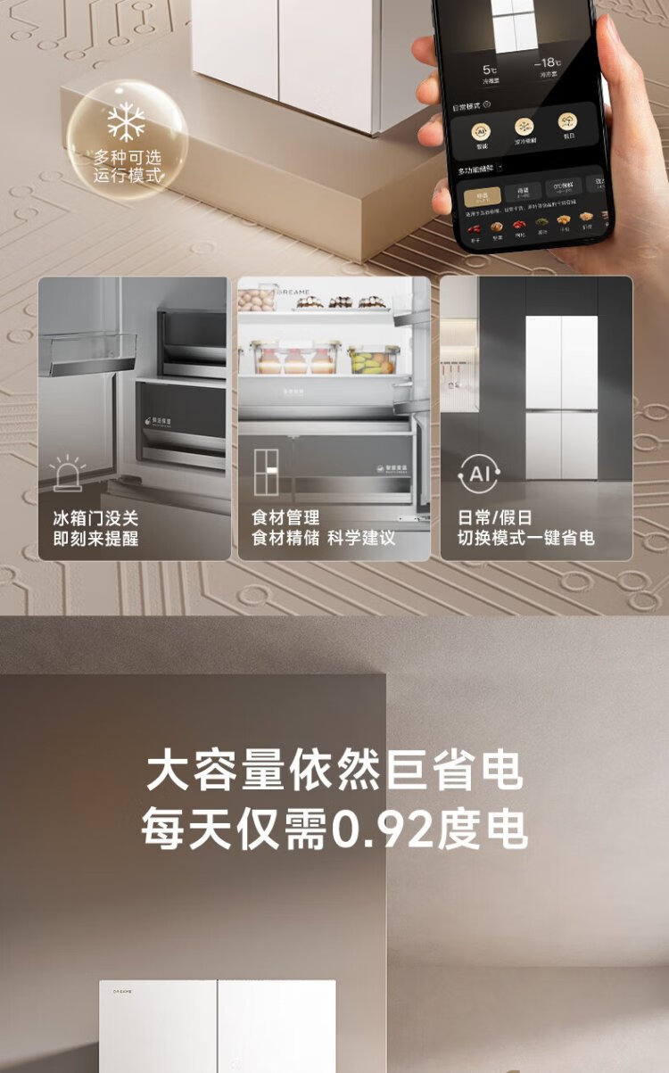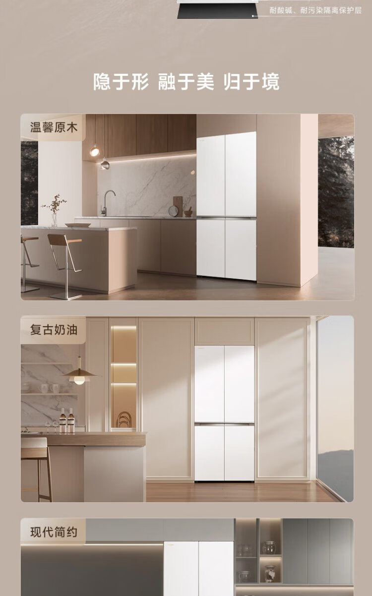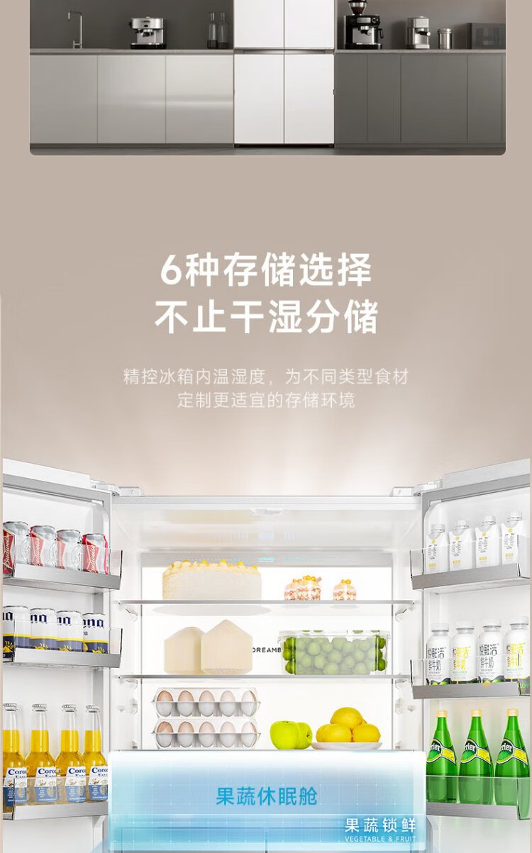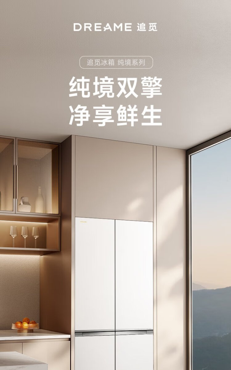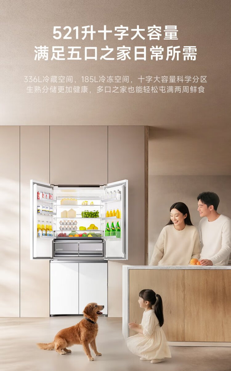 Chuimi Refrigerator Pureland D Series 521L Large Capacity Cross Four Door Multi-Door Double Cycle Dual System Home Refrigerator Ultra-thin Embedded Global Dynamic Sterilization and Deodorization VITA Fresh Lock First-Class Energy Saving + Air Cooling Frost-free + Four-speed Intelligent Temperature Variation