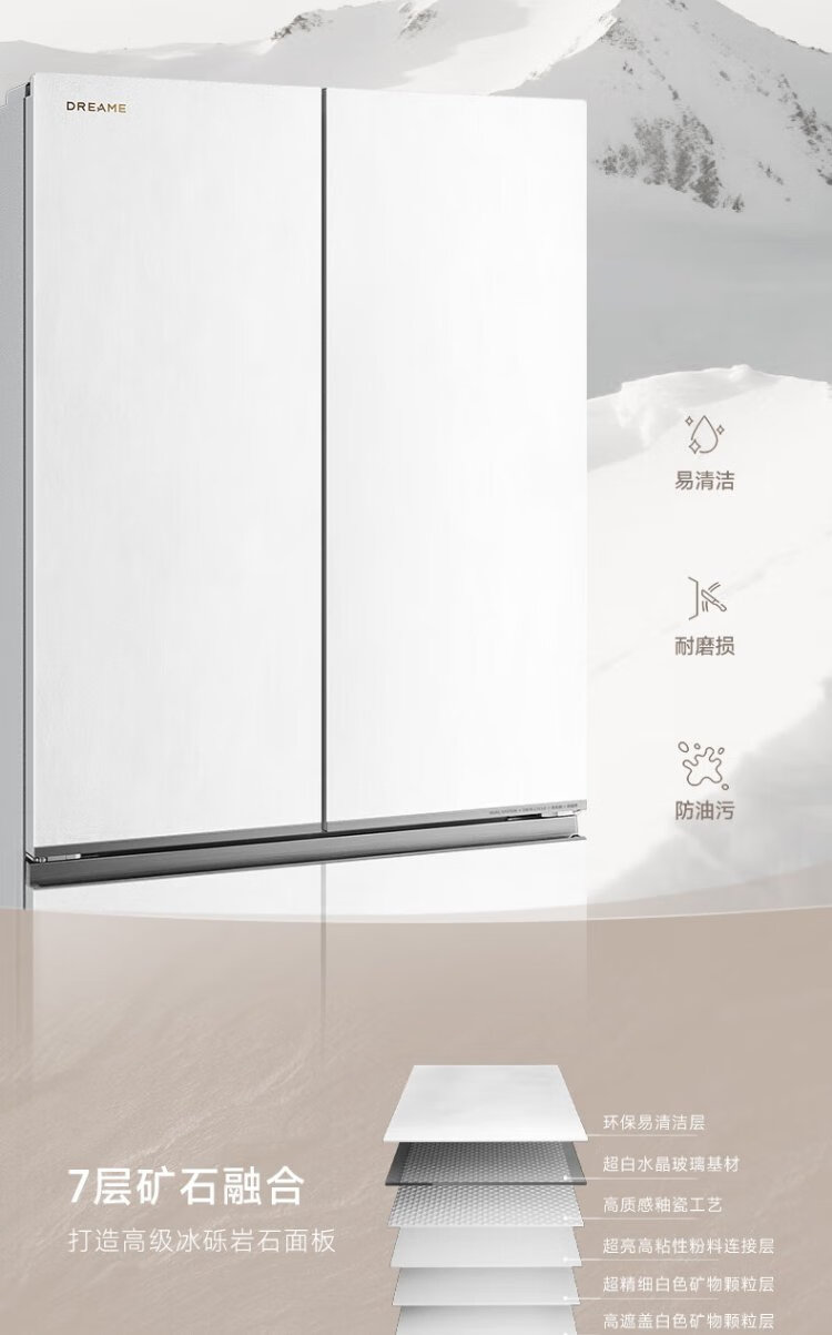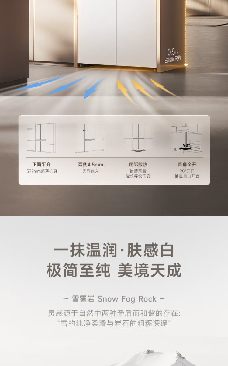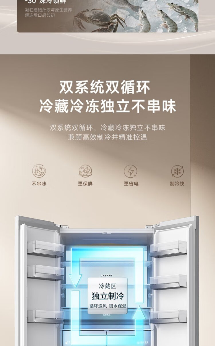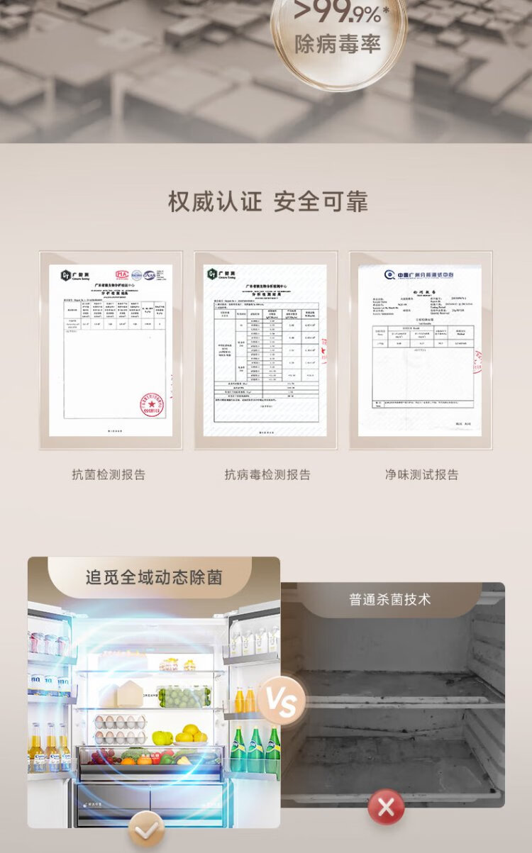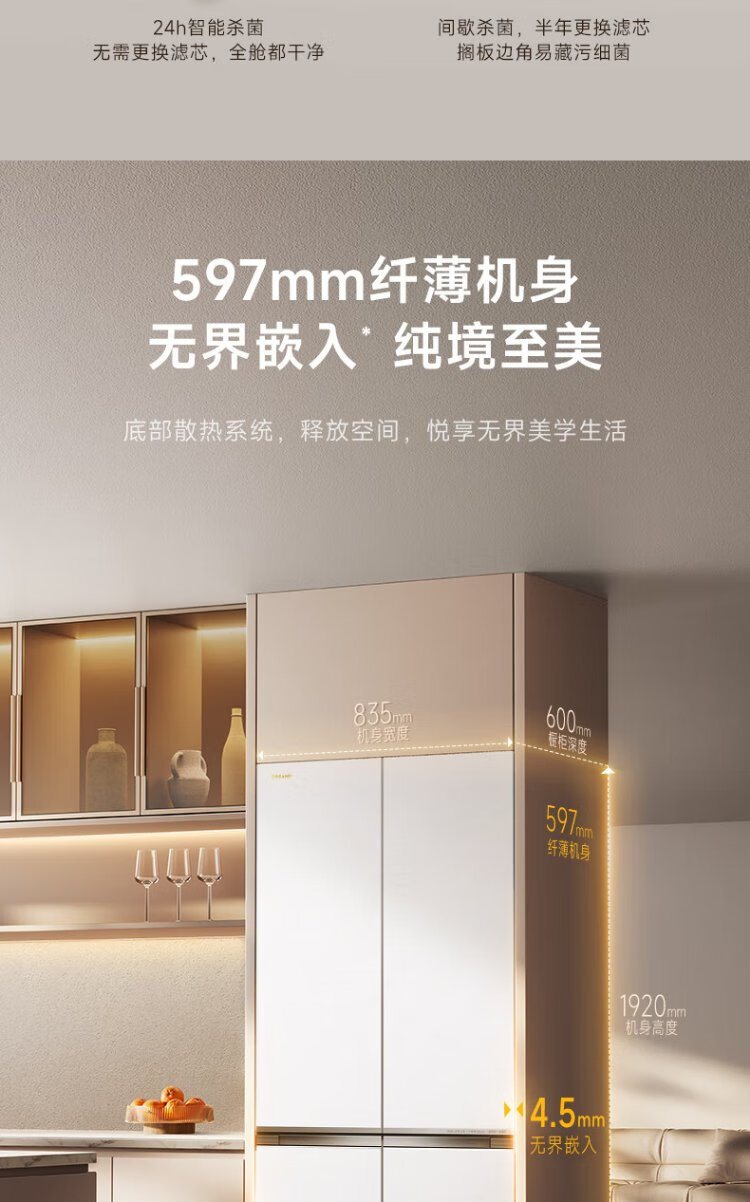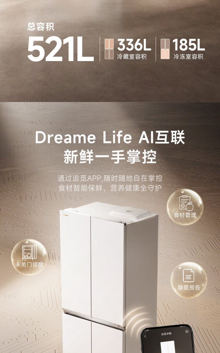 Chuimi Refrigerator Pureland D Series 521L Large Capacity Cross Four Door Multi-Door Double Cycle Dual System Home Refrigerator Ultra-thin Embedded Global Dynamic Sterilization and Deodorization VITA Fresh Lock First-Class Energy Saving + Air Cooling Frost-free + Four-speed Intelligent Temperature Variation