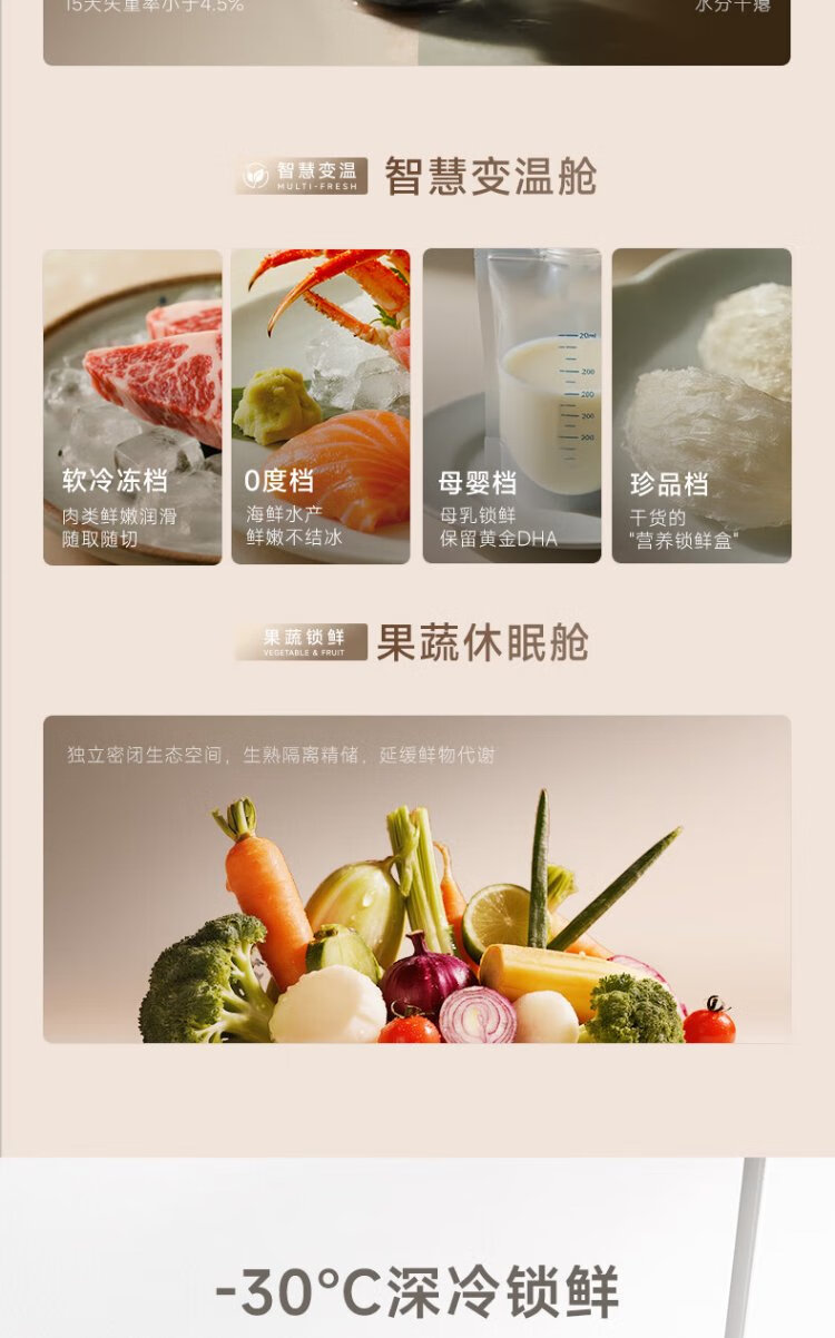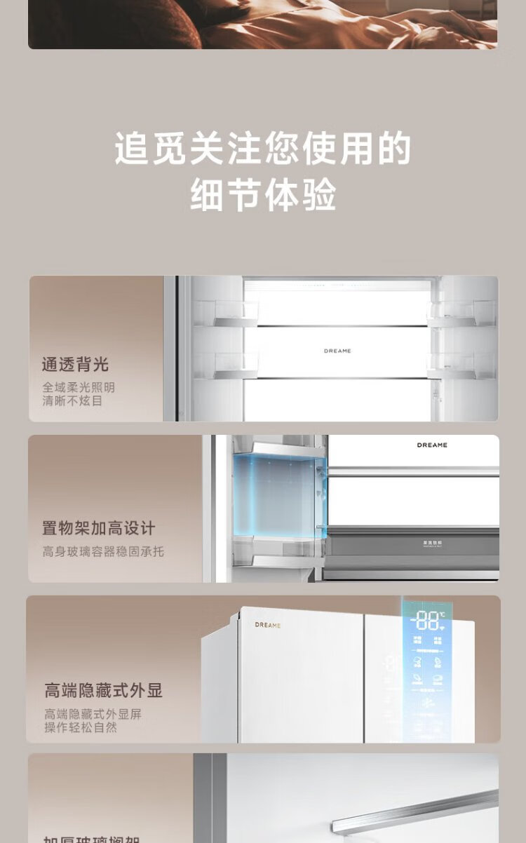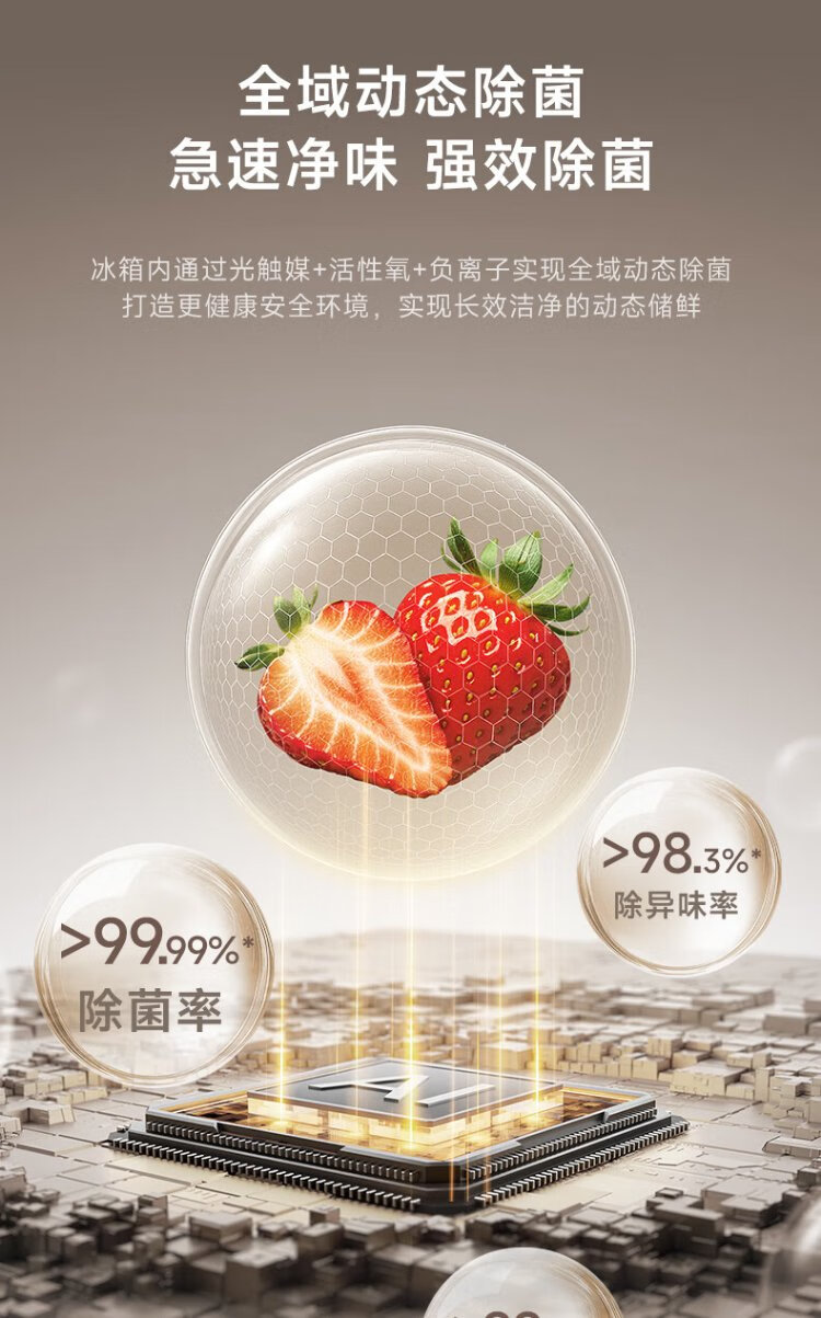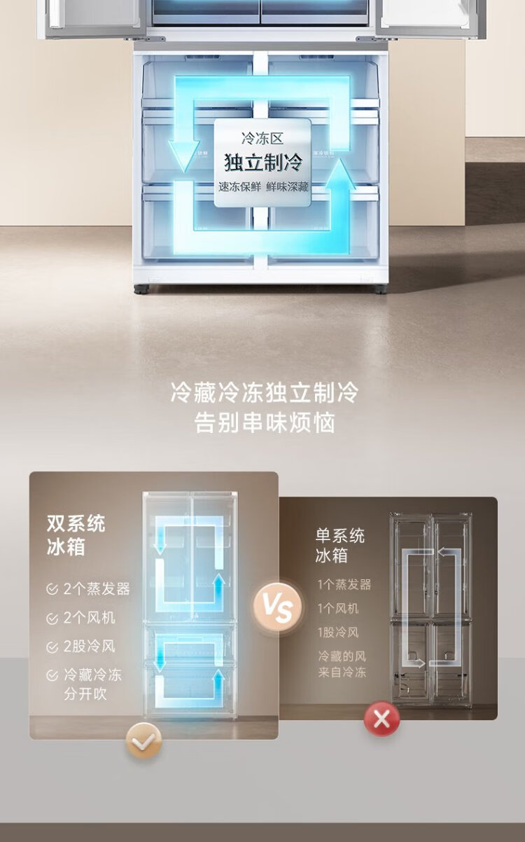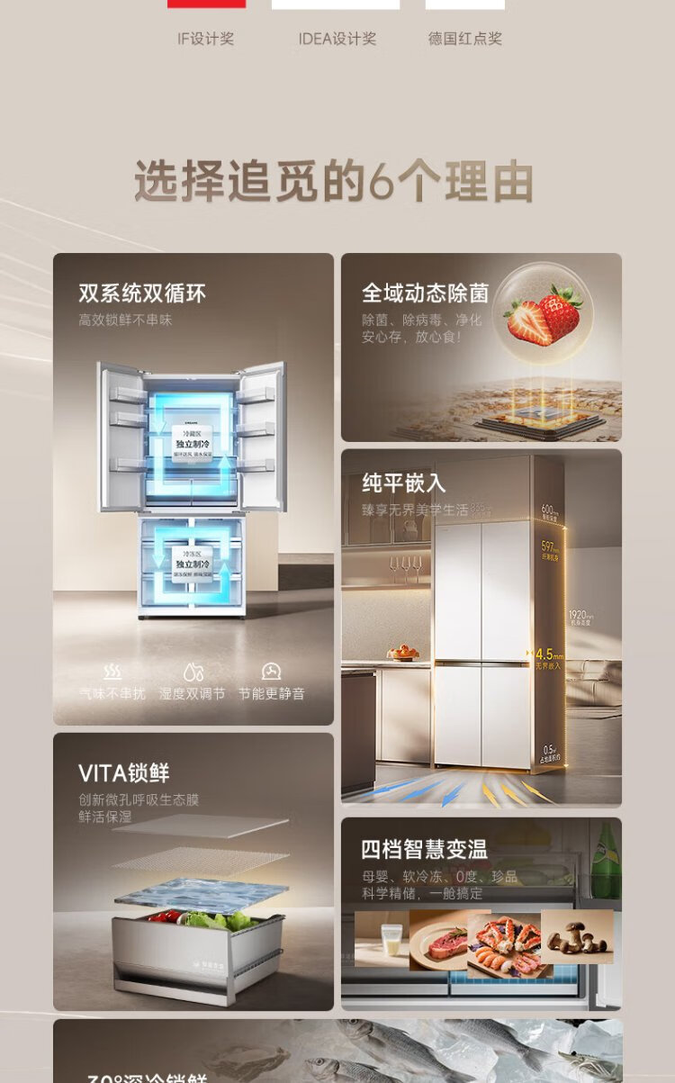 Chuimi Refrigerator Pureland D Series 521L Large Capacity Cross Four Door Multi-Door Double Cycle Dual System Home Refrigerator Ultra-thin Embedded Global Dynamic Sterilization and Deodorization VITA Fresh Lock First-Class Energy Saving + Air Cooling Frost-free + Four-speed Intelligent Temperature Variation