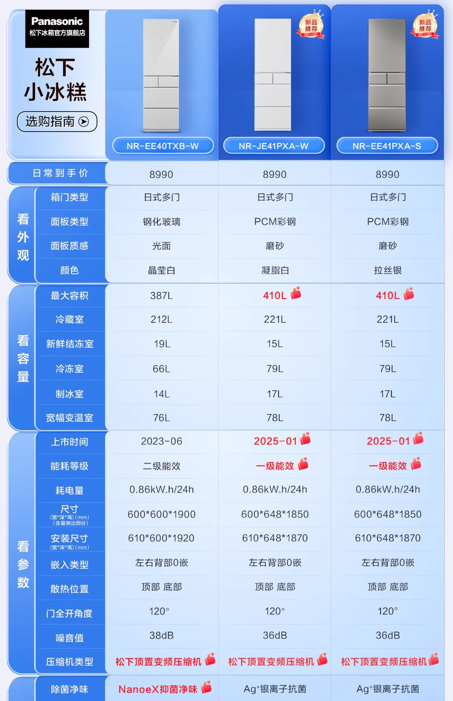 Panasonic Ice Cream 410L multi-door household refrigerator ultra-thin zero-embedded inverter air-cooled frost-free silver ion antibacterial and odor-free automatic ice making NR-EE41PXA-S NR-JE41PXA-W 410L white
