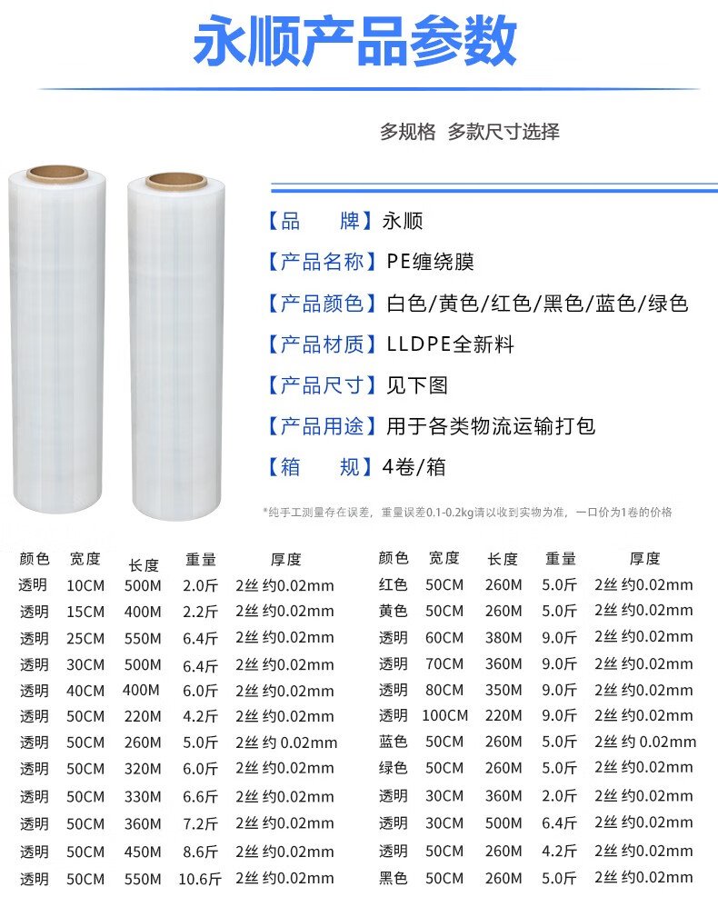 PE stretch film, protective film, various colors and widths, moving packing film, stretch film, packaging film, 50cm wide, large roll, industrial plastic wrap, takeaway packaging, 10cm wide, 500 meters long, 1kg weight