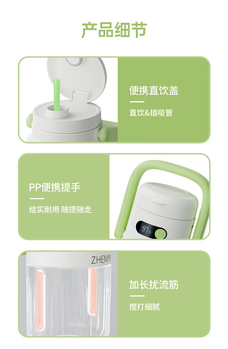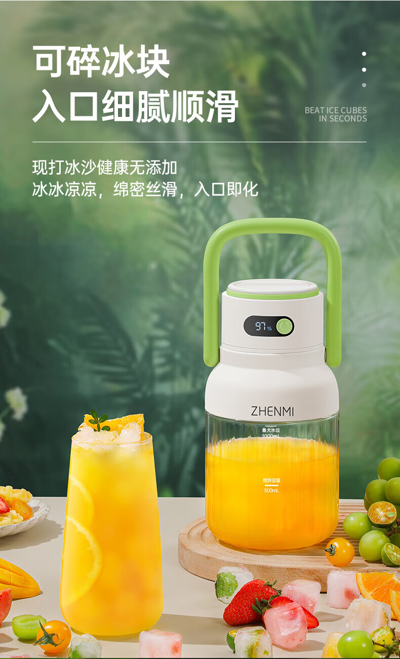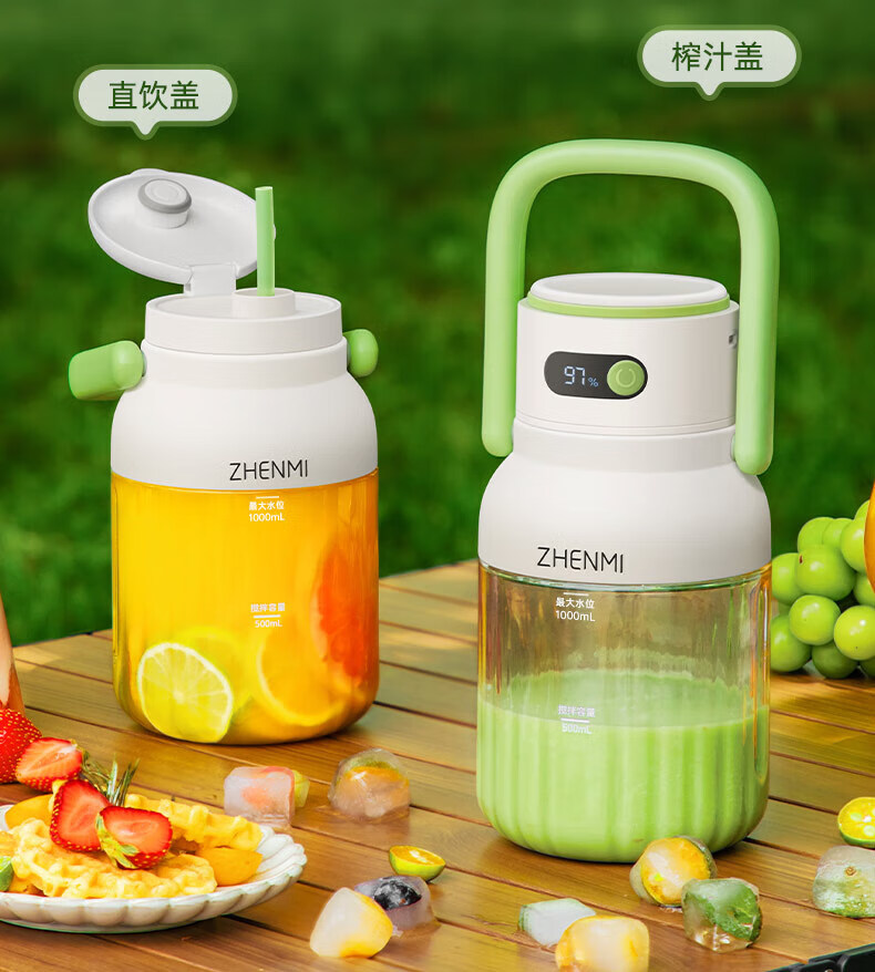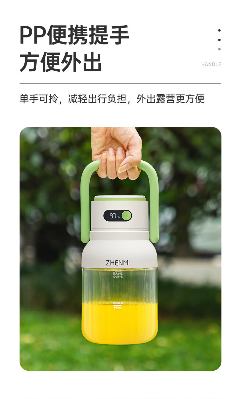 Zhenmi Portable Wireless Charging Juicing Cup Large Capacity 1L Small Household Fruit Ton Bucket One Cup Double Cover Smoothie Machine Milkshake Machine Blending Cup Juicing Cup Juicer Juicer Pink 1L Large Capacity Cannot Heat Water