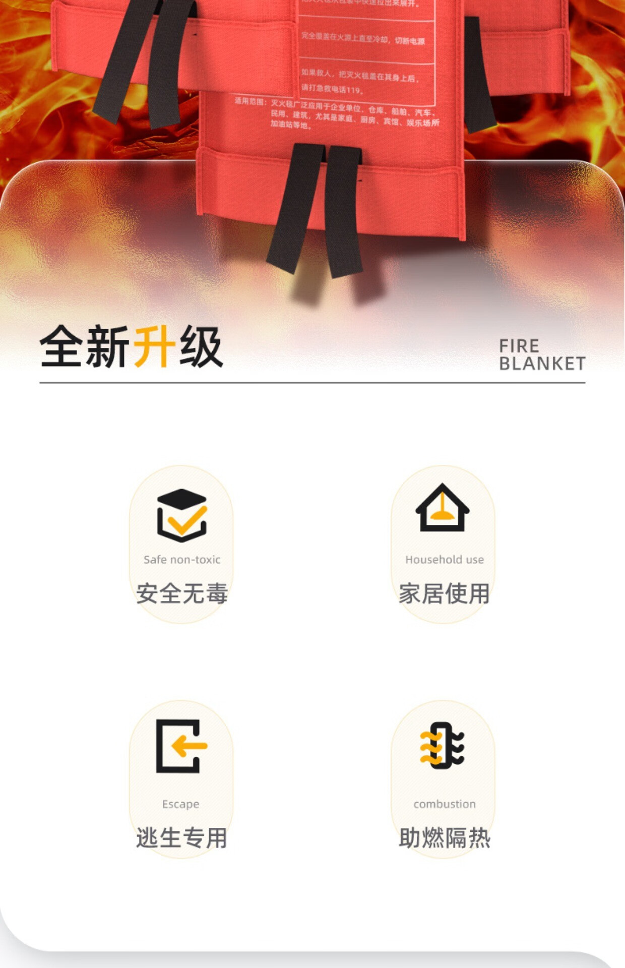Household fire blanket, special national standard for kitchen fire protection, 3C certified gas mask, commercial silicone asbestos fire blanket, 1.5m*1.5m glass fiber fire blanket (high quality thickened)