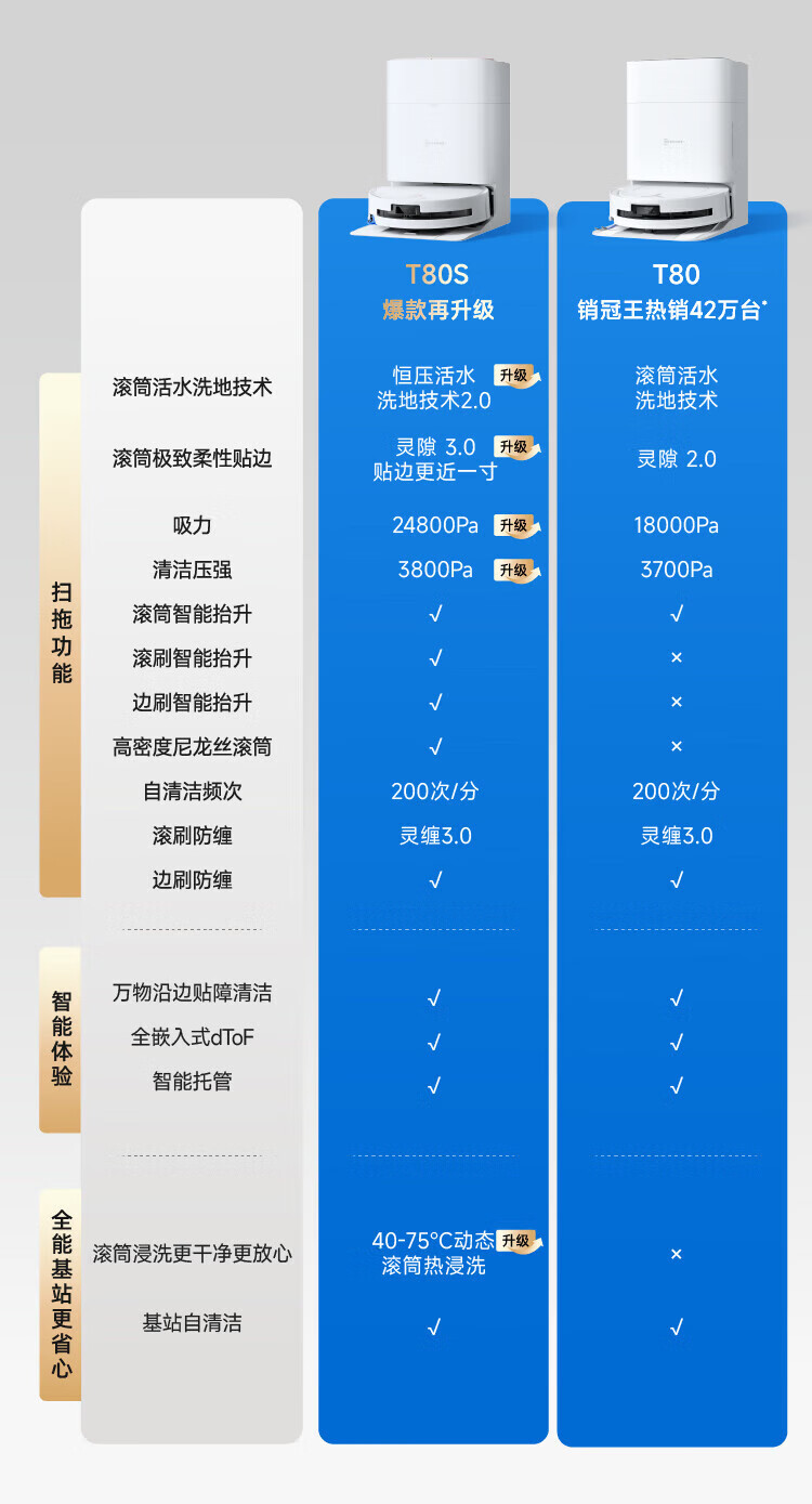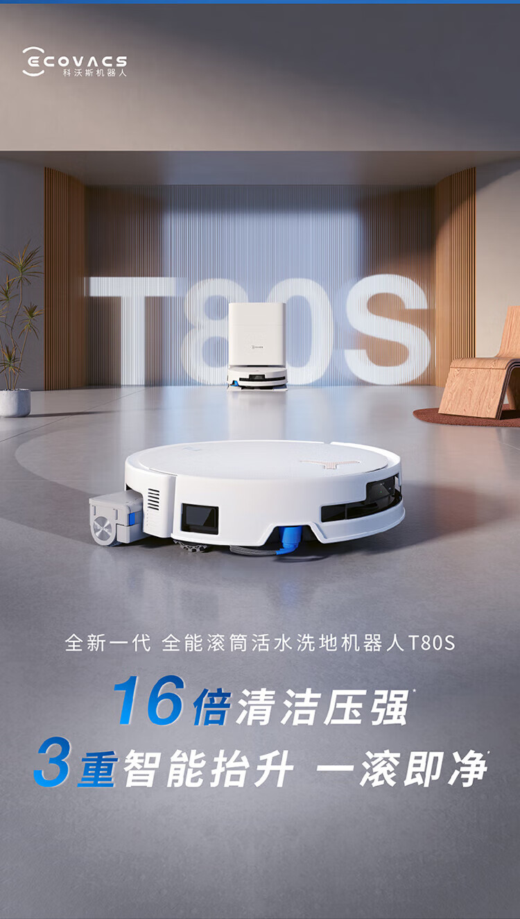 ECOVACS sweeping robot New Year's Day gift New product T80S Constant Pressure Drum Sweeping and Floor Sweeping Automatic Cleaning Smart Home Water Tank Version DEX68 Grab New Year's Day Large Coupon T80S Water Up and Down