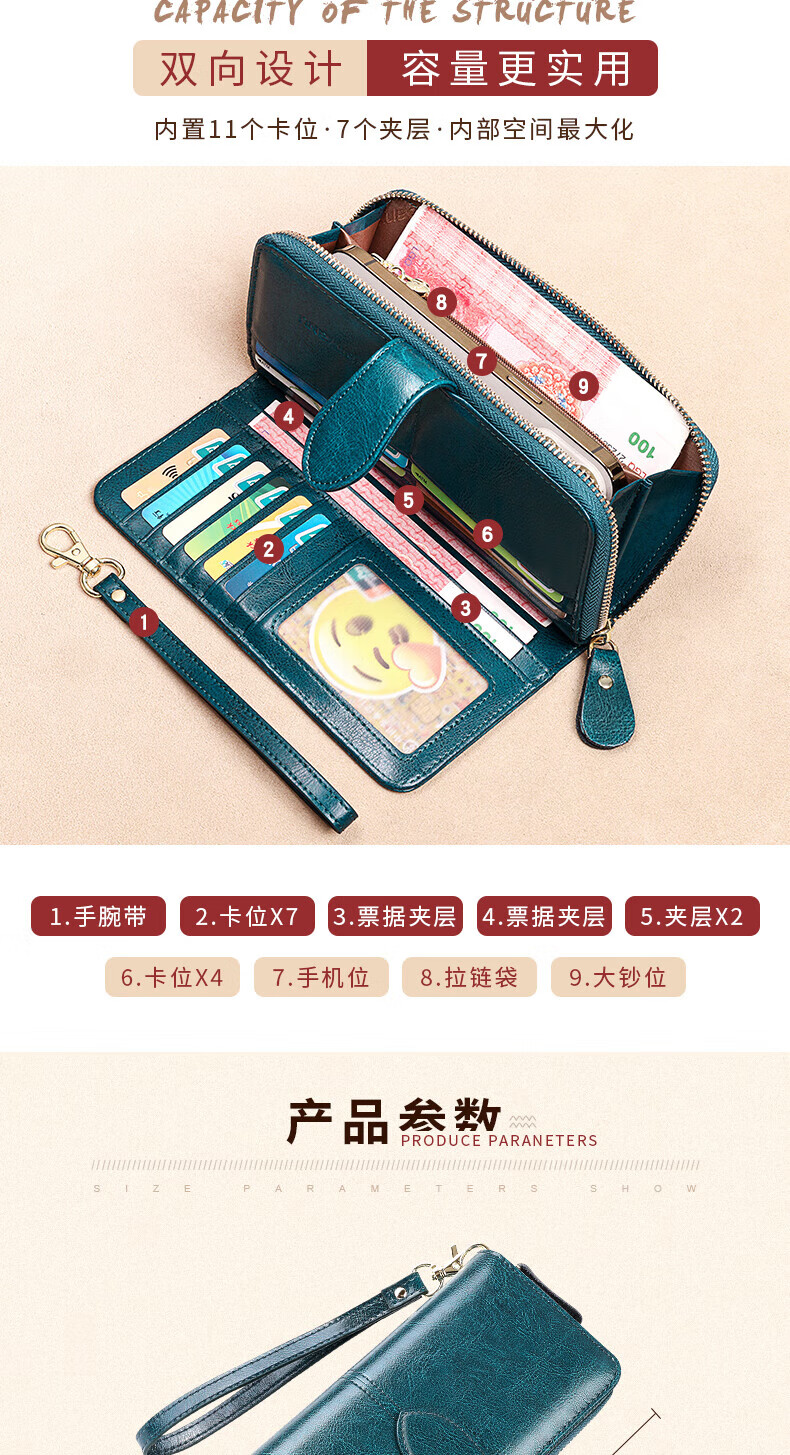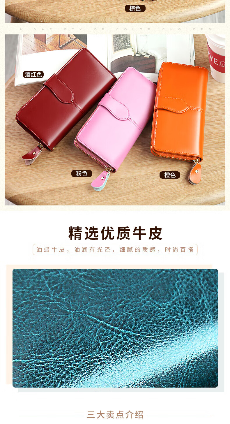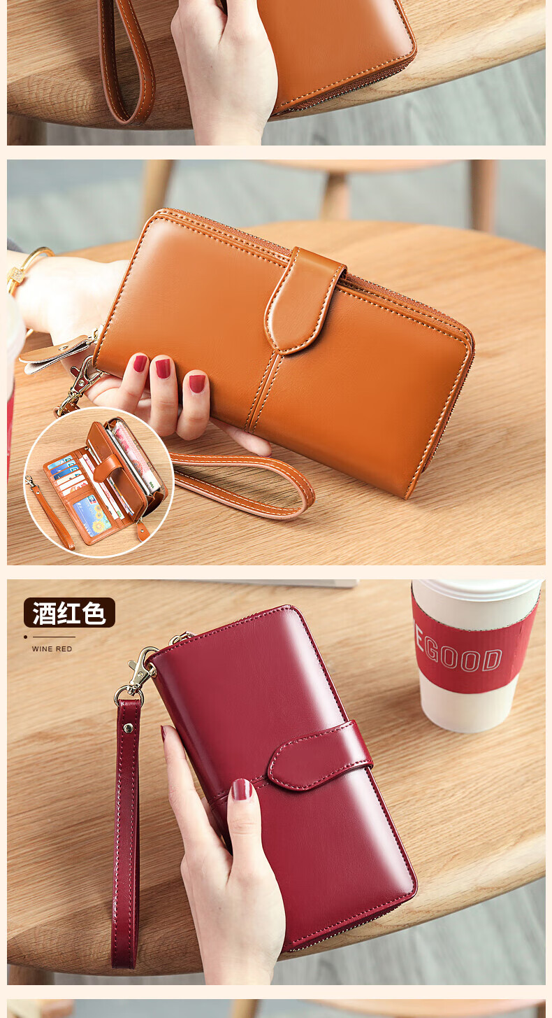 JPHZNK imported 2025 women's wallet women's long genuine leather wallet wallet large capacity clutch orange-anti-theft brush