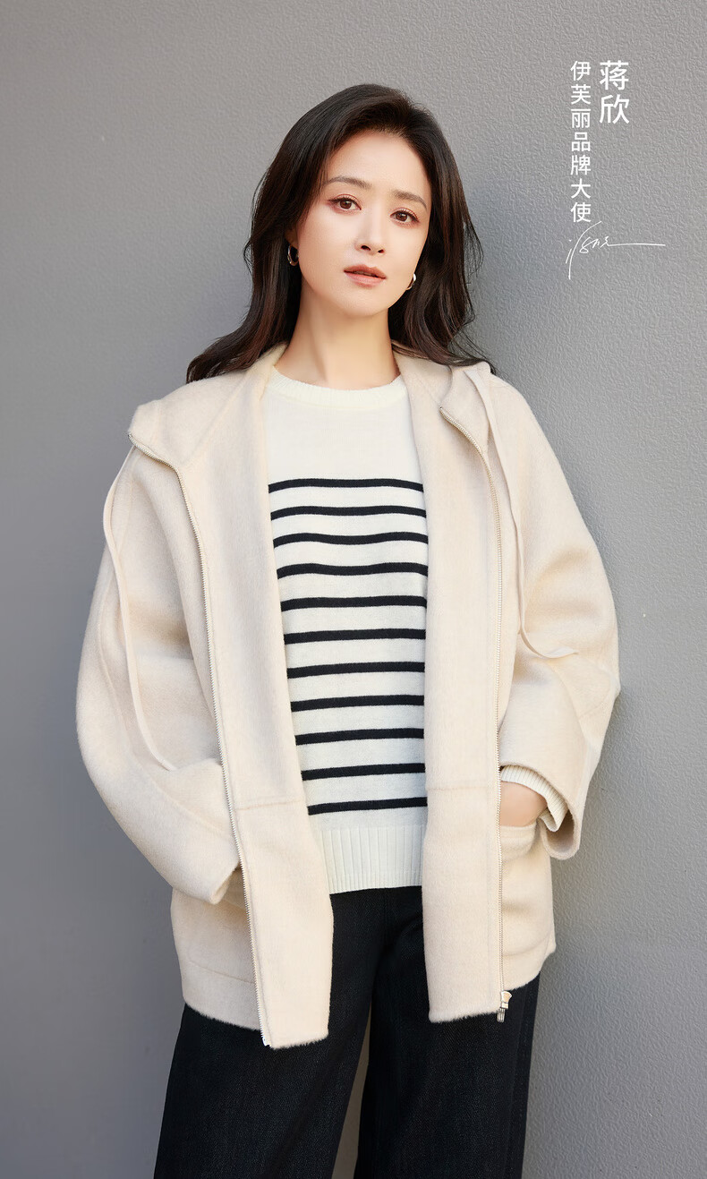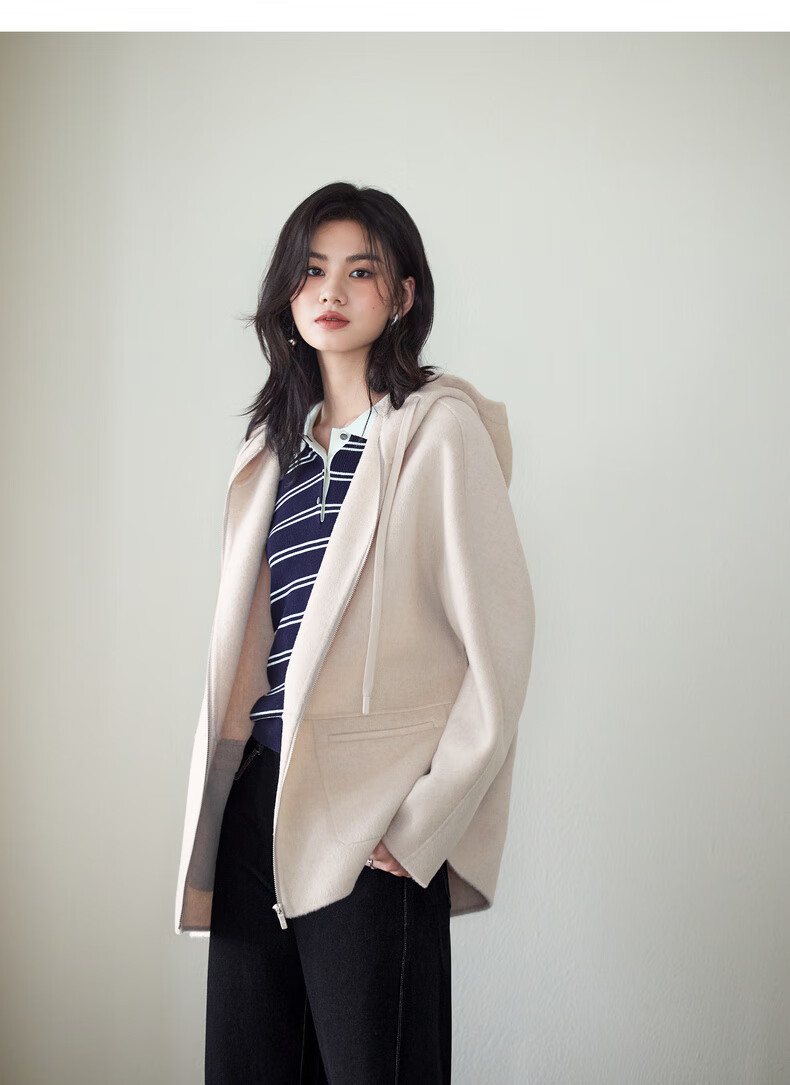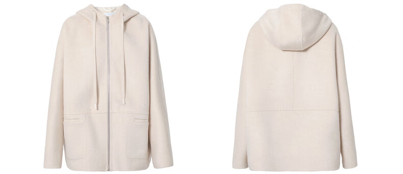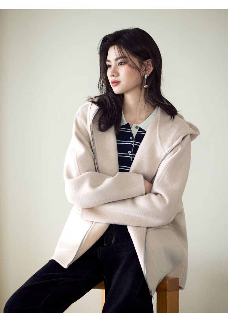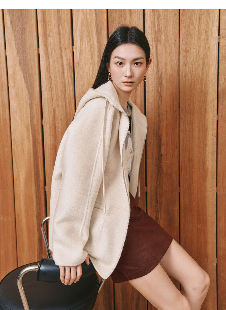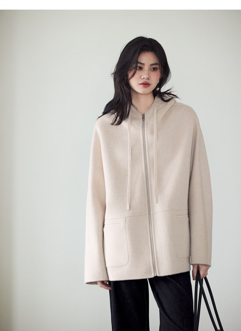 Eveli (eifini) Jiang Xin endorses wool cashmere hooded zipper coat one-hand long woolen coat 2025 winter soft velvet white mid-length sheep wool cashmere S 90-115 catties