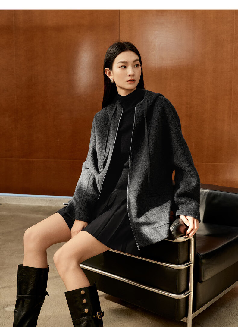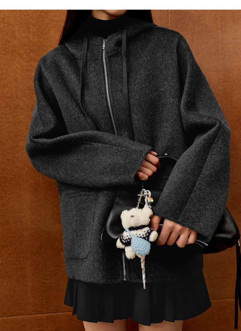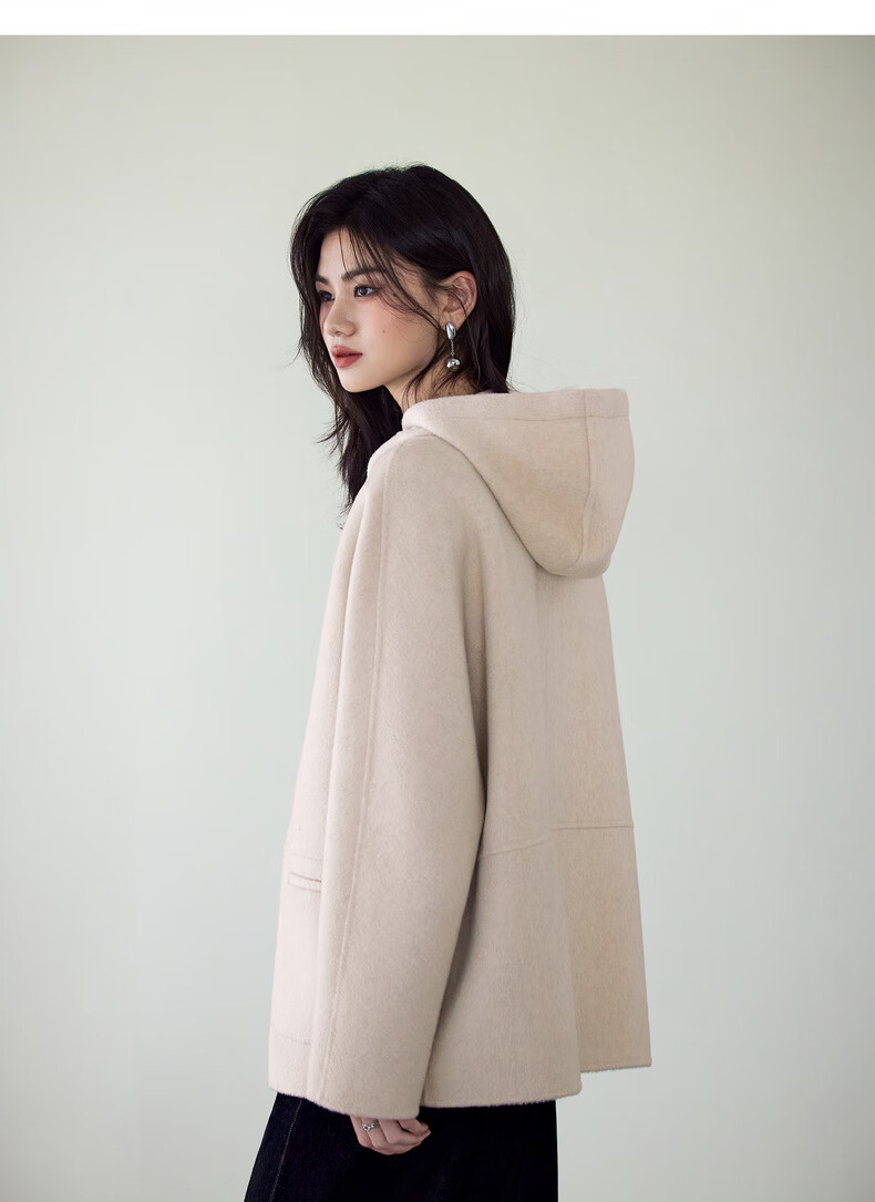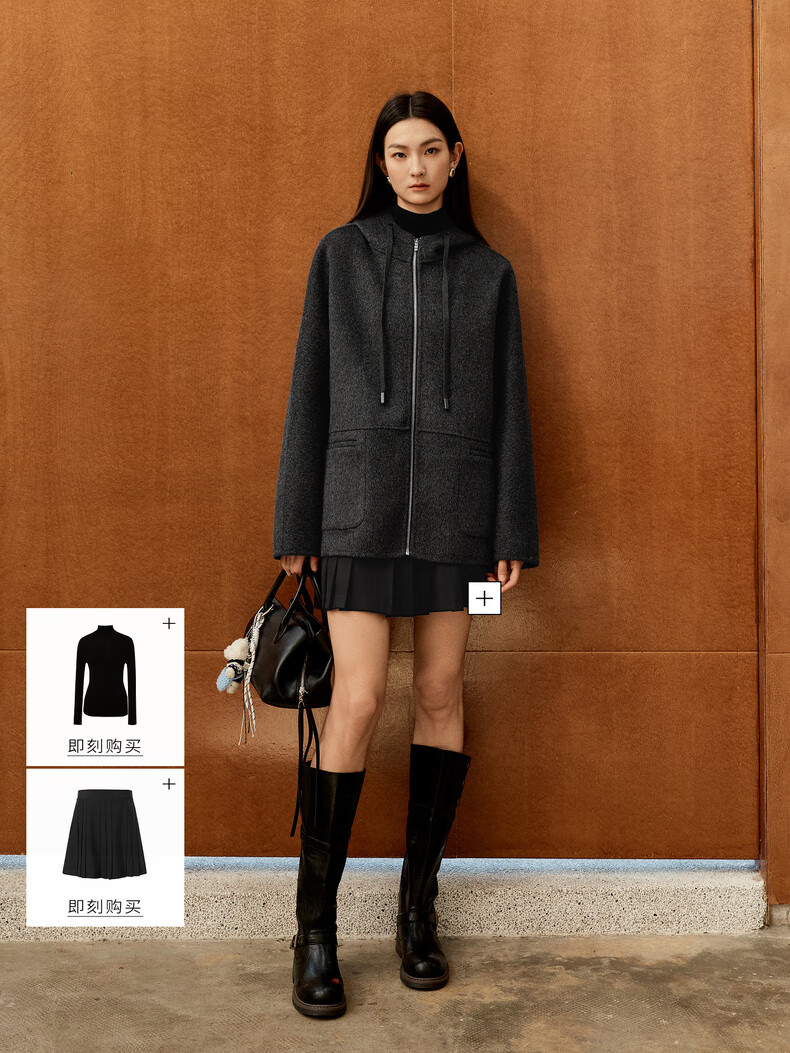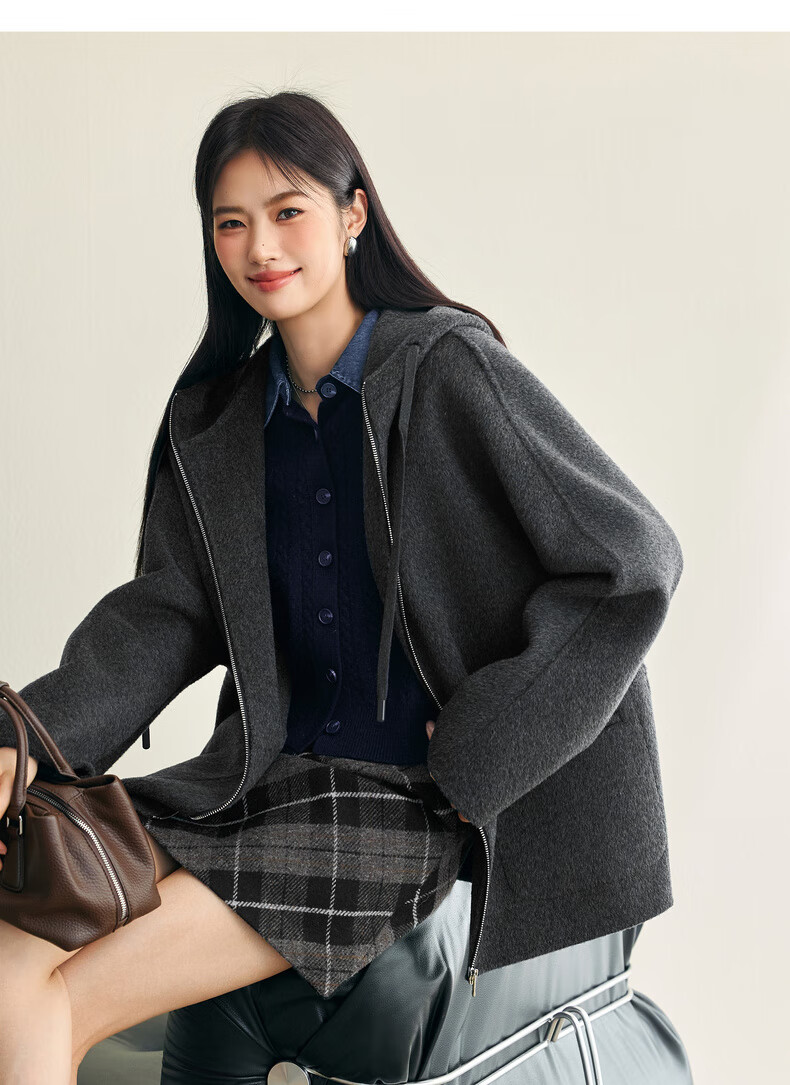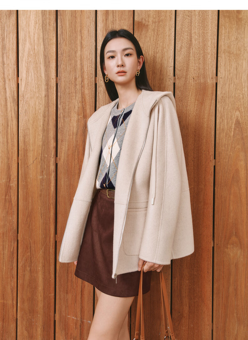 Eveli (eifini) Jiang Xin endorses wool cashmere hooded zipper coat one-hand long woolen coat 2025 winter soft velvet white mid-length sheep wool cashmere S 90-115 catties