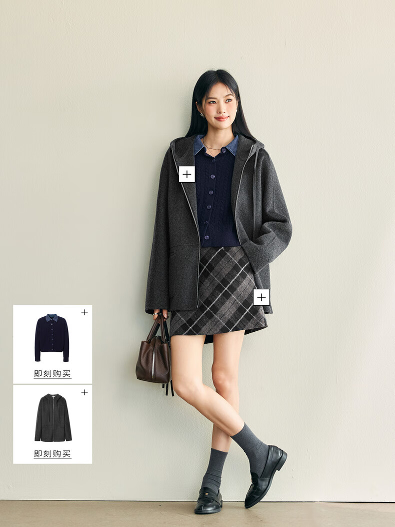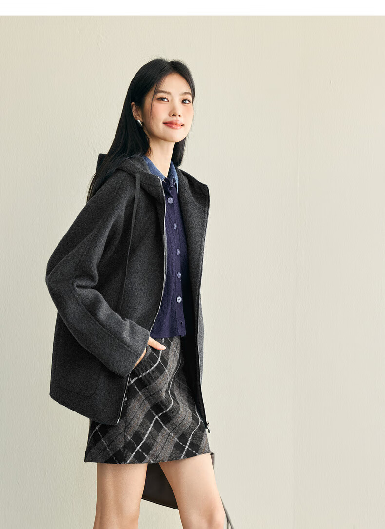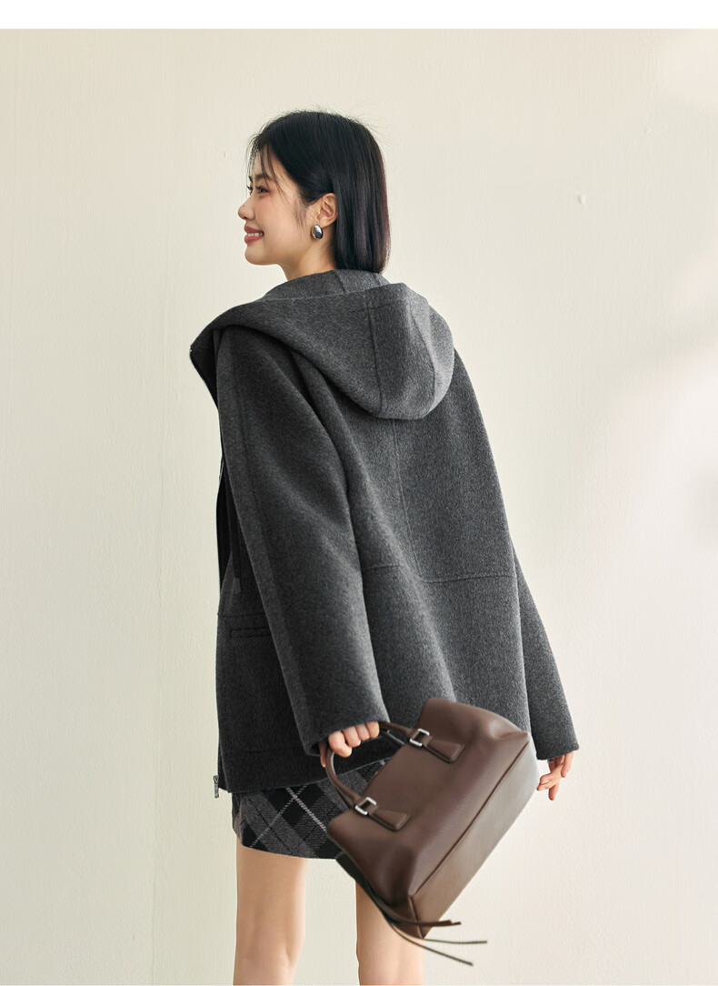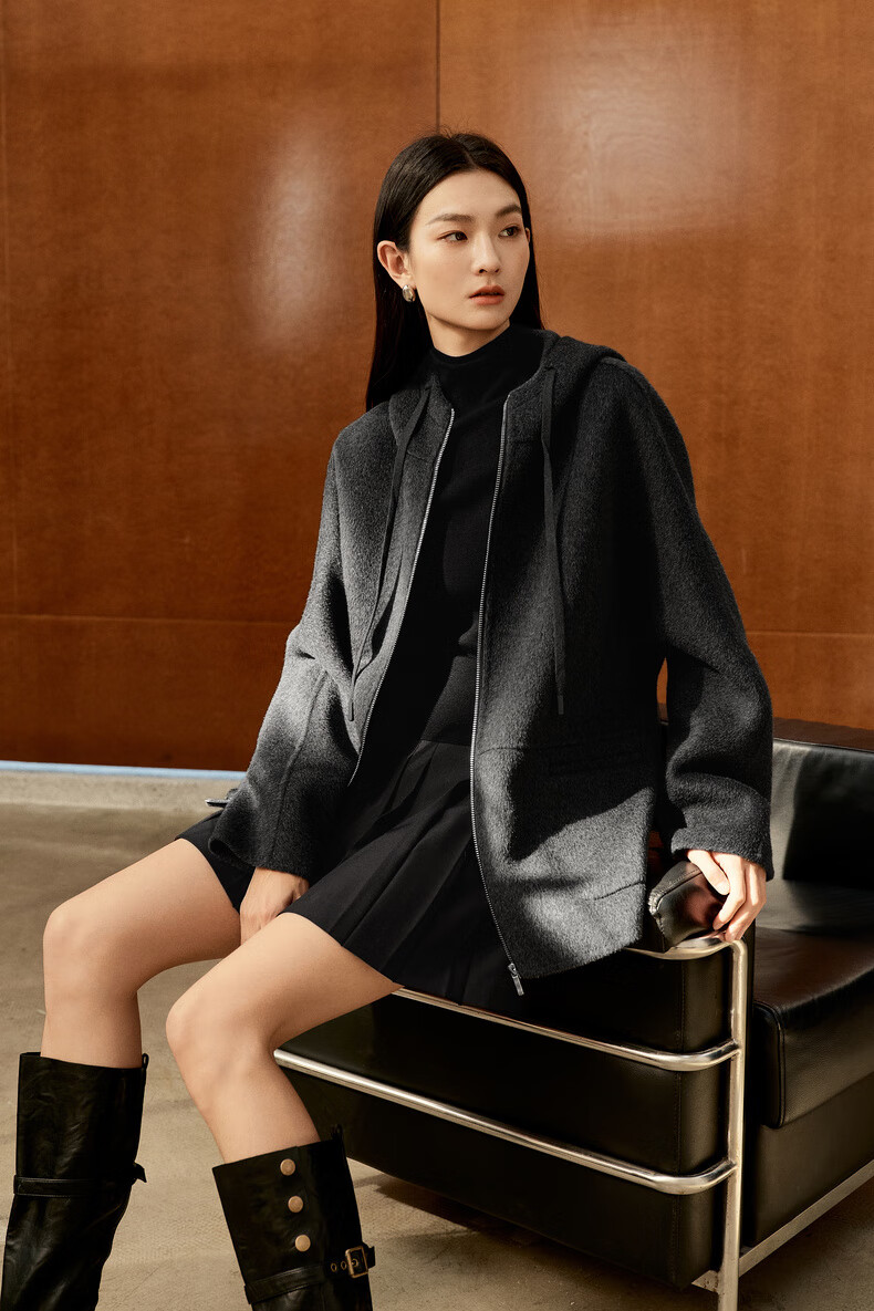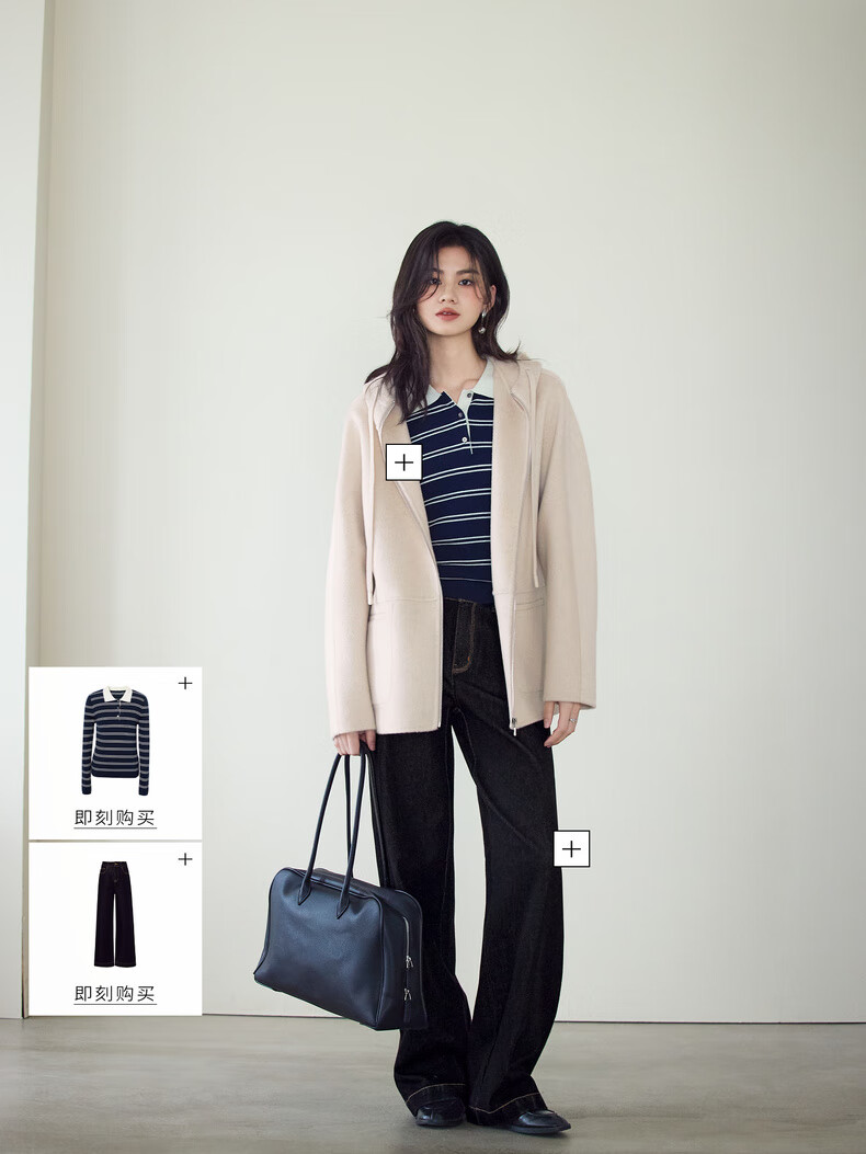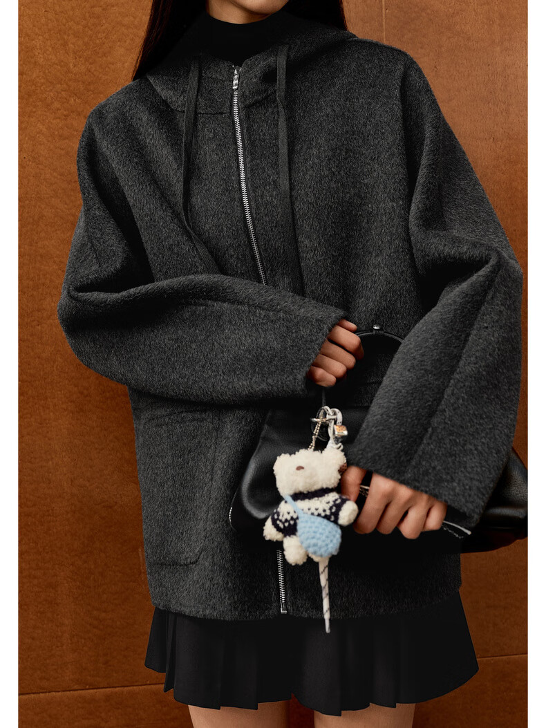 Eveli (eifini) Jiang Xin endorses wool cashmere hooded zipper coat one-hand long woolen coat 2025 winter soft velvet white mid-length sheep wool cashmere S 90-115 catties