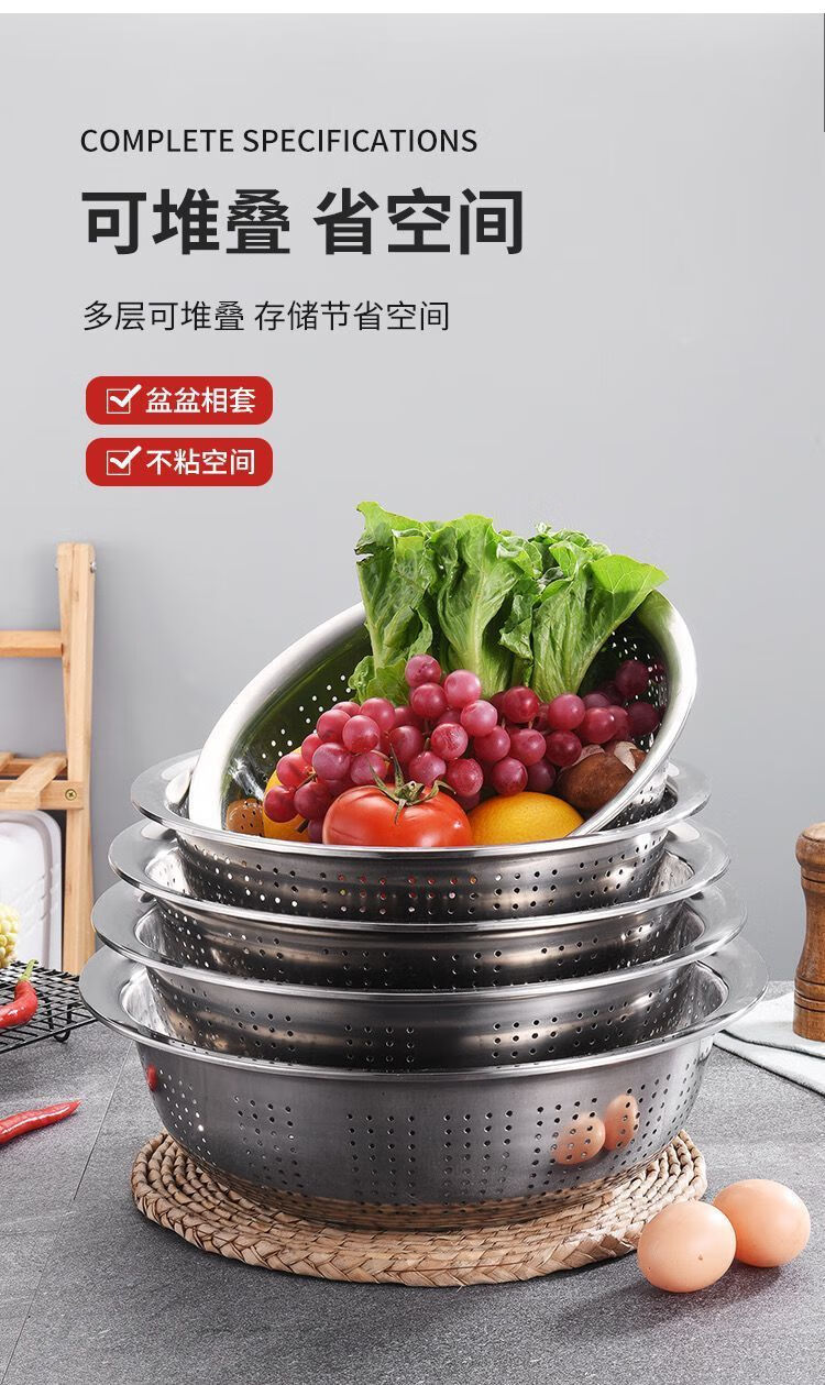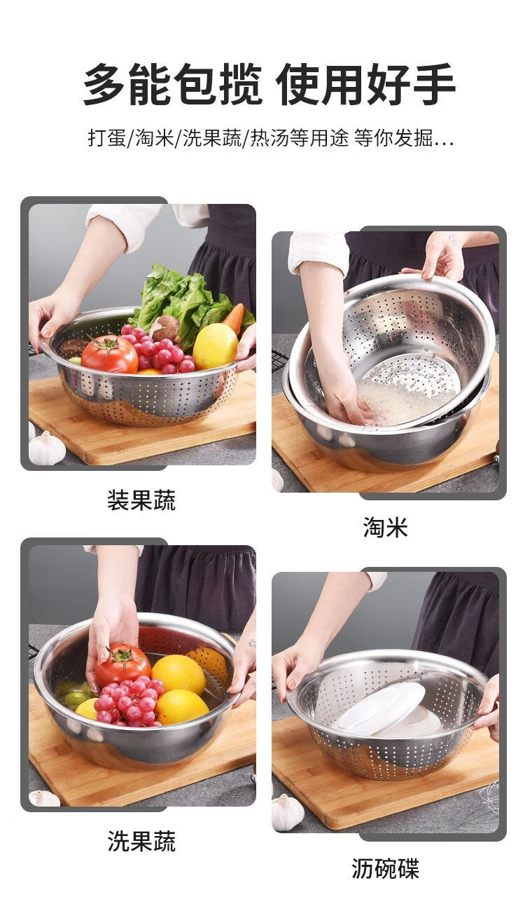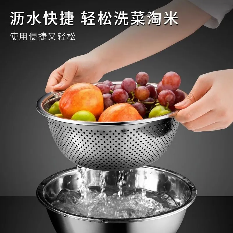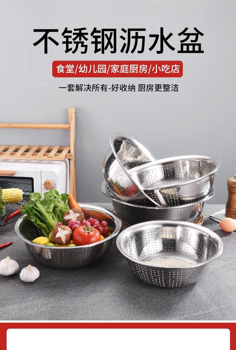Stainless steel drain basket, multi-functional rice washing basin, rice washing sieve, rice washing drain basket, household kitchen sink, dense hole drain basket 32cm