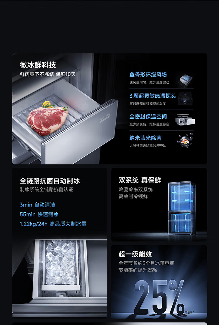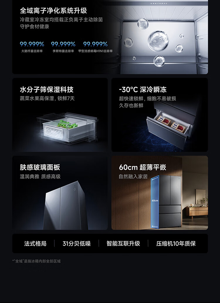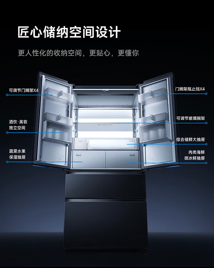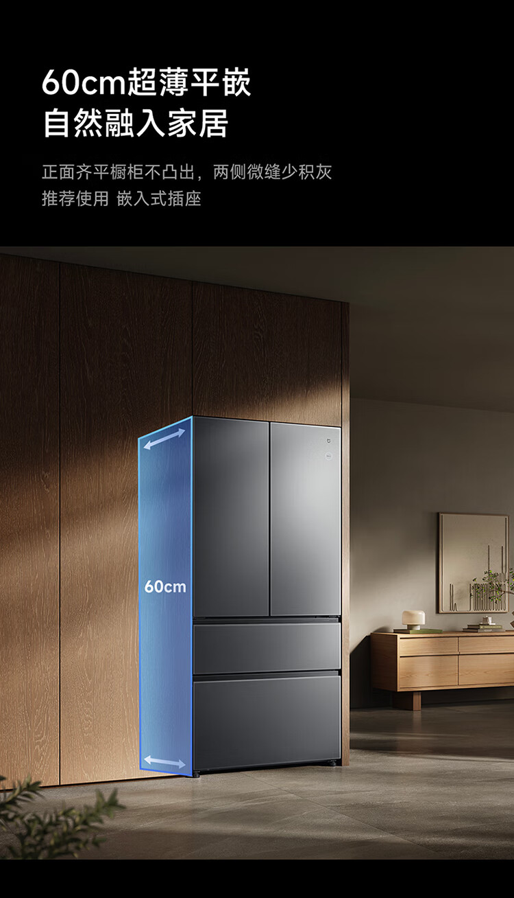 Xiaomi (MI) Mijia refrigerator annual new product micro-chilled technology dual system 560L French multi-door 60cm ultra-thin embedded household large capacity first-class energy efficiency state subsidy 560L ice crystal white micro-chilled/automatic ice making/dual system