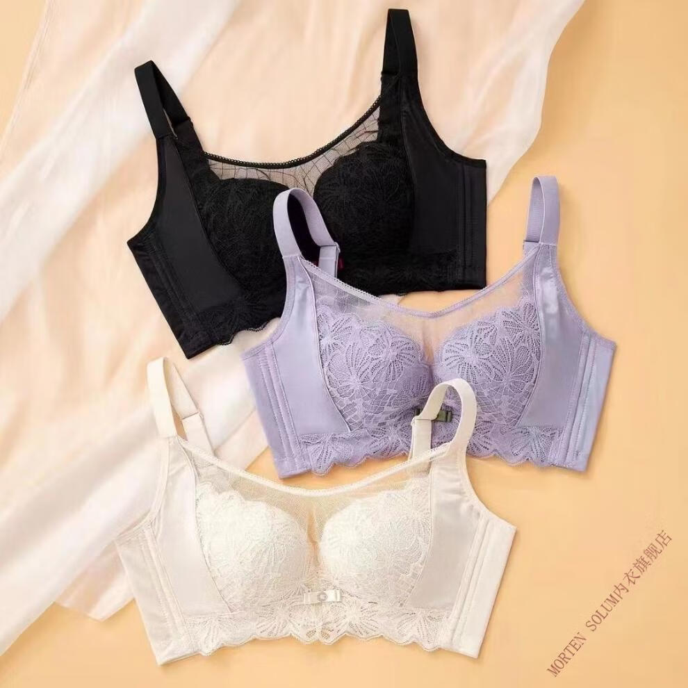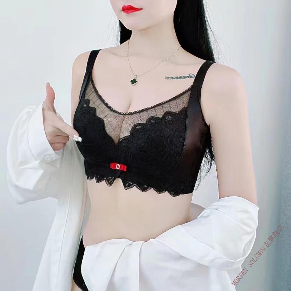 MORTEN SOLUM Big Brand Bandeau Lace Beautiful Back Bra Set 2025 Spring and Summer New Style Medium Thick Cup Fairy Style Black + Panties 75A 34