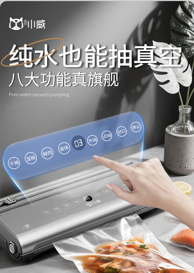 Willin Xiaowei Xiaowei double pump vacuum sealing machine household commercial fully automatic food preservation packaging machine sealing and plastic sealing machine upgrade single pump, come with three-year warranty, with cutter +