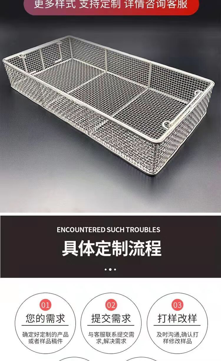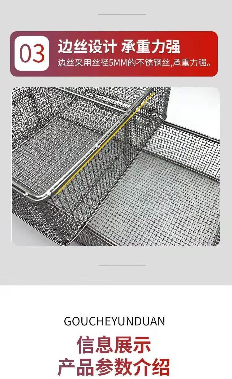 Jianyimao 304 stainless steel ultrasonic efficient disinfection kitchen rectangular cleaning storage basket frying basket mesh 4 mm 30cm*30cm*15cm length, width and height