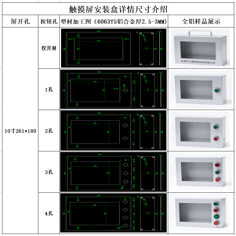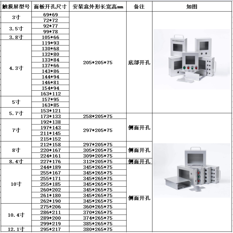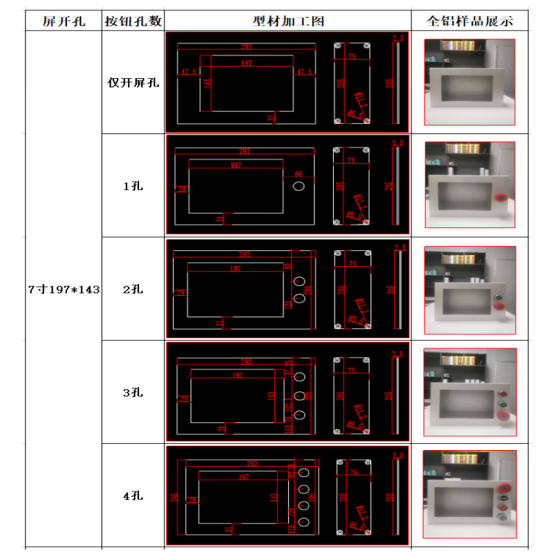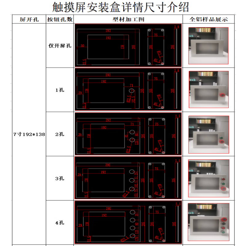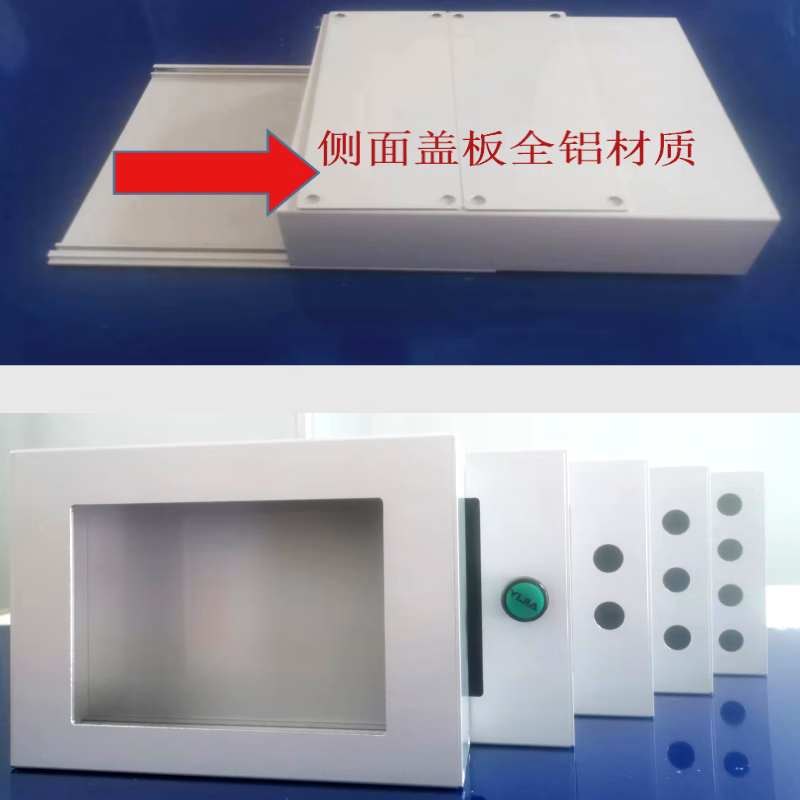 Touch screen installation box Touch screen Weilun human-machine interface box control box bracket PLC text electric control box 4 switch holes without button switch 7 inches 192*138 x all-aluminum side cover