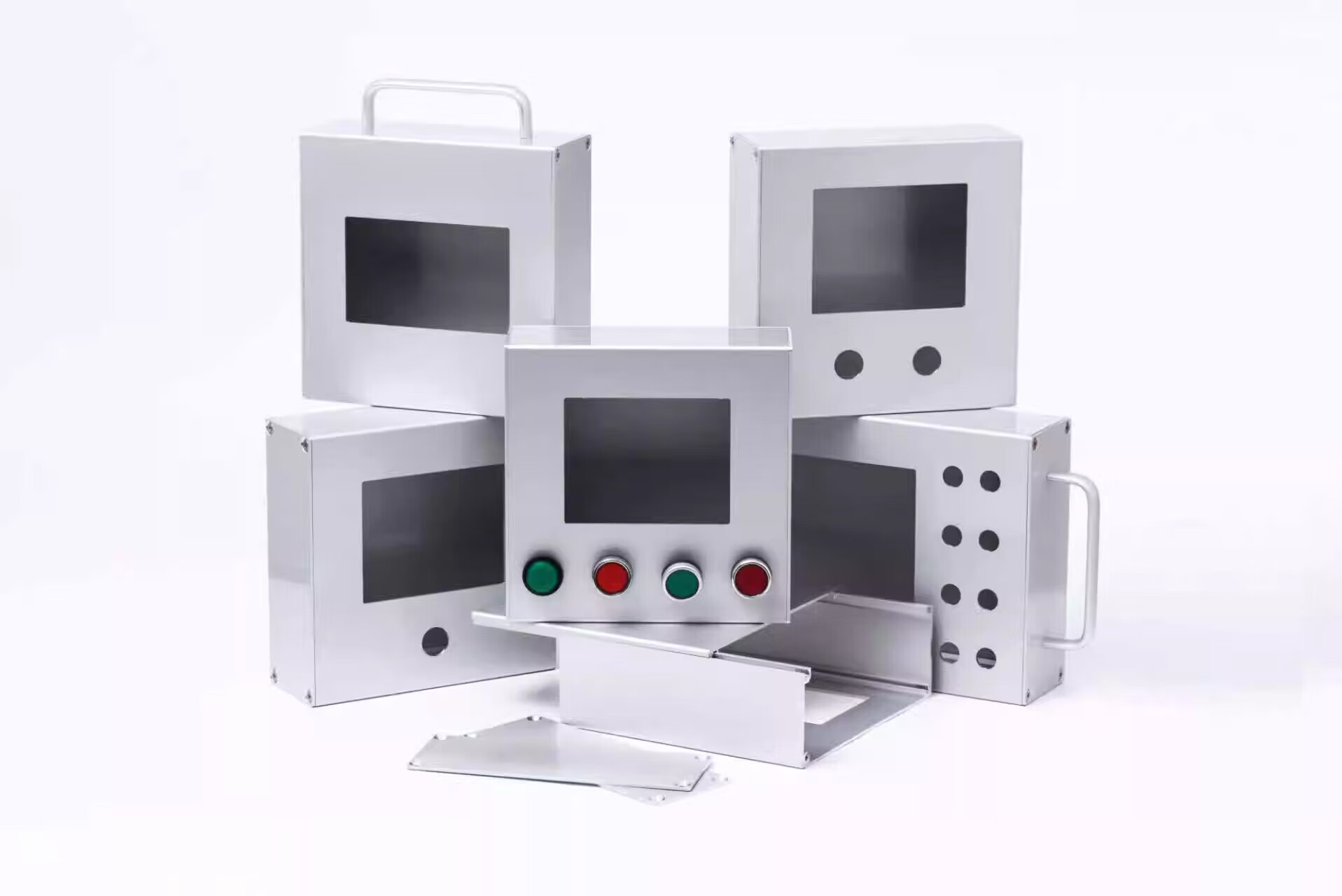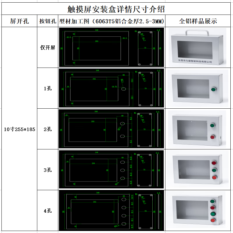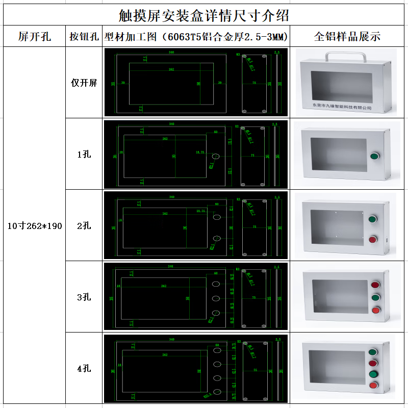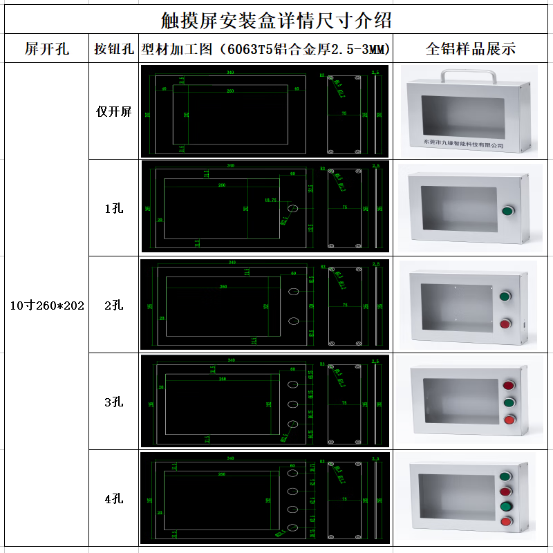 Touch screen installation box Touch screen Weilun human-machine interface box control box bracket PLC text electric control box 4 switch holes without button switch 7 inches 192*138 x all-aluminum side cover