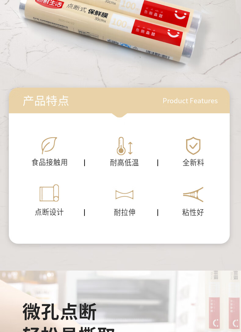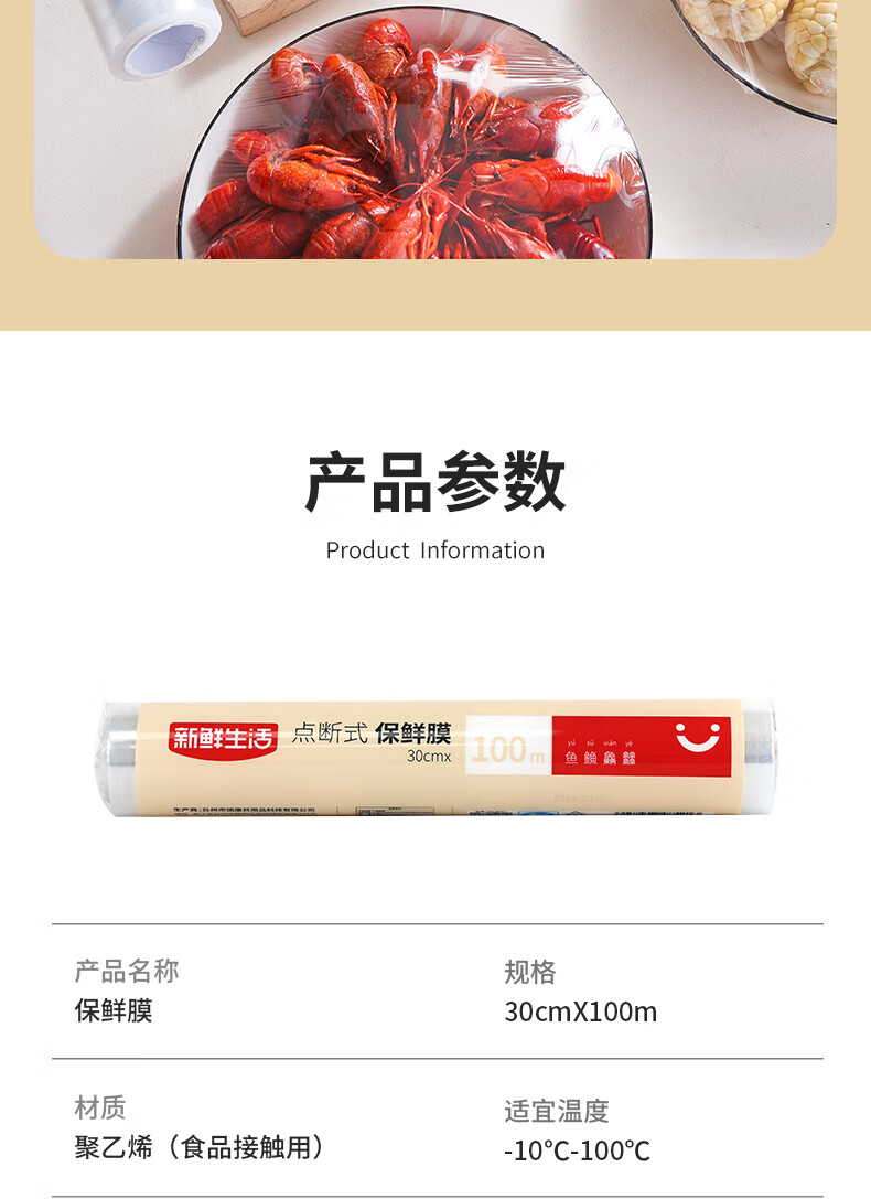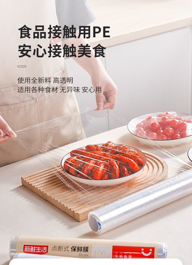 Fresh life point-breaking cling film food grade household refrigerator microwave oven high temperature resistant breakfast pot for primary school students economical size 100m*25cm 1 roll
