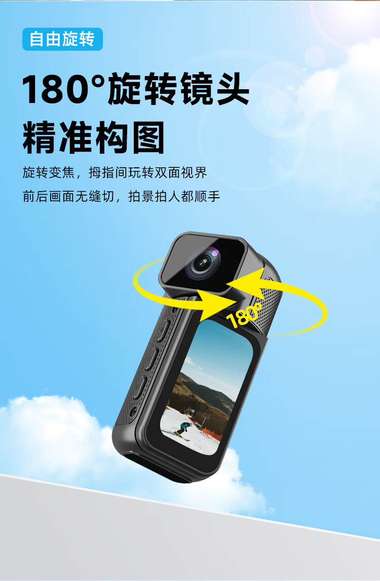 FETANA Thumb Action Camera HD Anti-shake Pocket Digital Camera Driving Recorder Cycling Vlog Travel Handheld Helmet Chest Magnetic Body Camera First View Black MZ2 128G Memory + Charging Box + Magnetic Halter