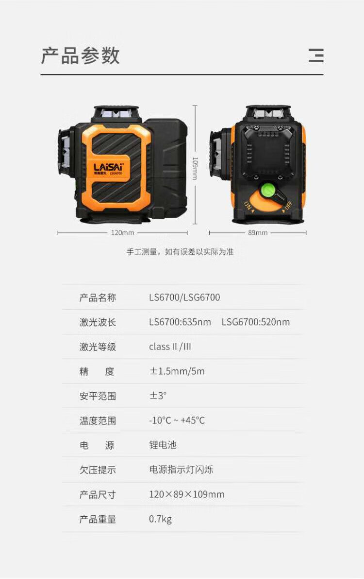 Laisai laser level new 12-line LSG6700 LS6700 infrared laser measuring instrument level high-precision bright light green light 12-line single power/30 mW