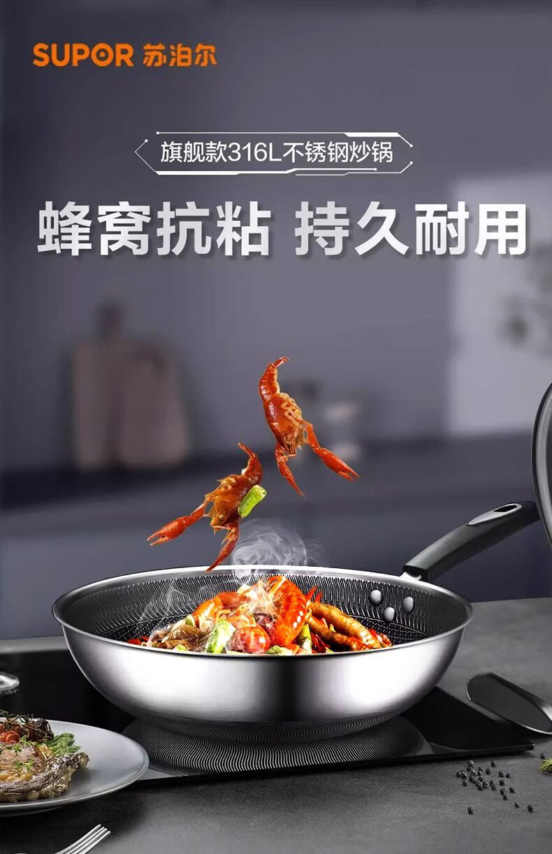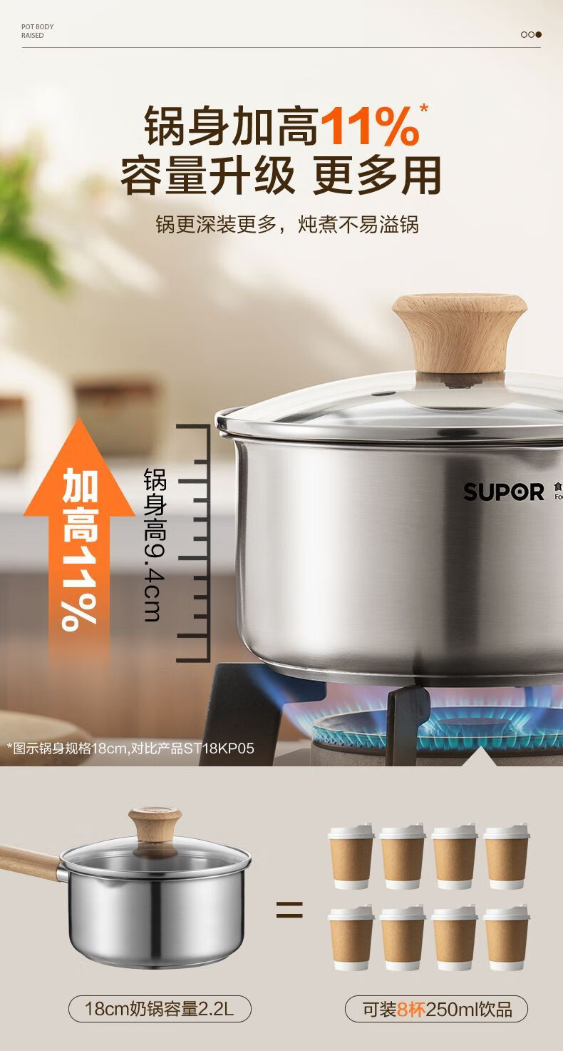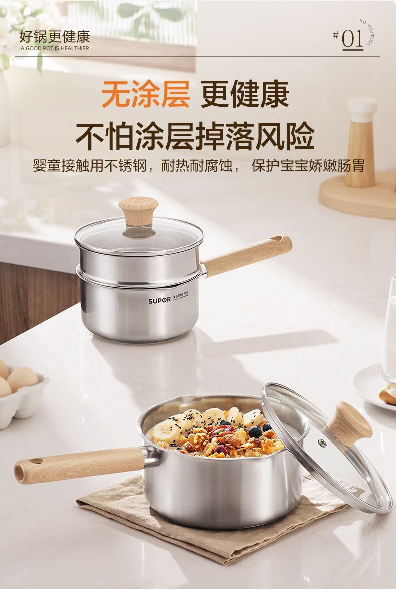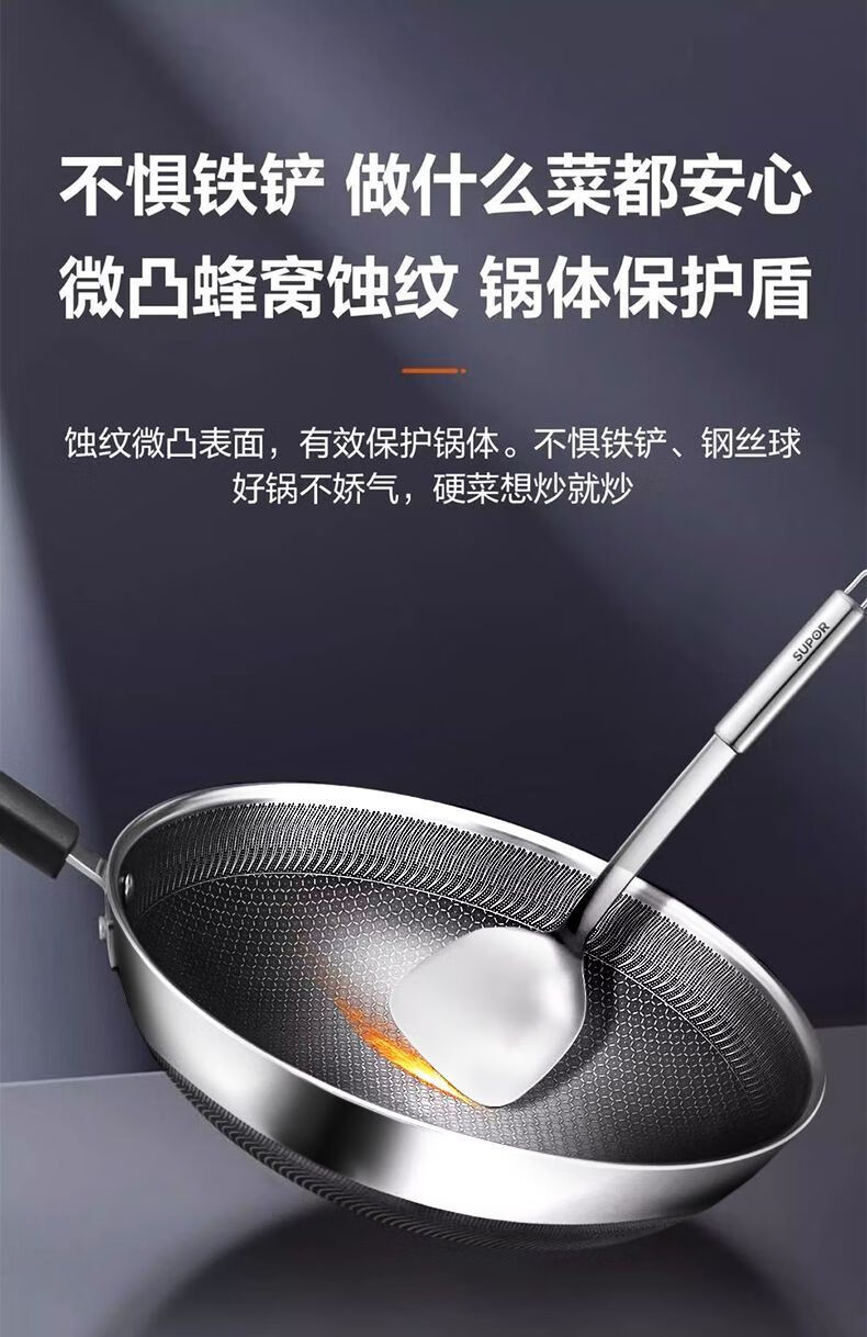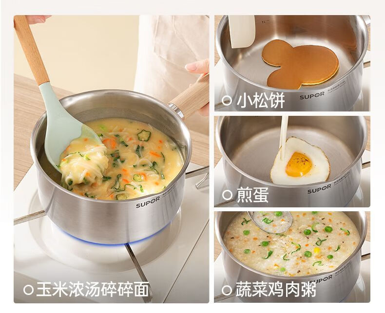 SUPOR non-stick wok smoke-free kitchen full pot set pan soup pot frying pan gas induction cooker (land) stainless steel seven-piece set stir-fry + milk + fry + knife + spatula + plate + rice