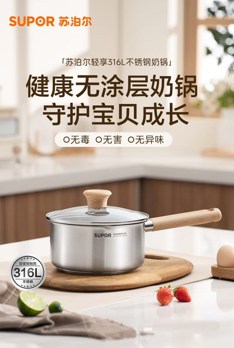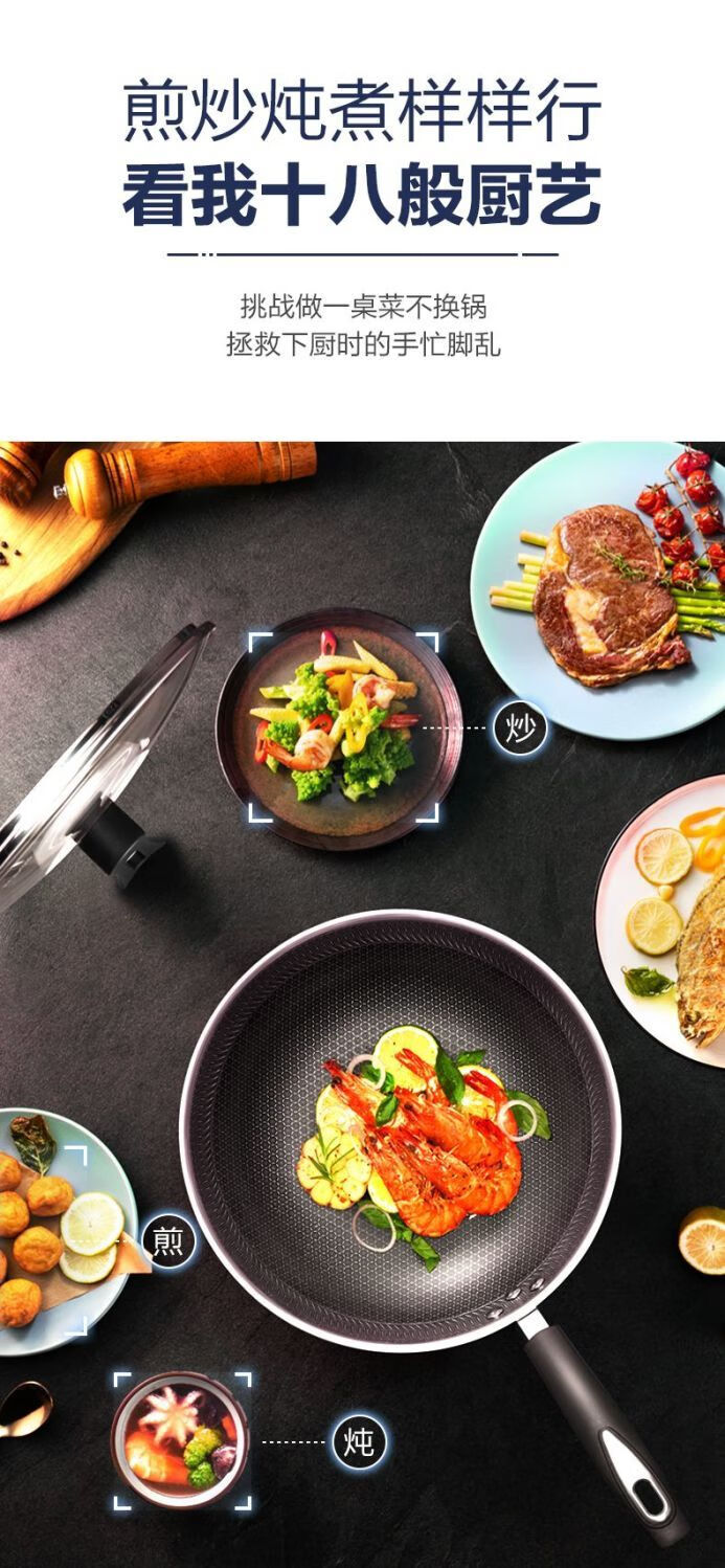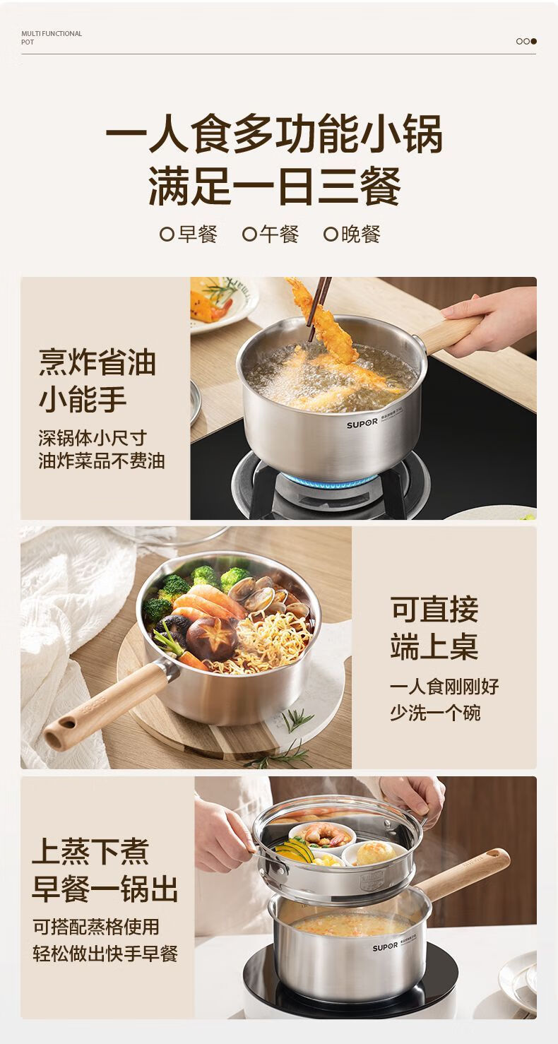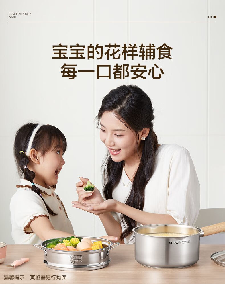 SUPOR non-stick wok smoke-free kitchen full pot set pan soup pot frying pan gas induction cooker (land) stainless steel seven-piece set stir-fry + milk + fry + knife + spatula + plate + rice