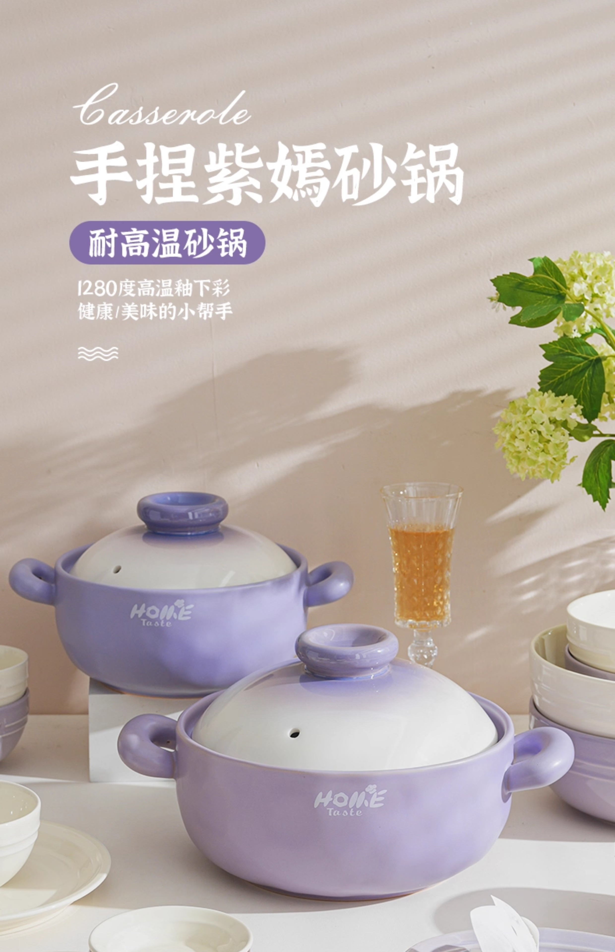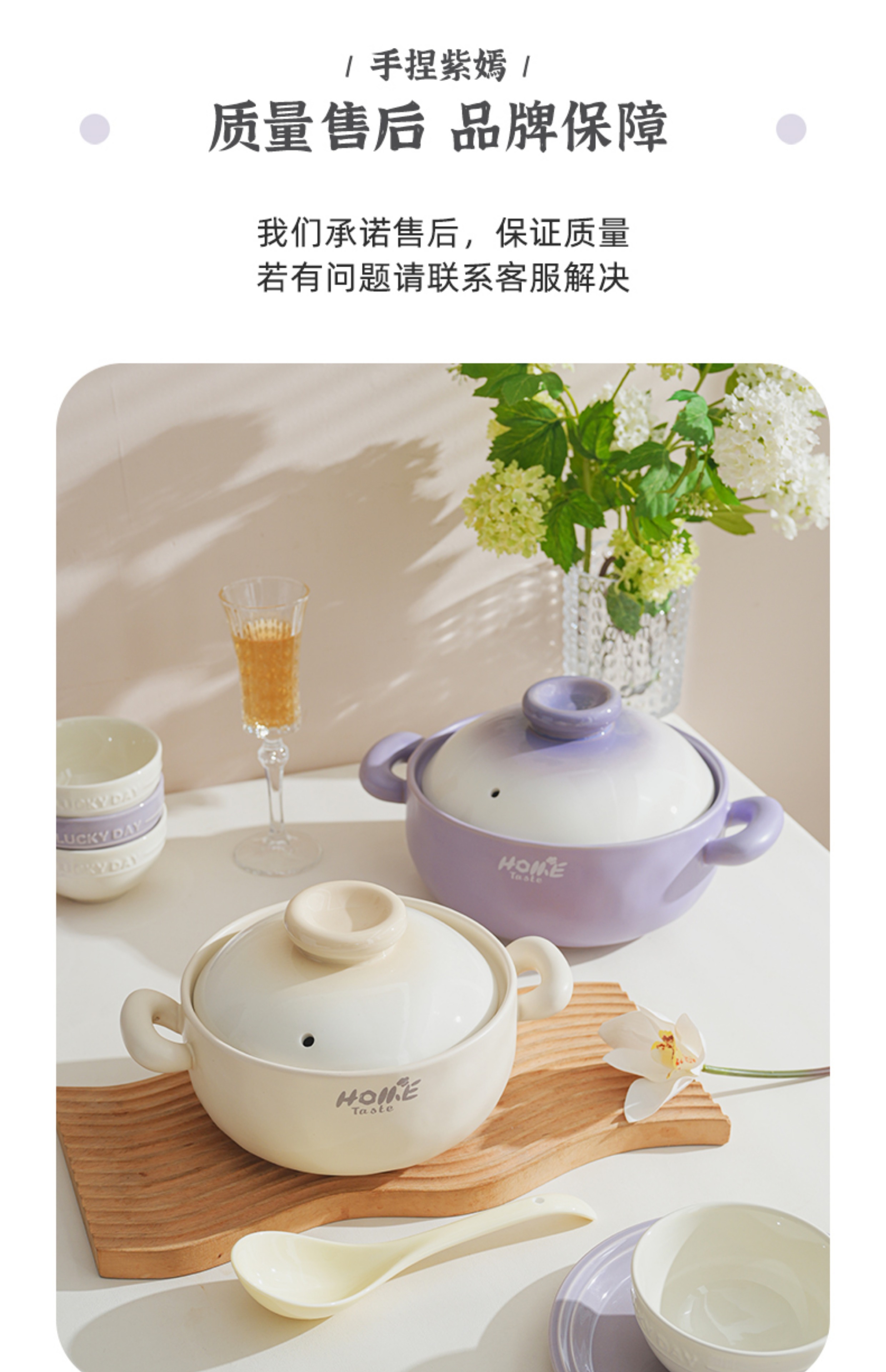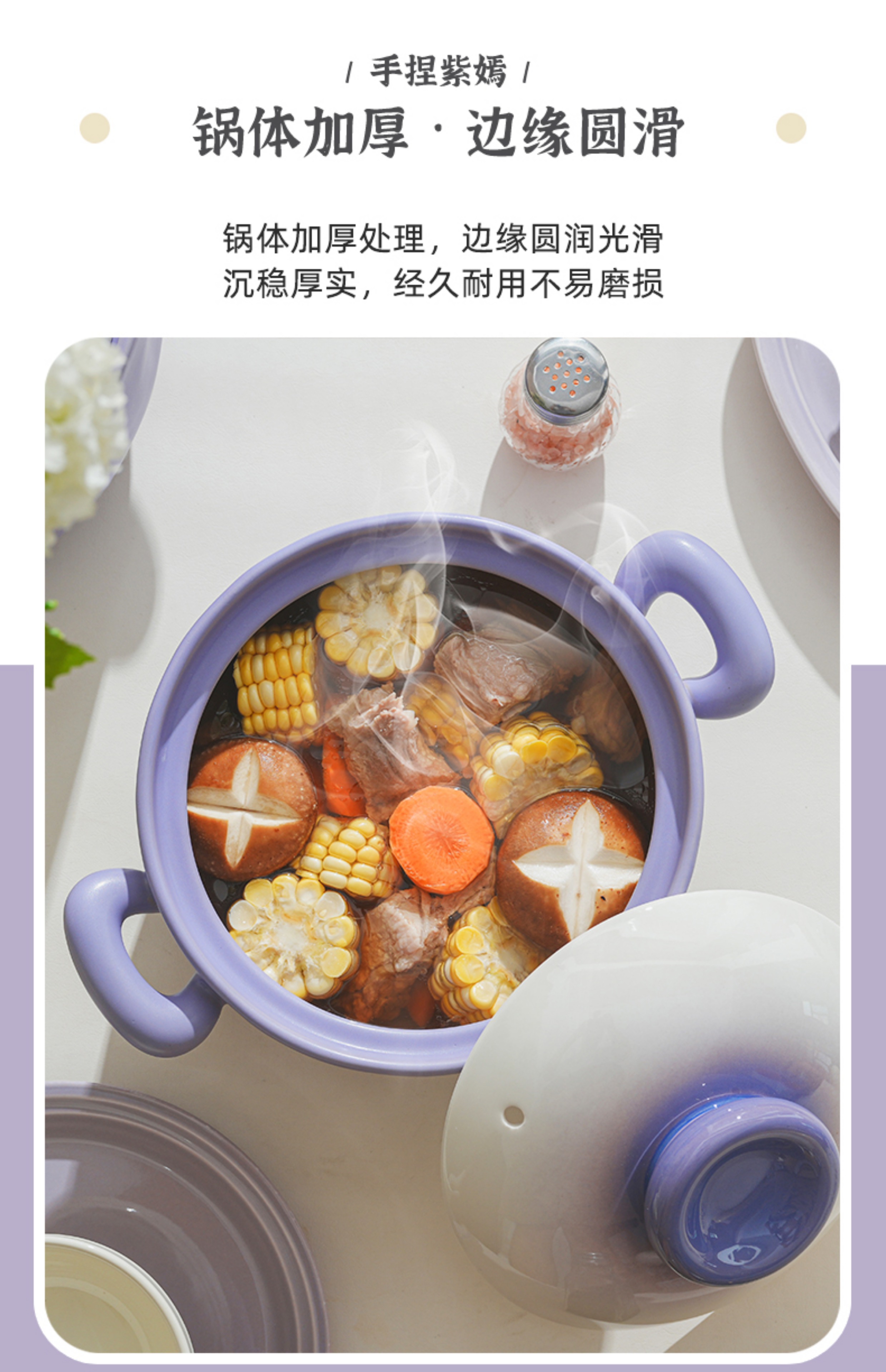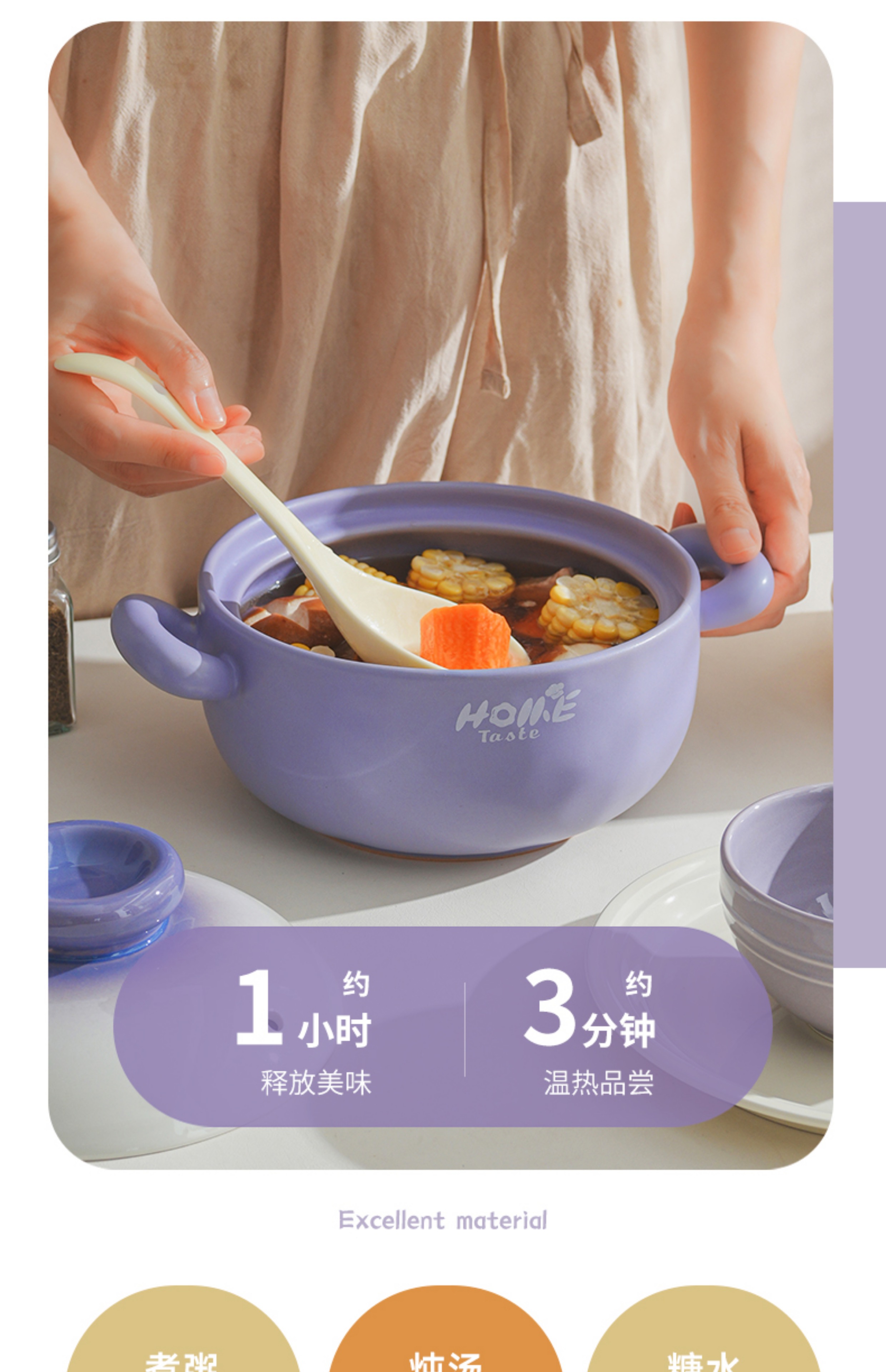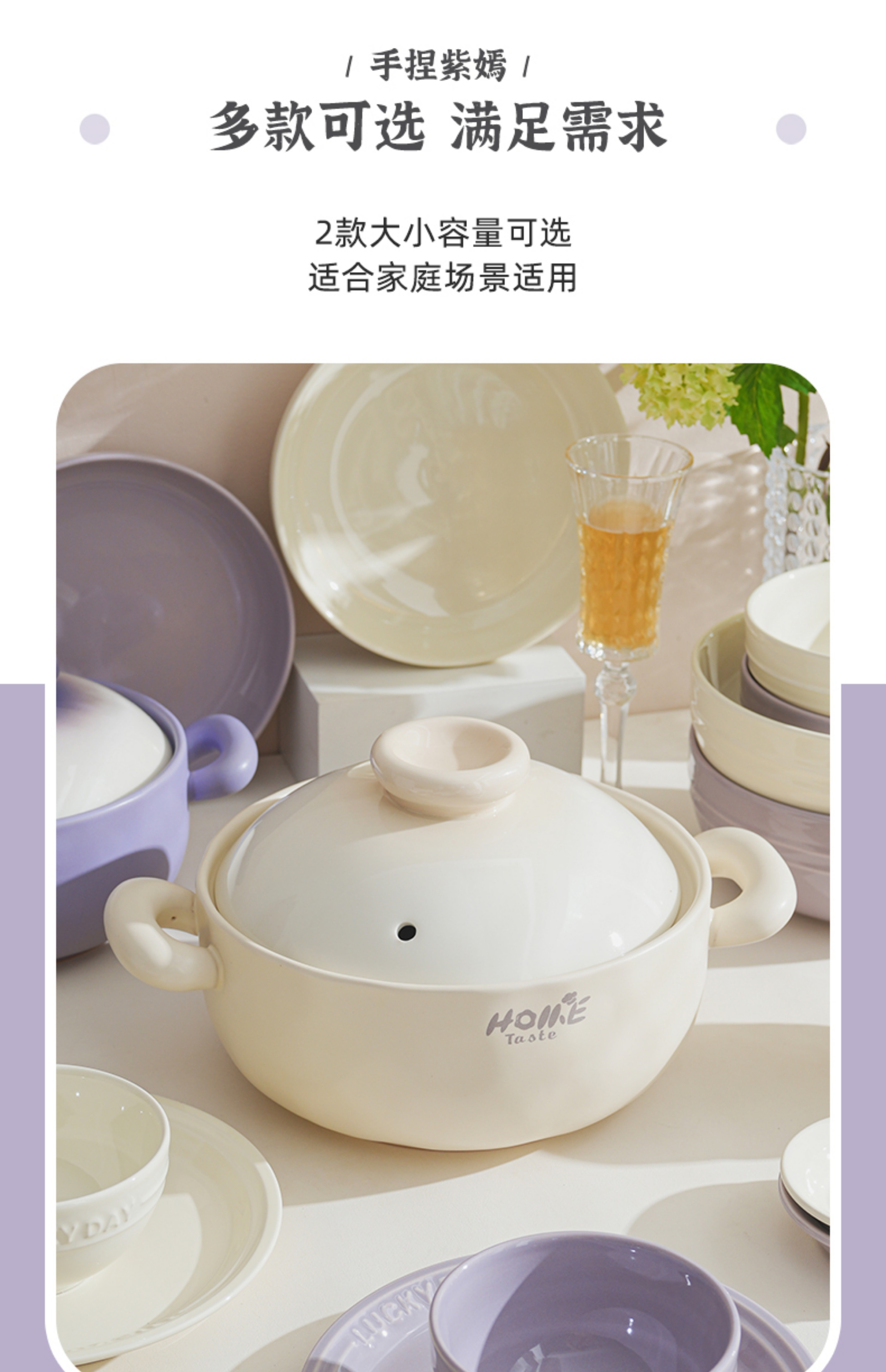 High-looking casserole household gas stew pot ceramic clay pot rice stew pot high temperature dry burning non-cracking casserole soup pot 3.2L hand-pressed beige pot recommended stew/stewing/soup 3200ml