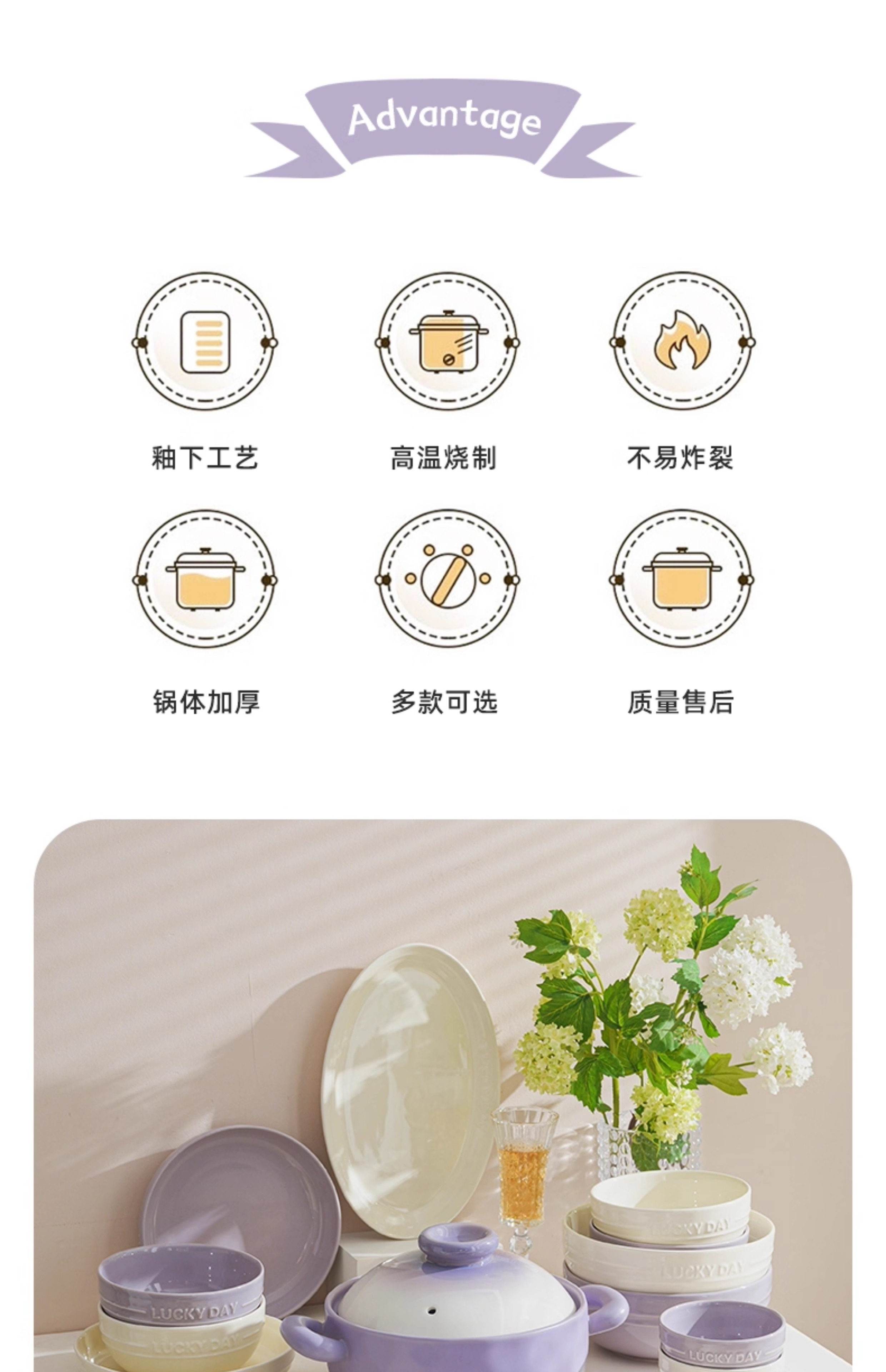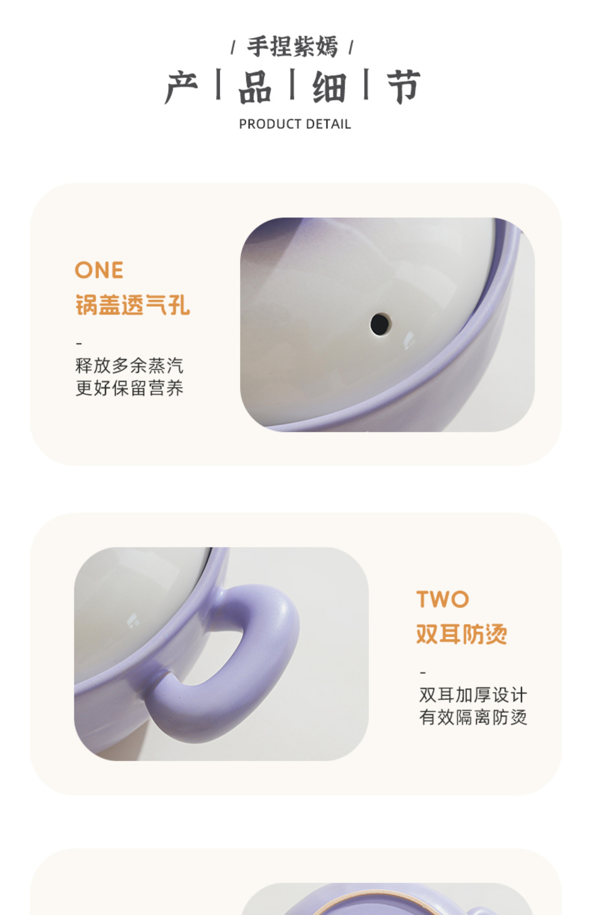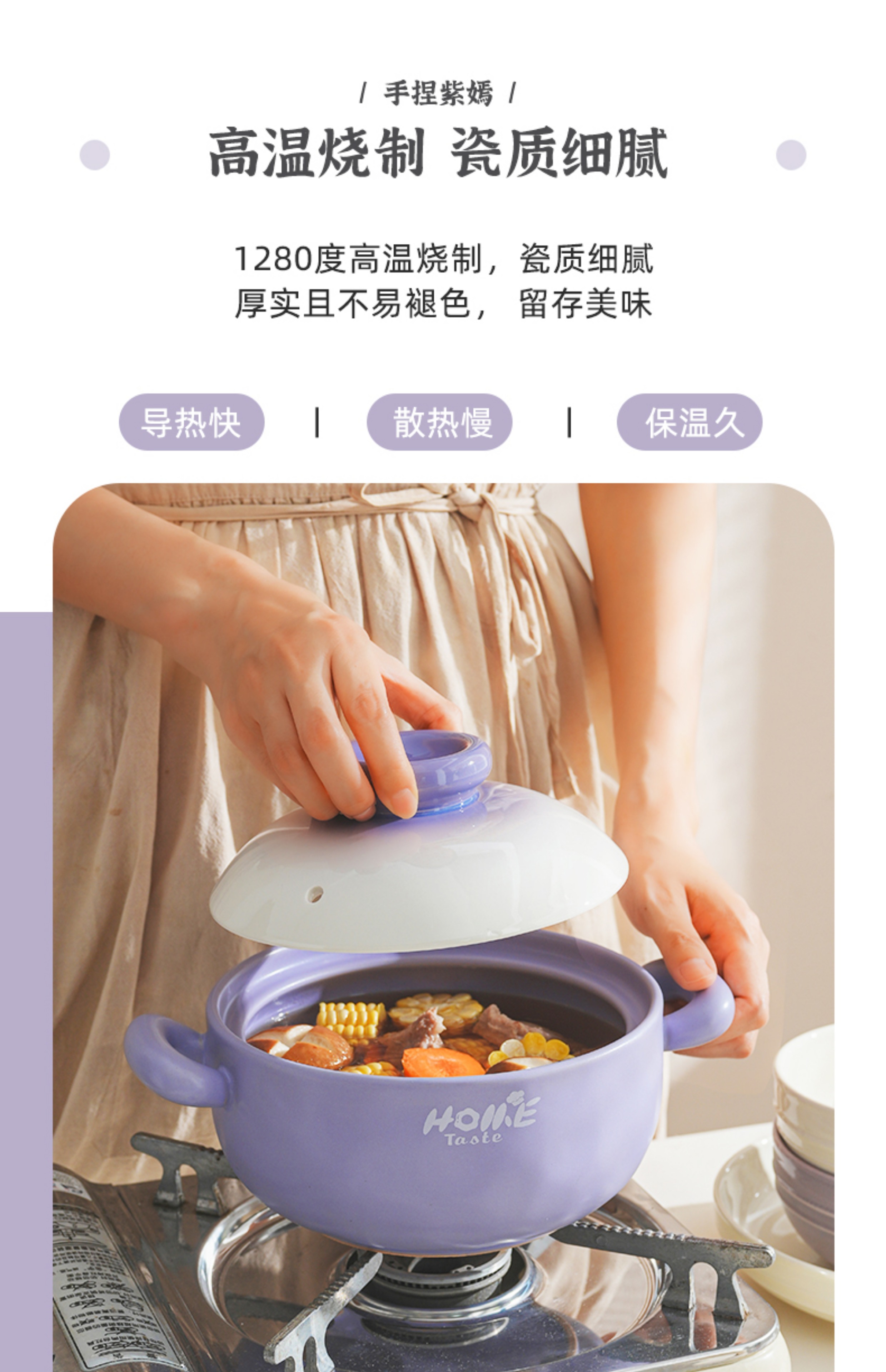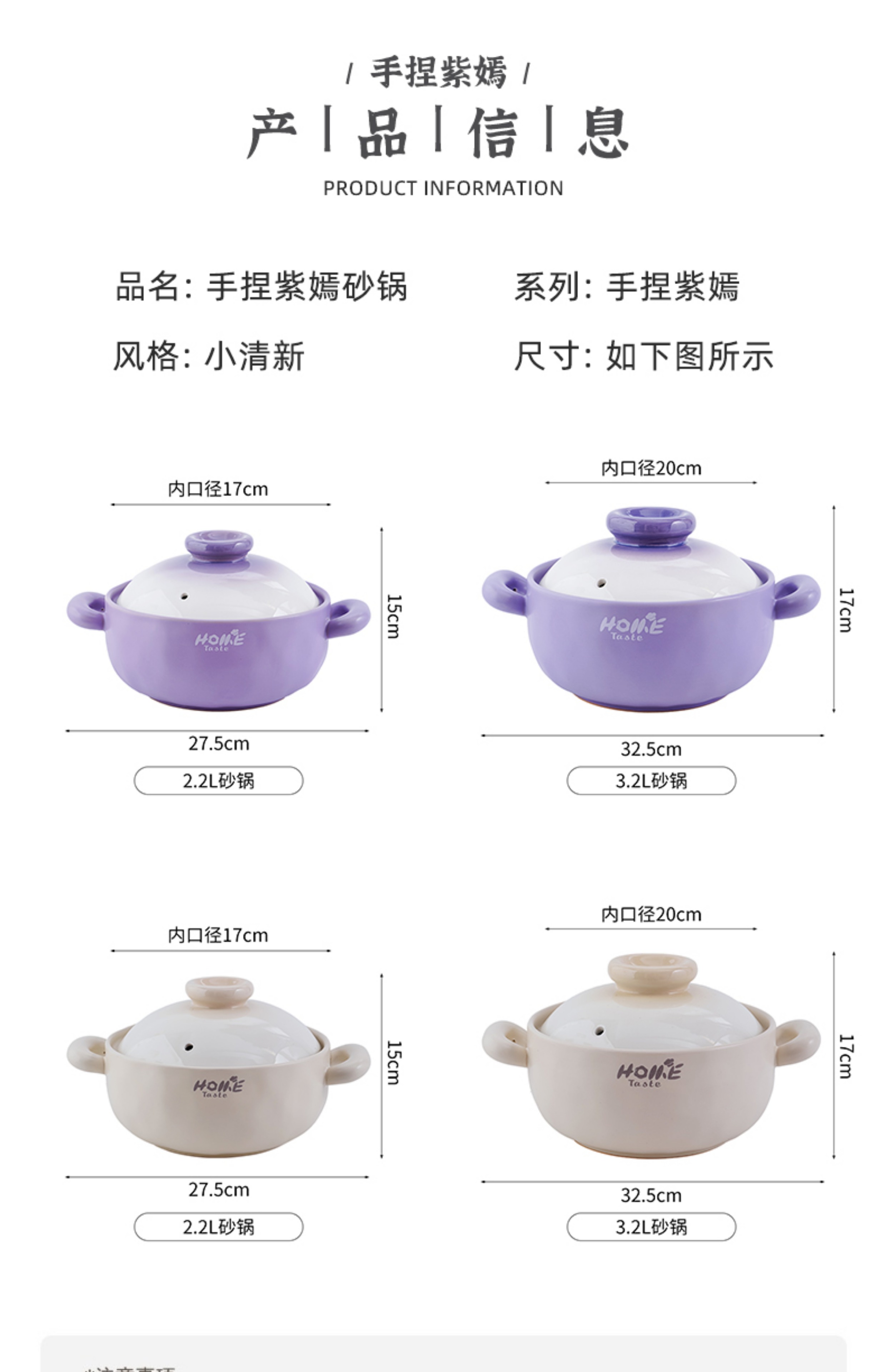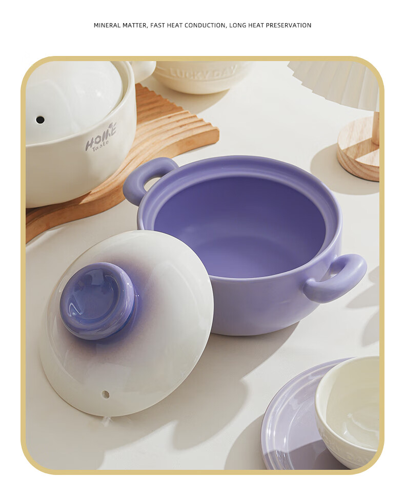 High-looking casserole household gas stew pot ceramic clay pot rice stew pot high temperature dry burning non-cracking casserole soup pot 3.2L hand-pressed beige pot recommended stew/stewing/soup 3200ml