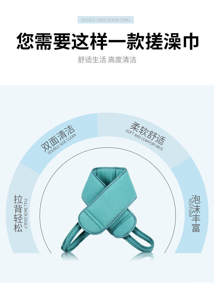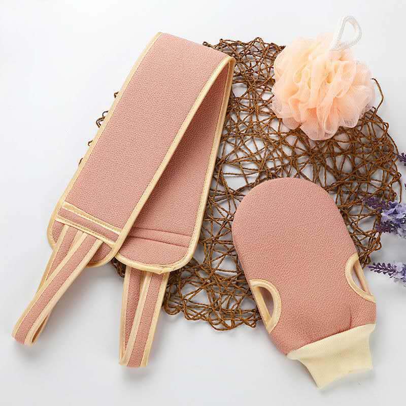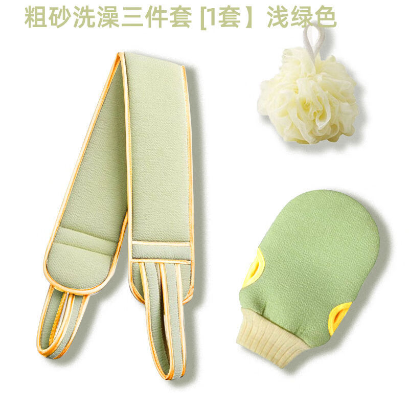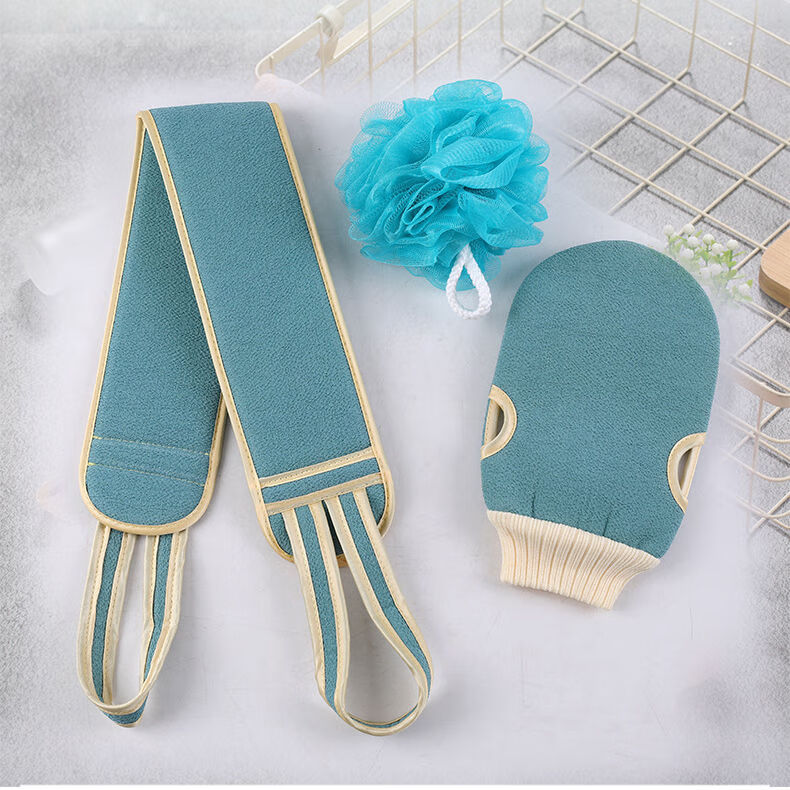 3-piece set of bath towels, coarse sand, double-sided back strips, powerful mud rub gloves to remove dead skin and rub back for adults, body rub and bath towel, blue, 3-piece set