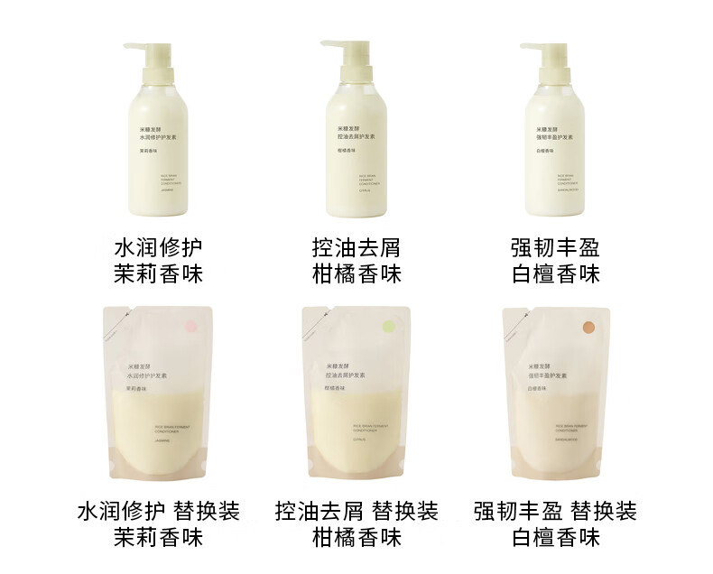 MUJI rice bran fermented conditioner, repair, Valentine's Day gift, 380ml*1 bag, strong and plump refill, white sandalwood fragrance