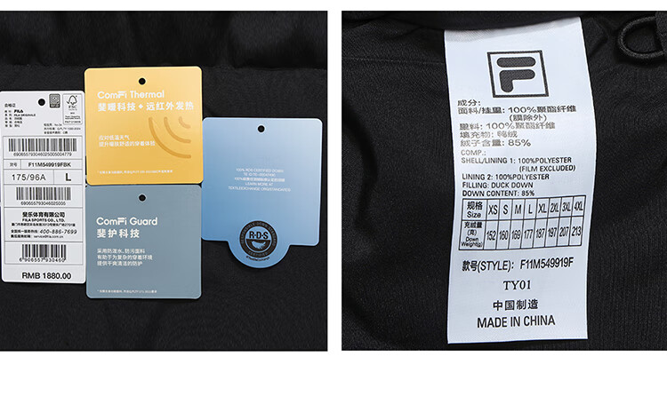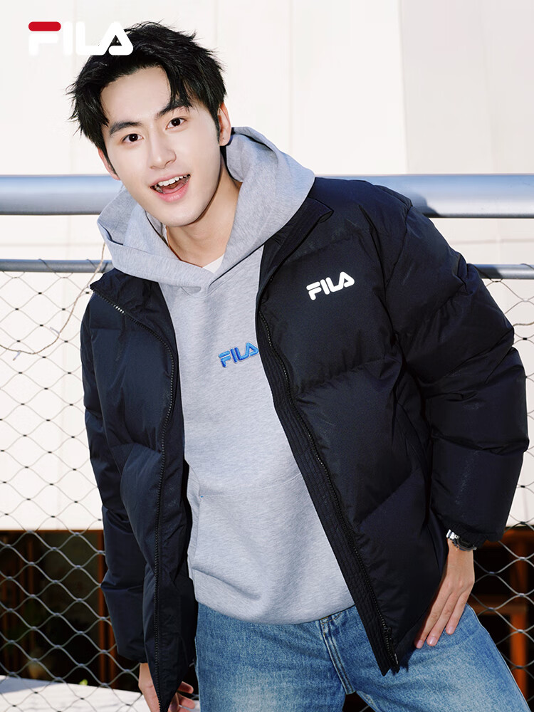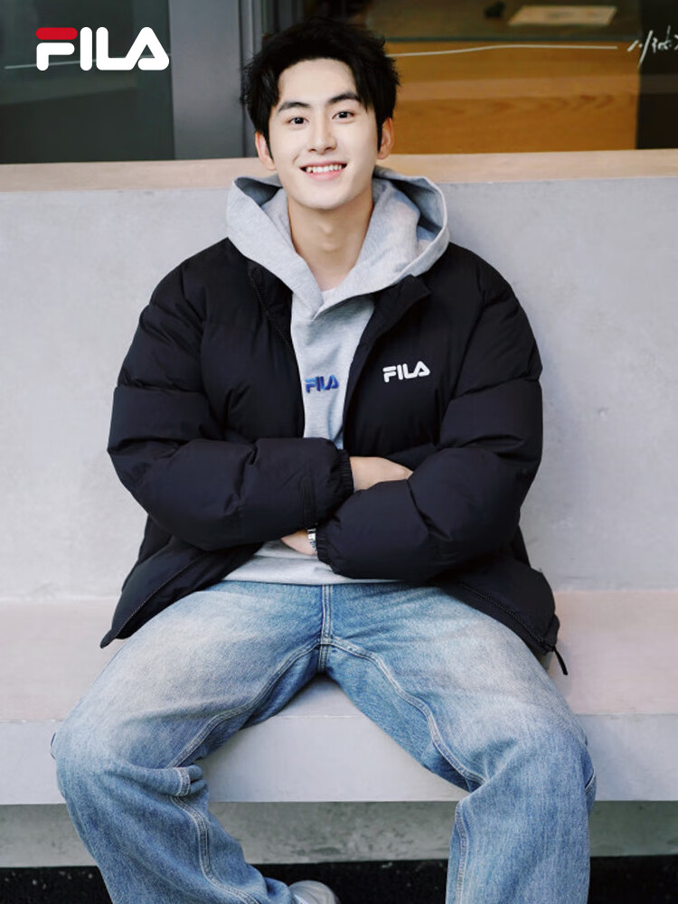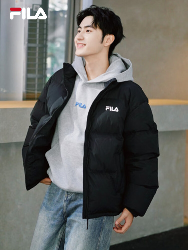 FILA Yi Yang Qianxi same style | Fila official men's down jacket 2025 winter new loose warm colorful down black - BK XL 180/100A/XL