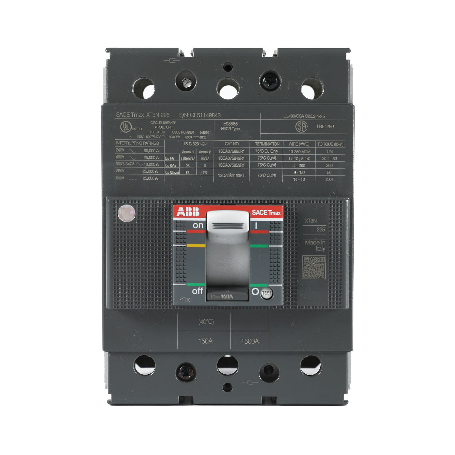 Molded case circuit breaker UL certification XT series American standard export XT1N 125 TMF 40-500 3p 1