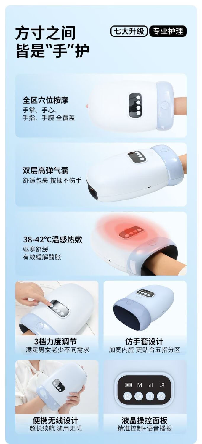 MIAOJIE hand massager joint acupuncture point palm kneading artifact hot compress care instrument finger massager H60 wireless hot compress upgraded model