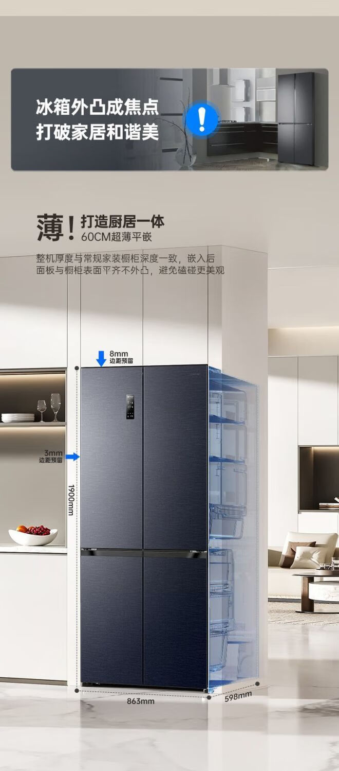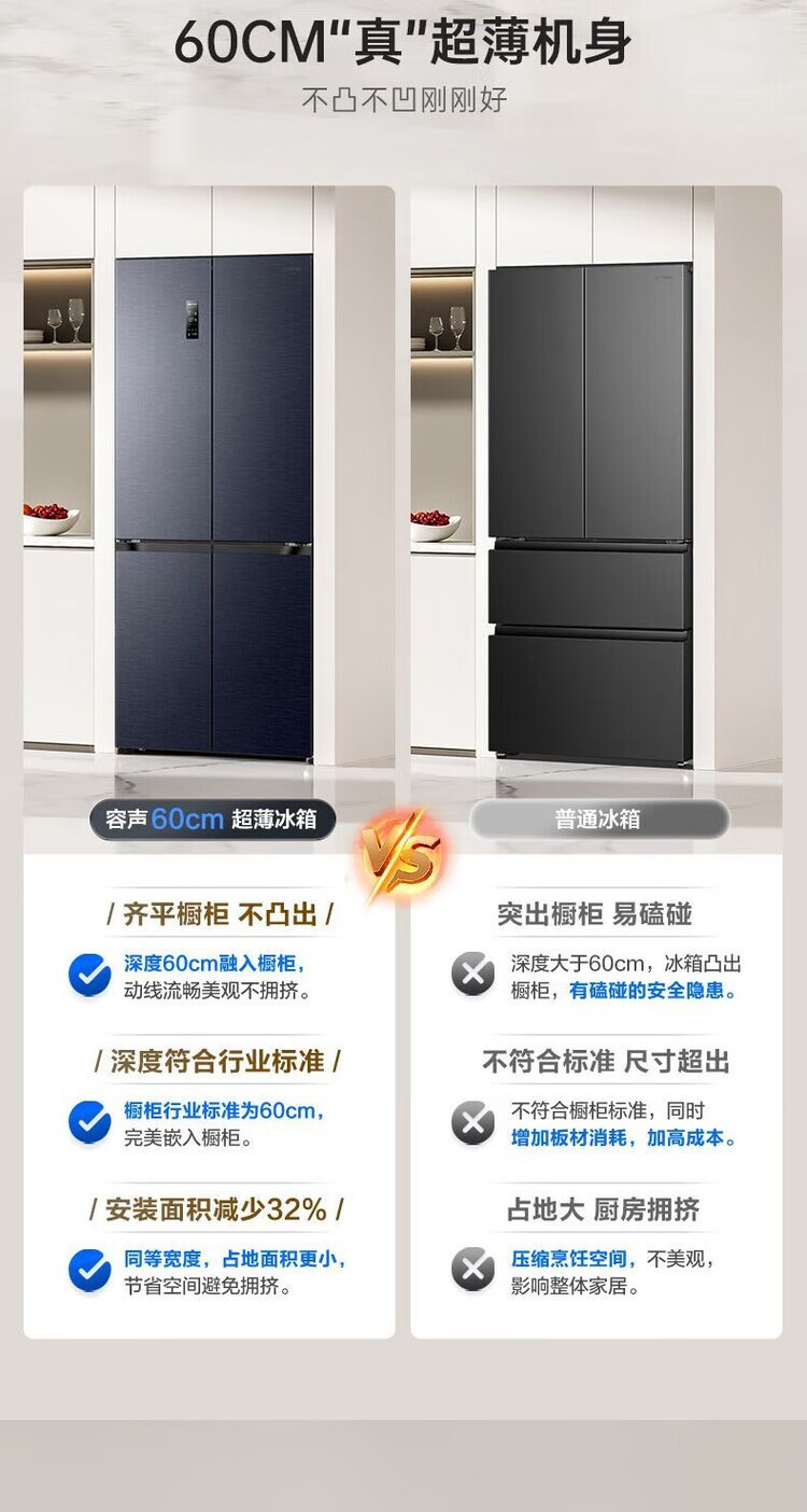 Rongsheng New Product Launched Zero Embedded Refrigerator 60cm Ultra-thin Cross Four Doors IDP Active Sterilization New Product Launched Rongsheng Zero Embedded Refrigerator 60cm Ultra-Thin Cross Four Doors I