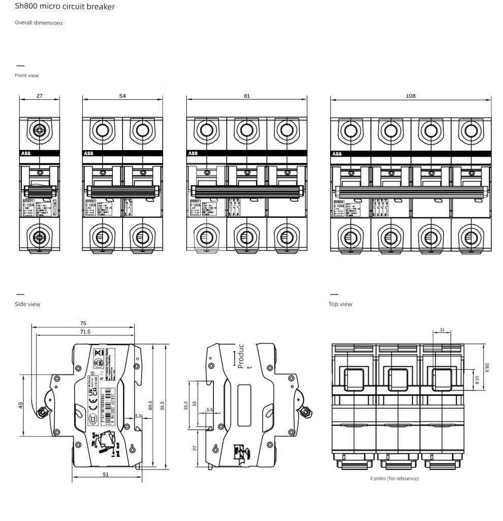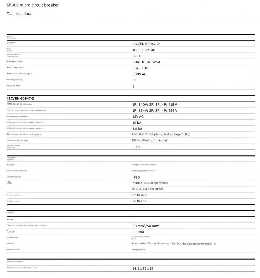 Damnoen SaSAbb high current circuit breaker h800 series switch circuit breaker h801 h802 h803 h804 SH800 C type 125A4P