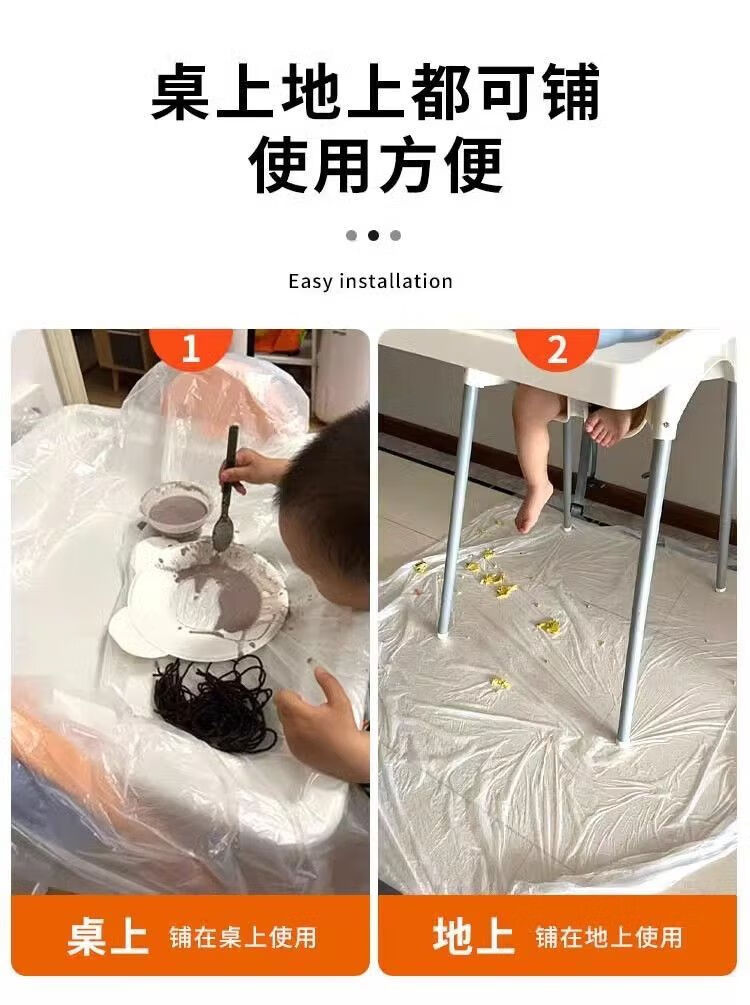 Junkis children's dining chair mat, anti-dirty artifact for eating, baby chair floor mat, disposable plastic mat, oil-proof plus safety, hygiene, oil-proof, 60 pieces