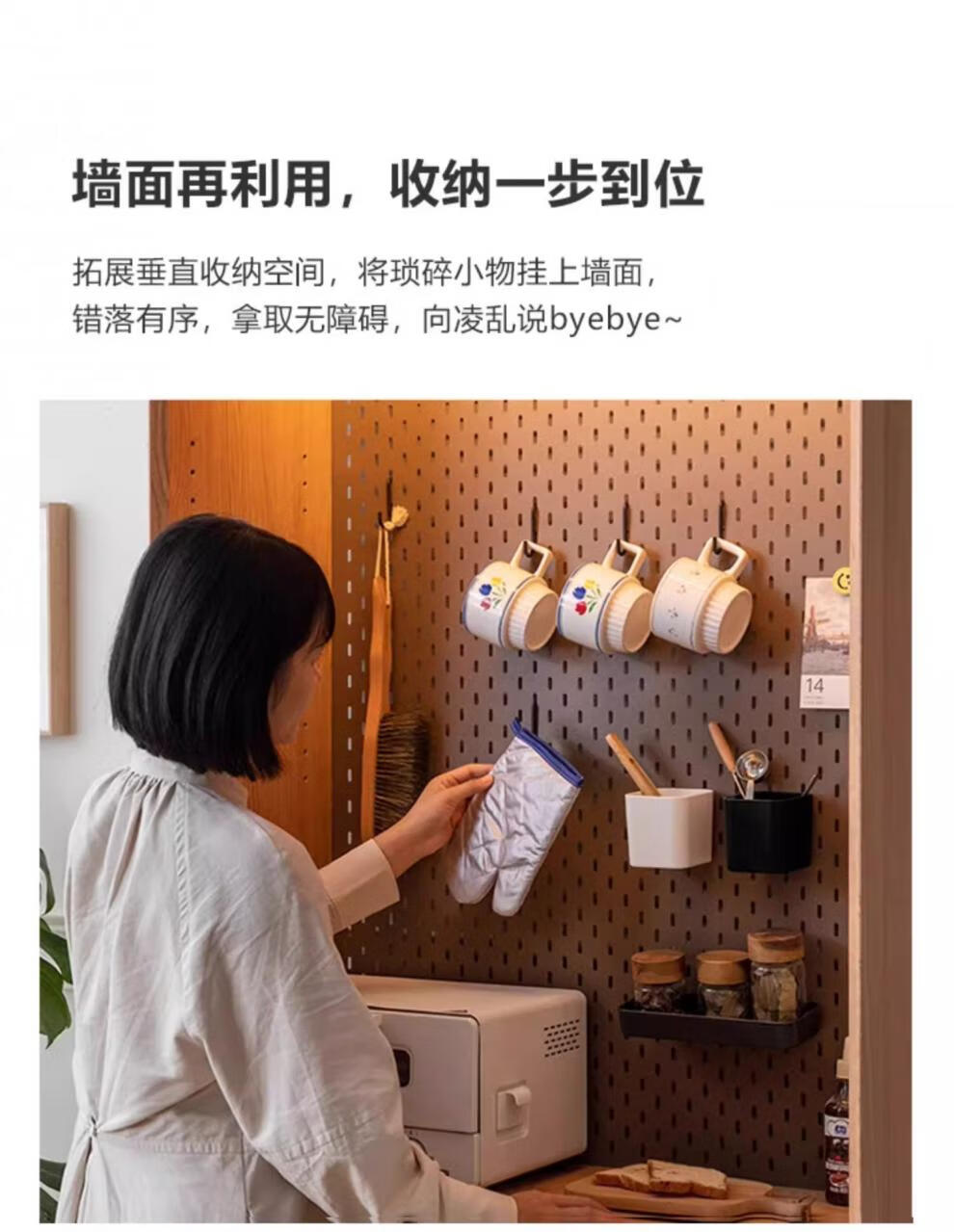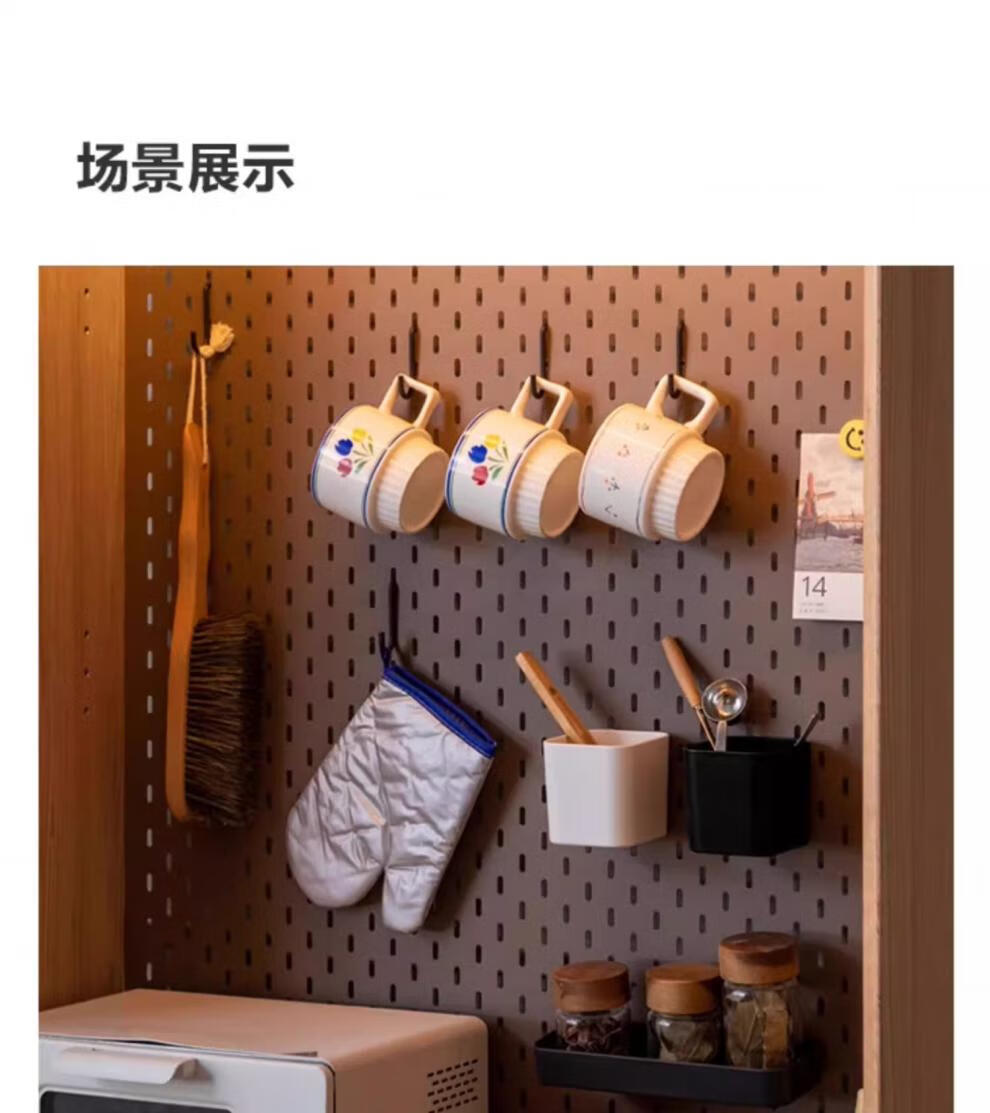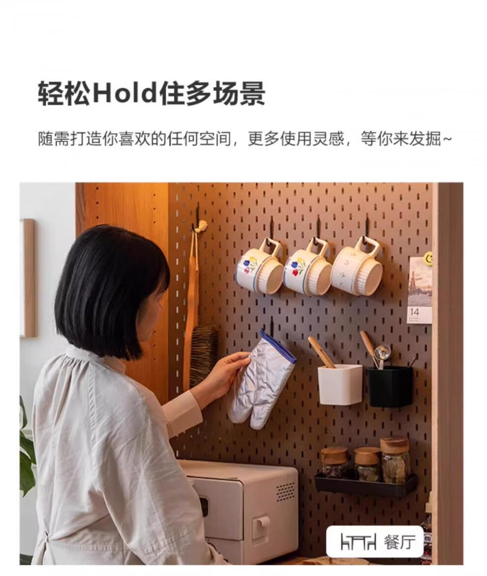 Shantou Lincun Hole Board Accessories Genji Muyu Sideboard Two Black Wood Hook Storage Box Kitchen Hanging Place Welfare_Four-piece Set (Black)_Optional White