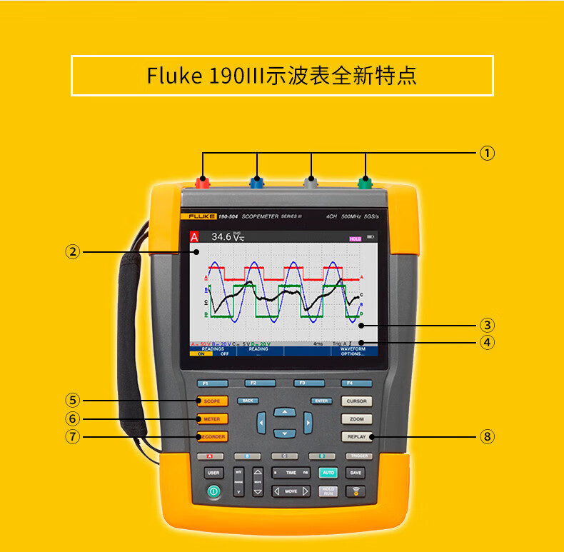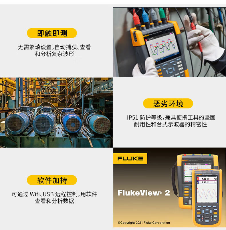 Fluke dual-channel oscilloscope handheld oscilloscope F190-062S 102S 204S 504S Fluke190-062 dual-channel 60MHz oscilloscope