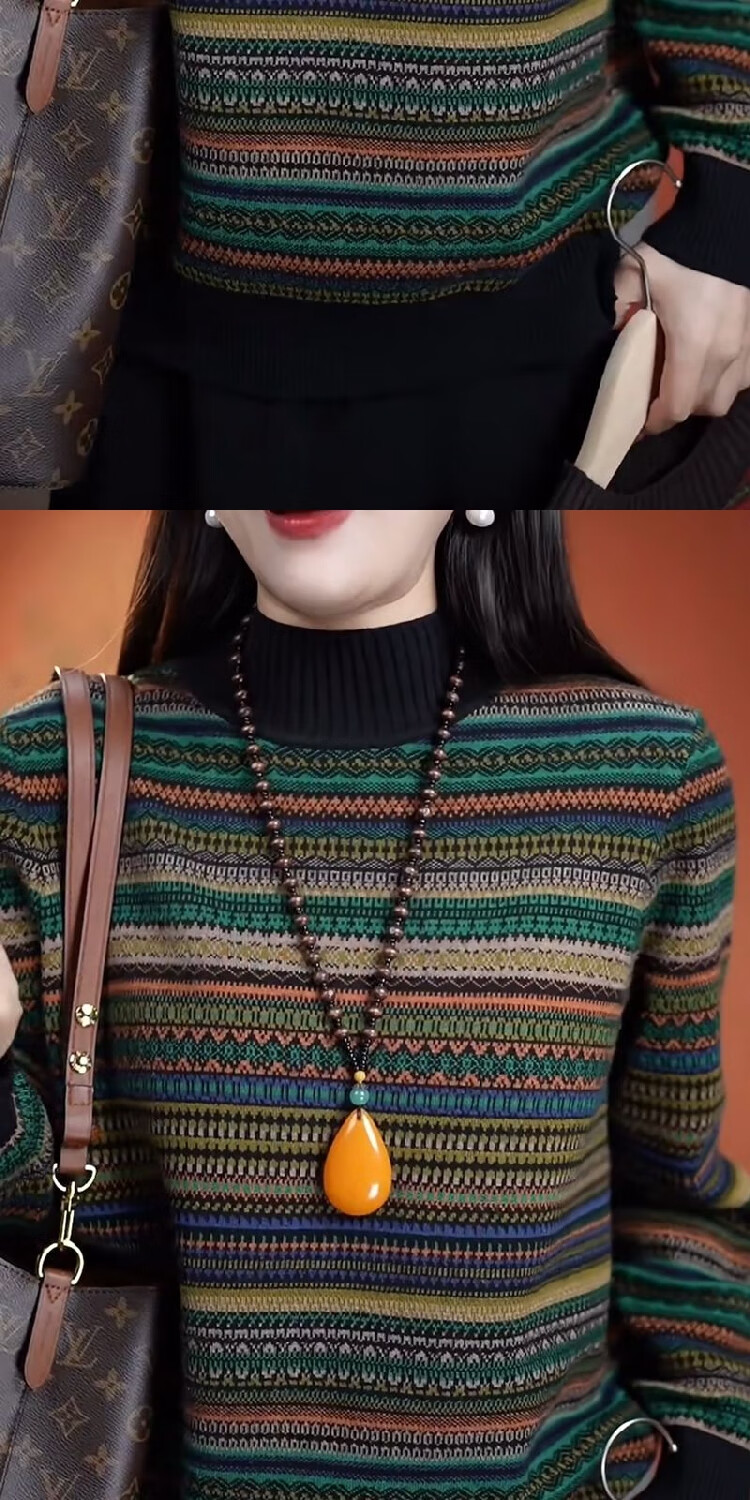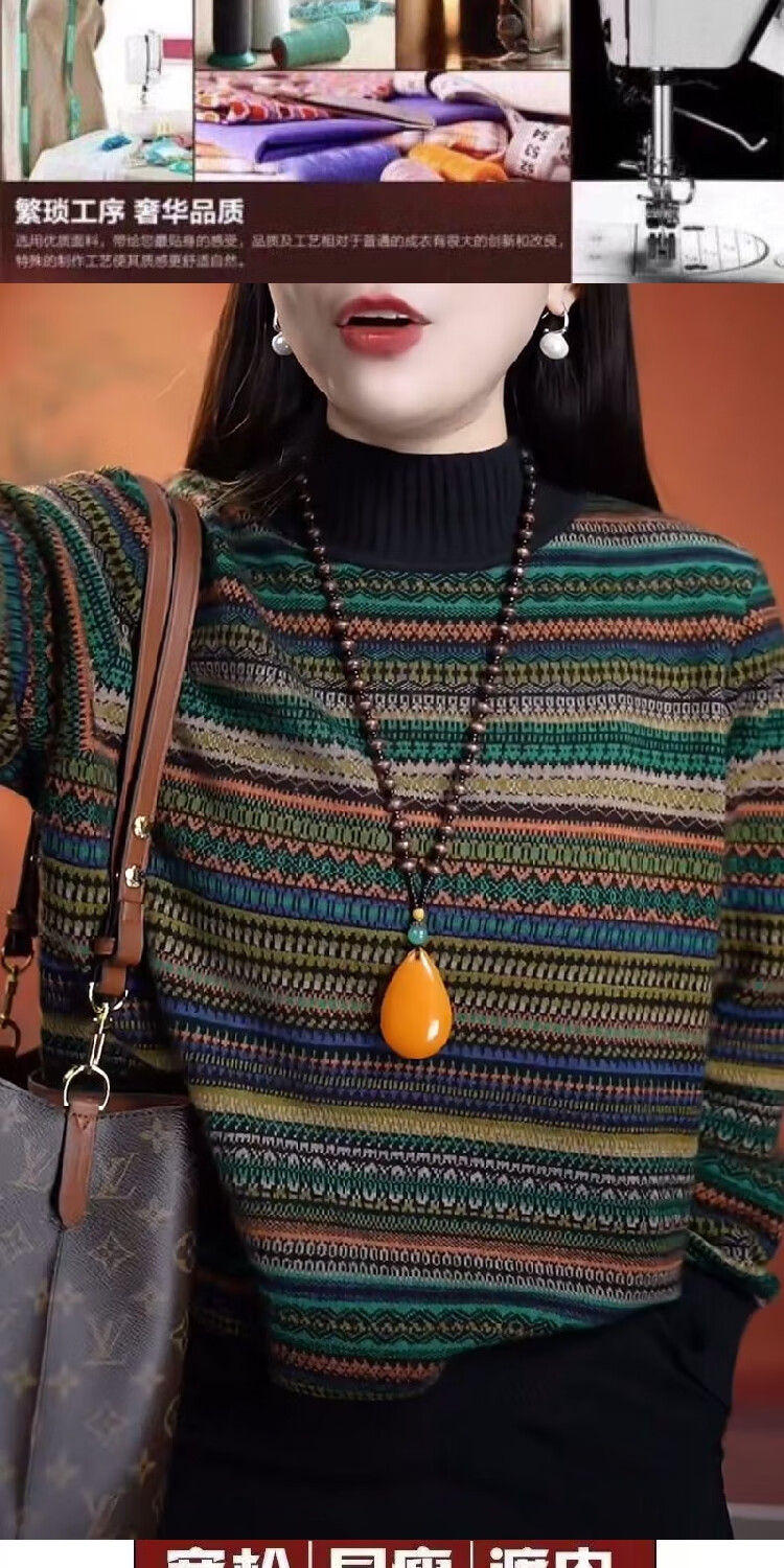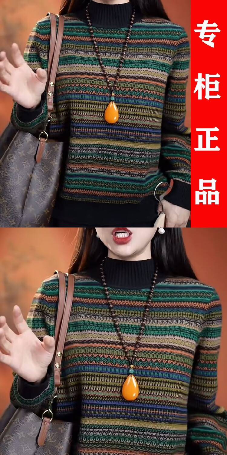 2025 new autumn and winter retro striped tops, stylish high-necked bottoming shirts, jacquard fashionable bottoming tops for women, picture color 2XL, recommended 120-135 catties