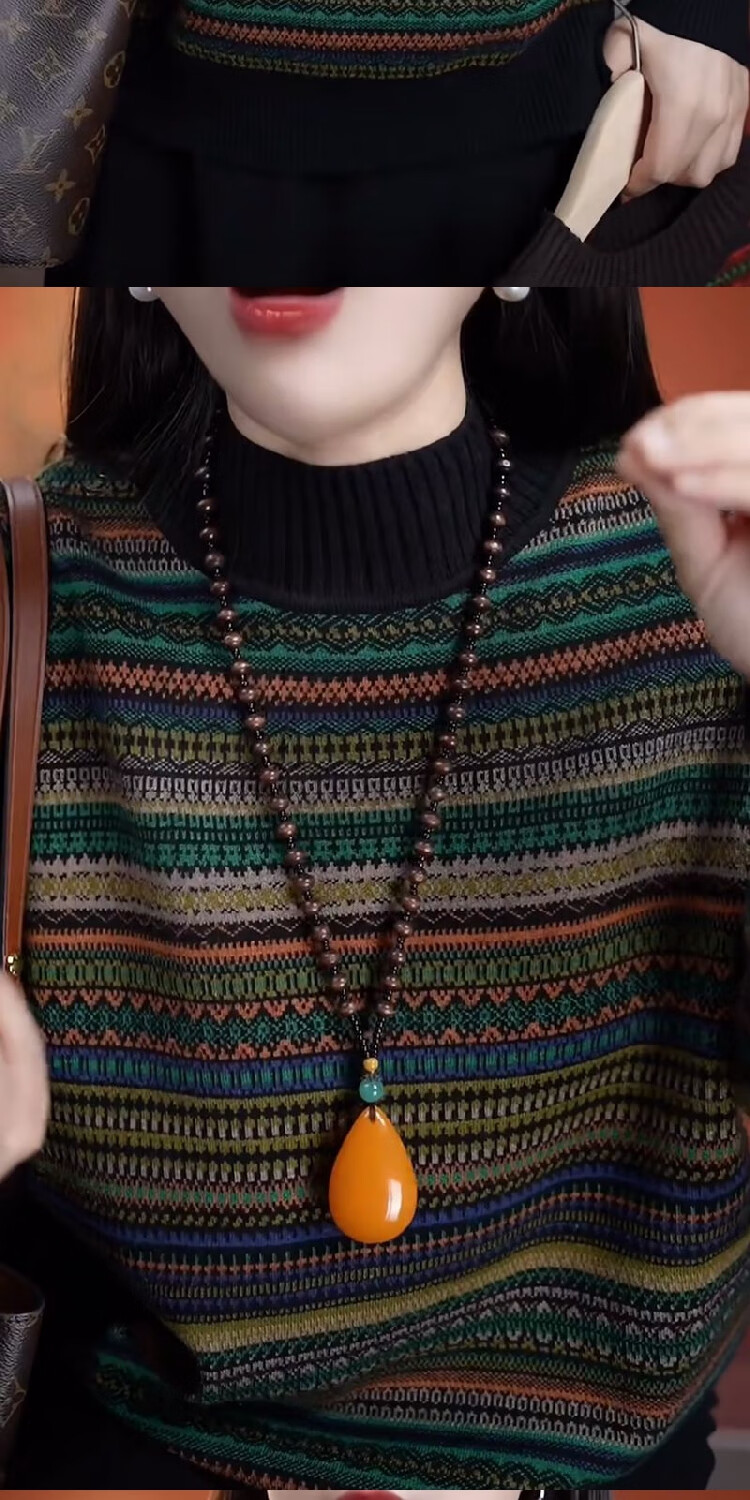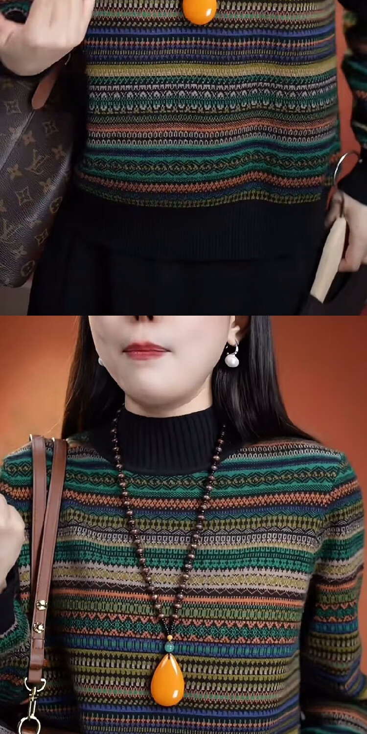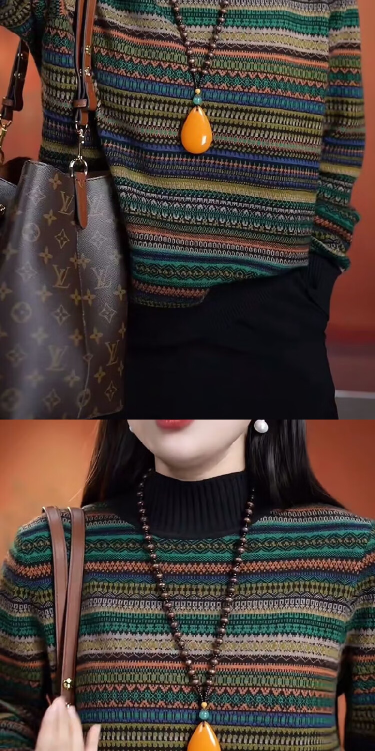 2025 new autumn and winter retro striped tops, stylish high-necked bottoming shirts, jacquard fashionable bottoming tops for women, picture color 2XL, recommended 120-135 catties