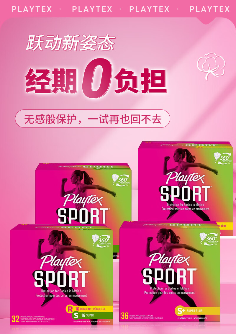 Playtex tampons imported sports series tampons long catheter imported tampons imported from Canada super large flow 36 pcs 1 box