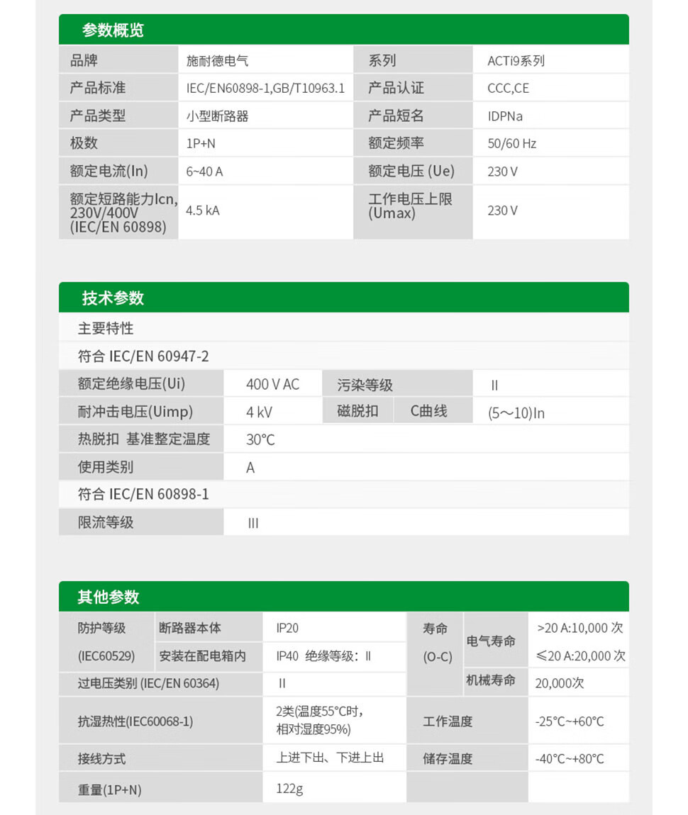 IDPNa Schneider small circuit breaker air switch 1P plus N air switch monolithic C6 10 16 20 32 40A type a 4.5kA 10A 1P+N