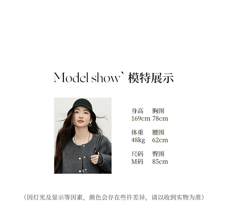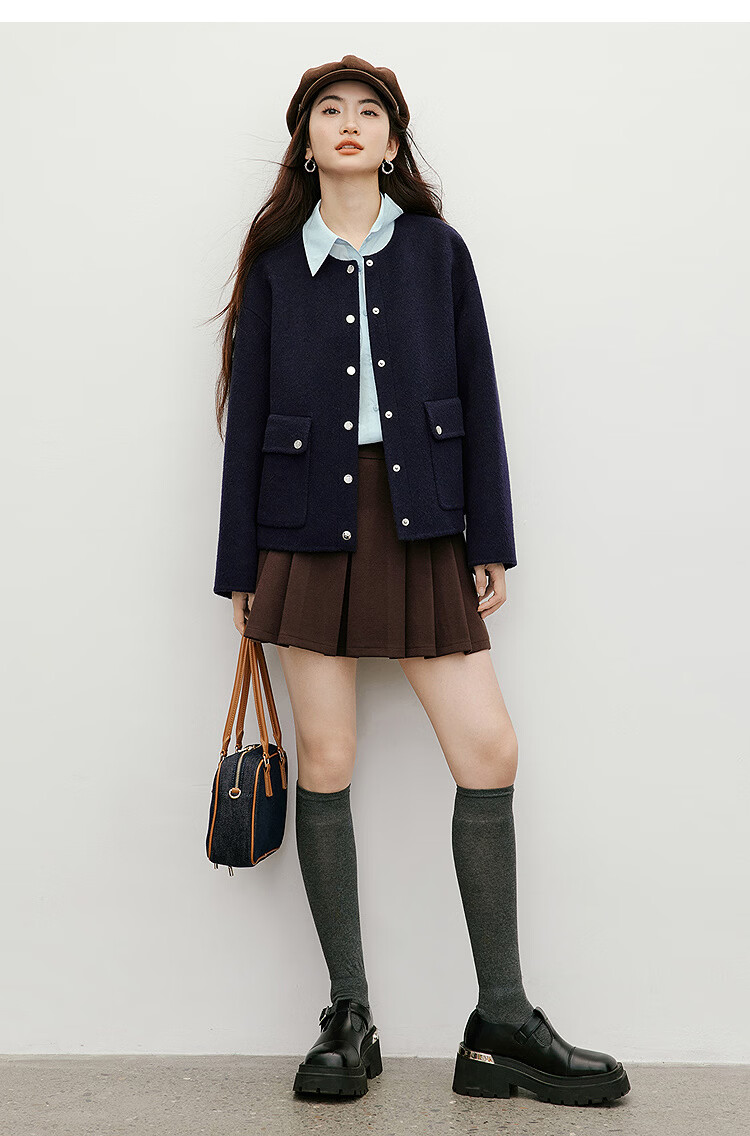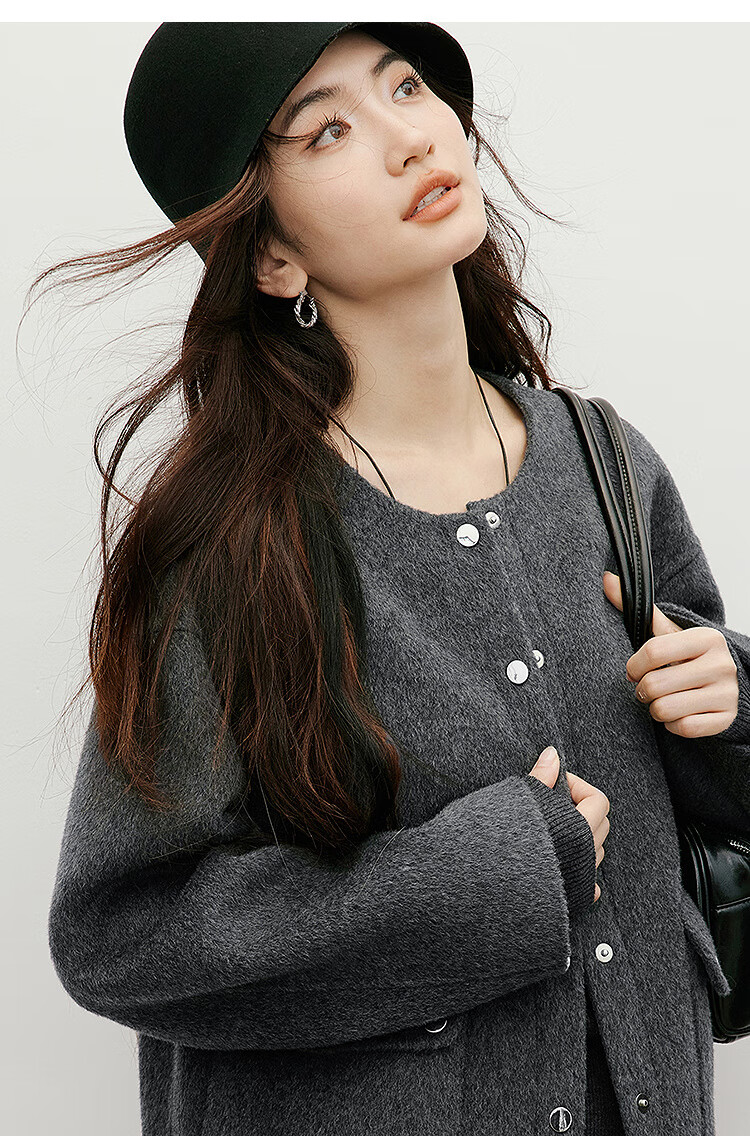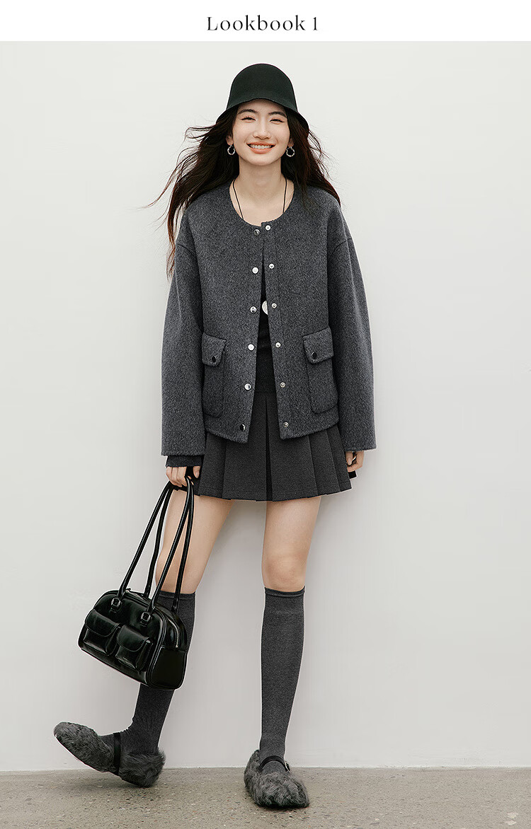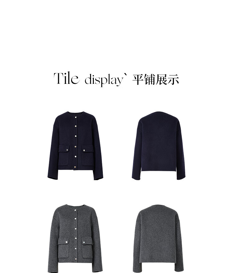 Red sleeve work style woolen coat 2025 winter new women's round neck light and mature temperament short double-sided woolen coat Ash 056 S