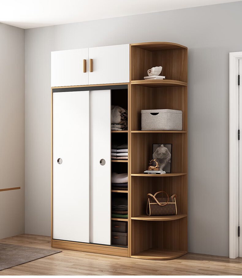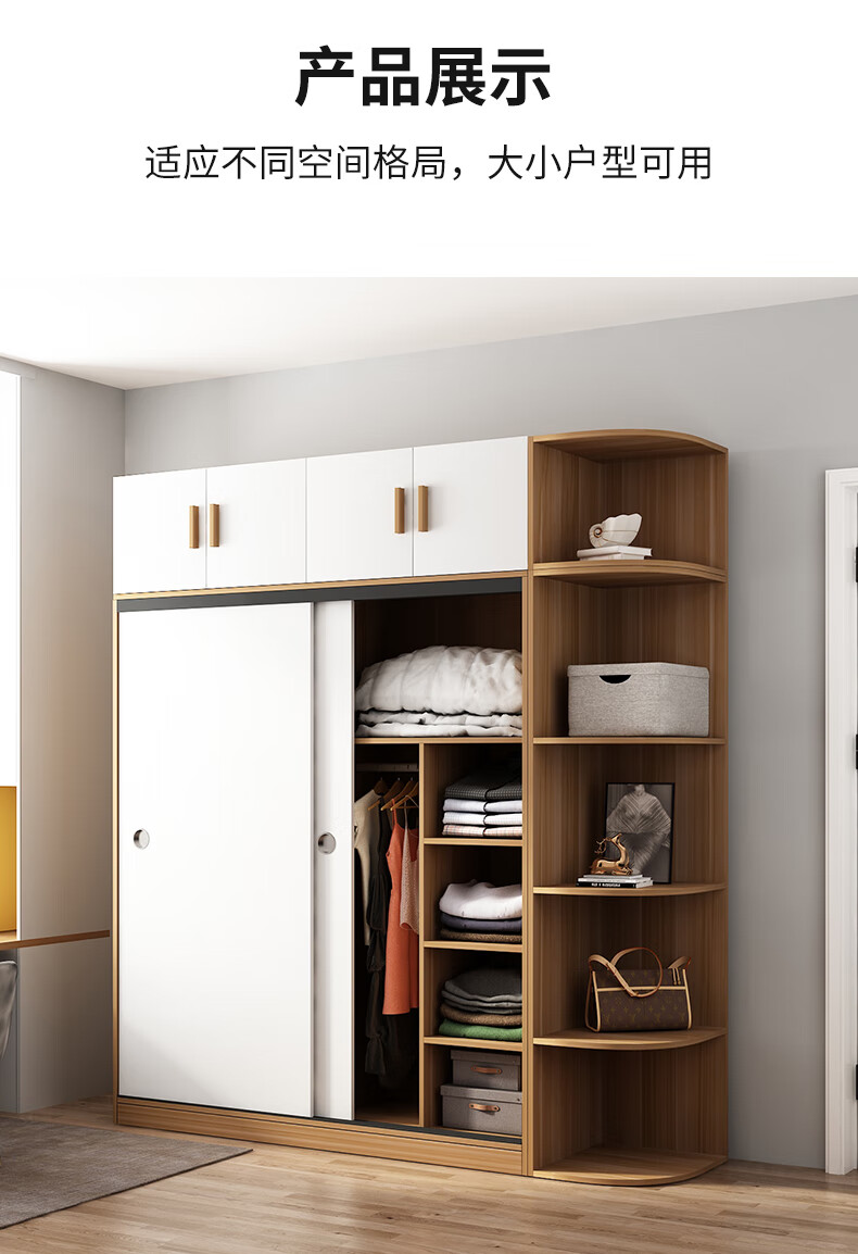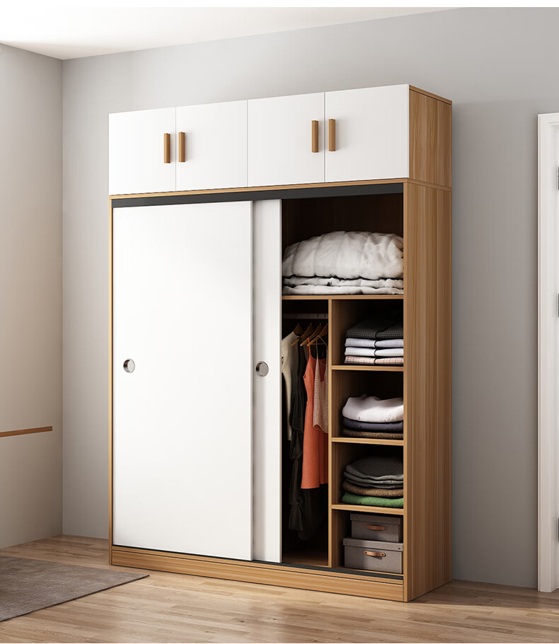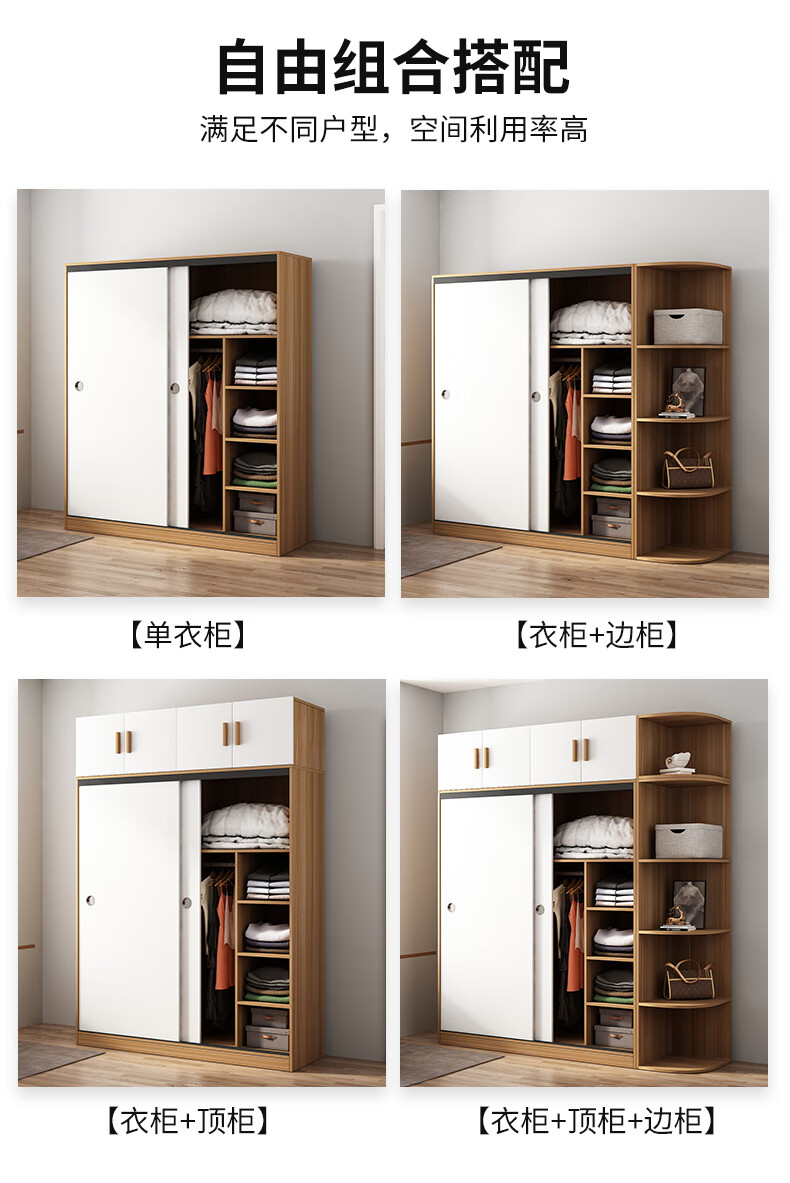 Wardrobe household bedroom wooden sliding door children's wardrobe rental house economical simple cabinet small apartment simple light white sliding door 1.2 meters single cabinet self-installation