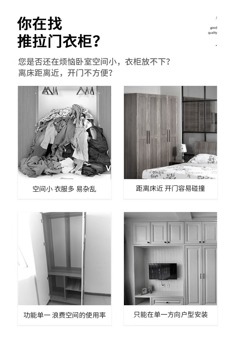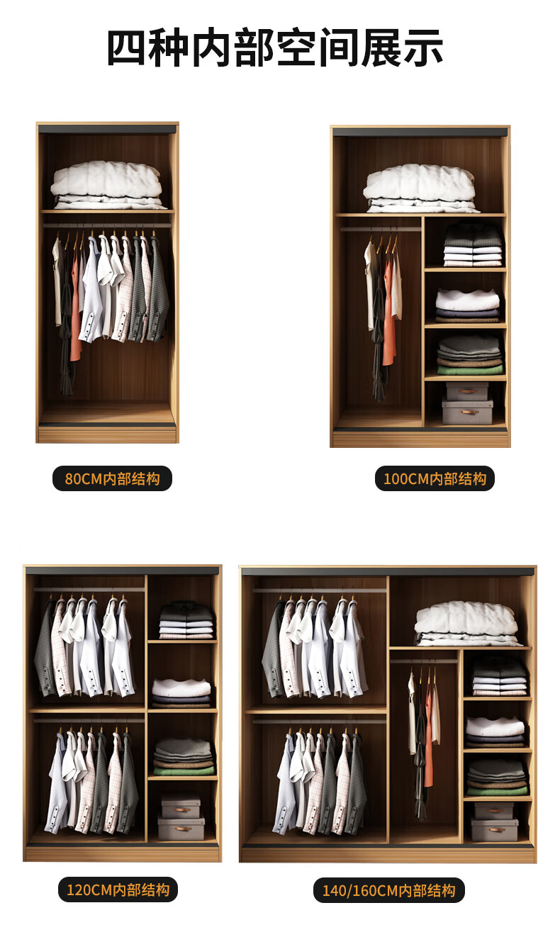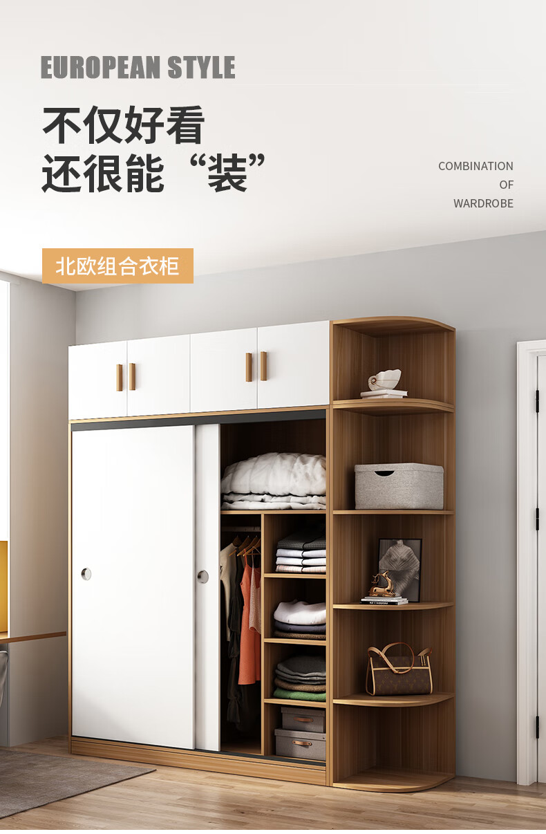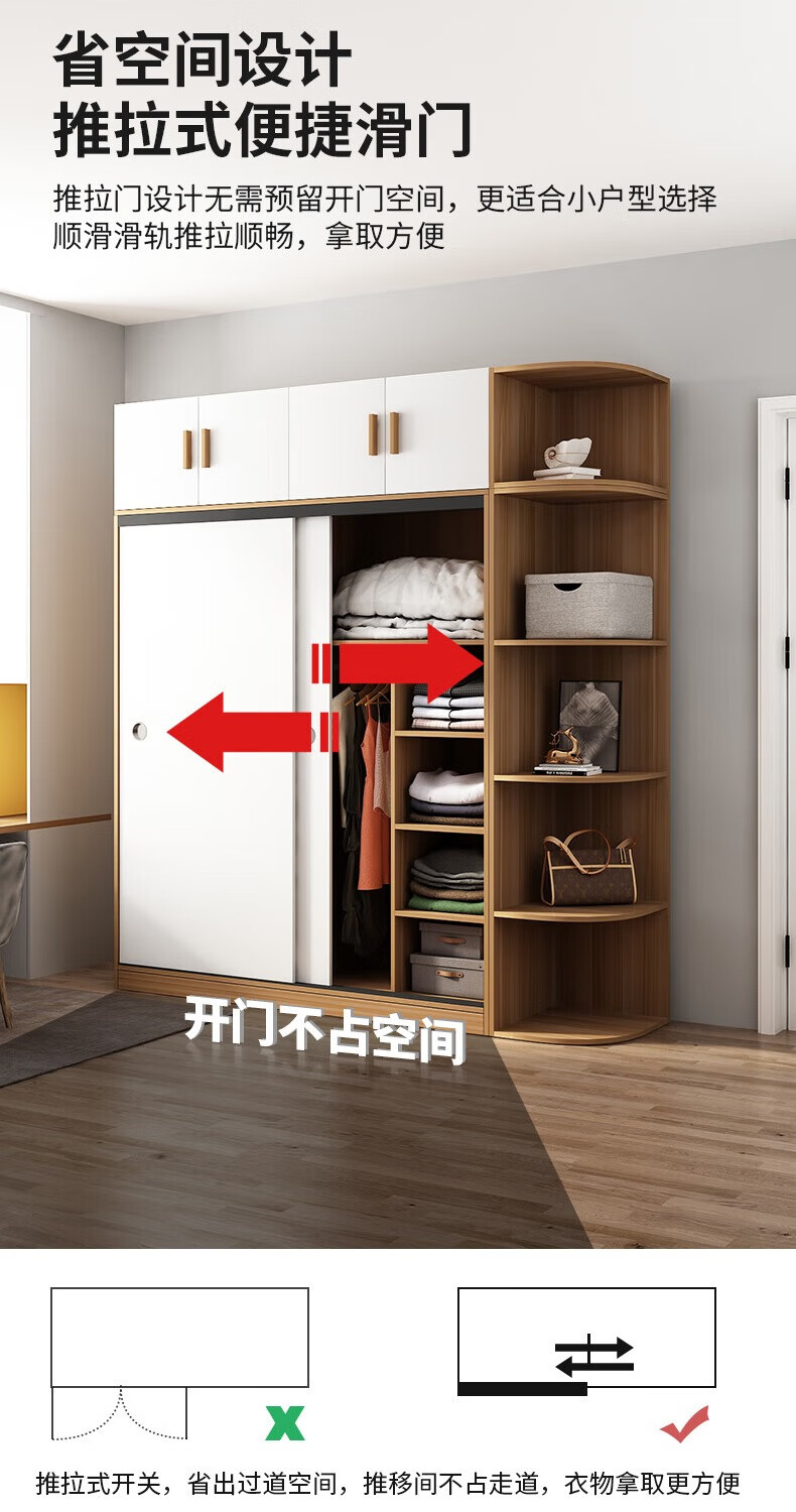 Wardrobe household bedroom wooden sliding door children's wardrobe rental house economical simple cabinet small apartment simple light white sliding door 1.2 meters single cabinet self-installation