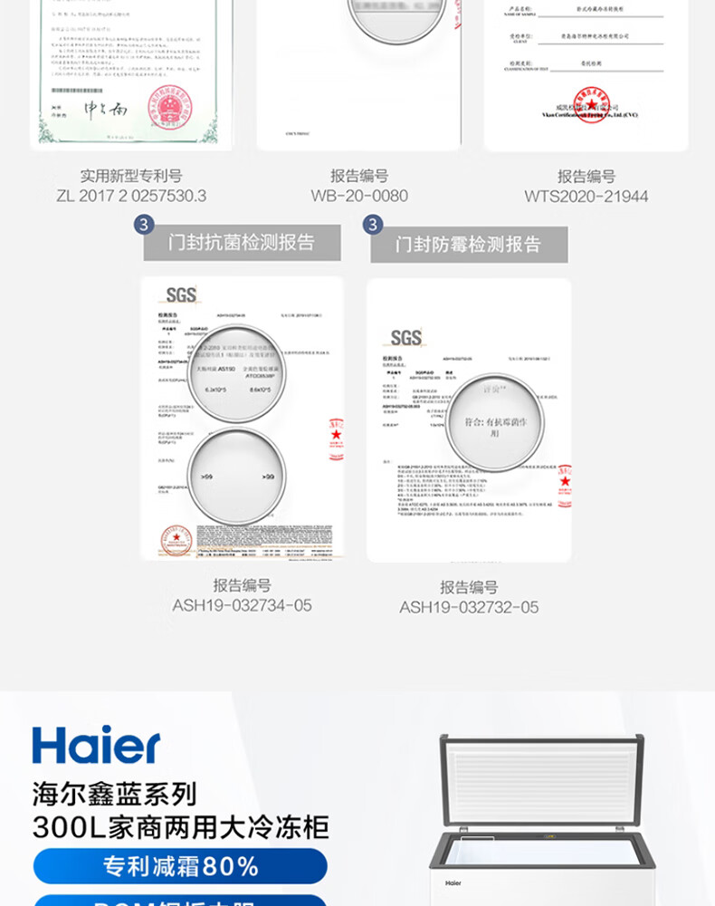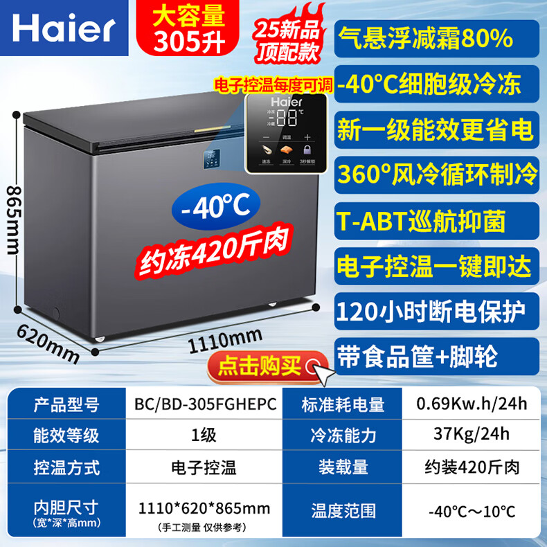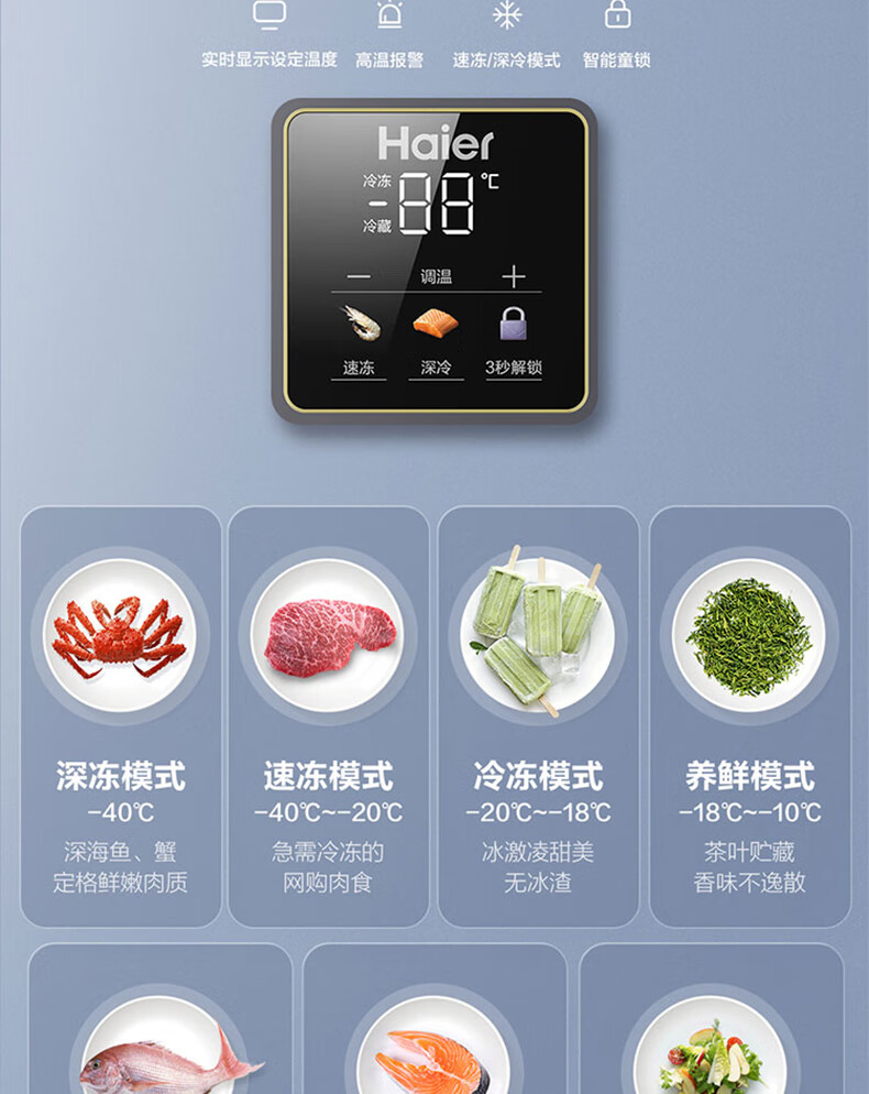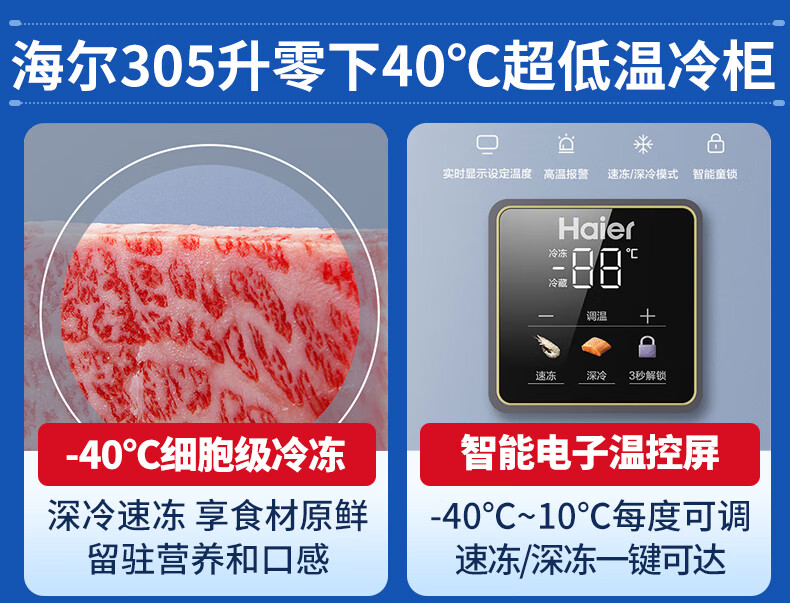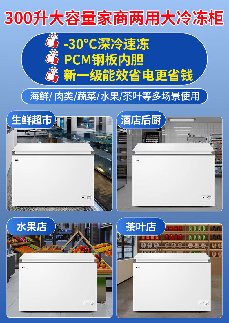 Haier Freezer Household 300L Large Capacity Full Freezing Ultra-Low Temperature Quick Freezing Small Freezer Small 200L Freezing and Refrigeration Dual-Purpose Level One Energy Saving Freezer No Need for Frequent Defrosting 300L -30 Degree Quick Freezing + New Level of Energy Efficiency + Steel Plate Liner 300L