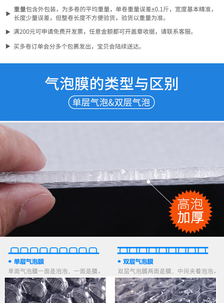 ZHIO thickened shockproof bubble film roll 30 50cm express packaging foam bubble pad bubble paper packaging film whole roll double layer reinforced 50cm wide 100 meters long 5.2 pounds