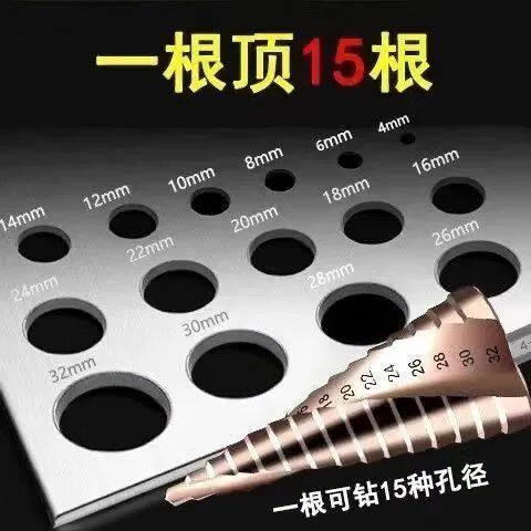 M35 cobalt-containing pagoda drill bit, high hardness step drill hole opener, drill steel, stainless steel, woodworking, multi-functional, cobalt-containing (4-32mm) rotating groove 15 sections, imported from Germany, industrial grade, special for metal