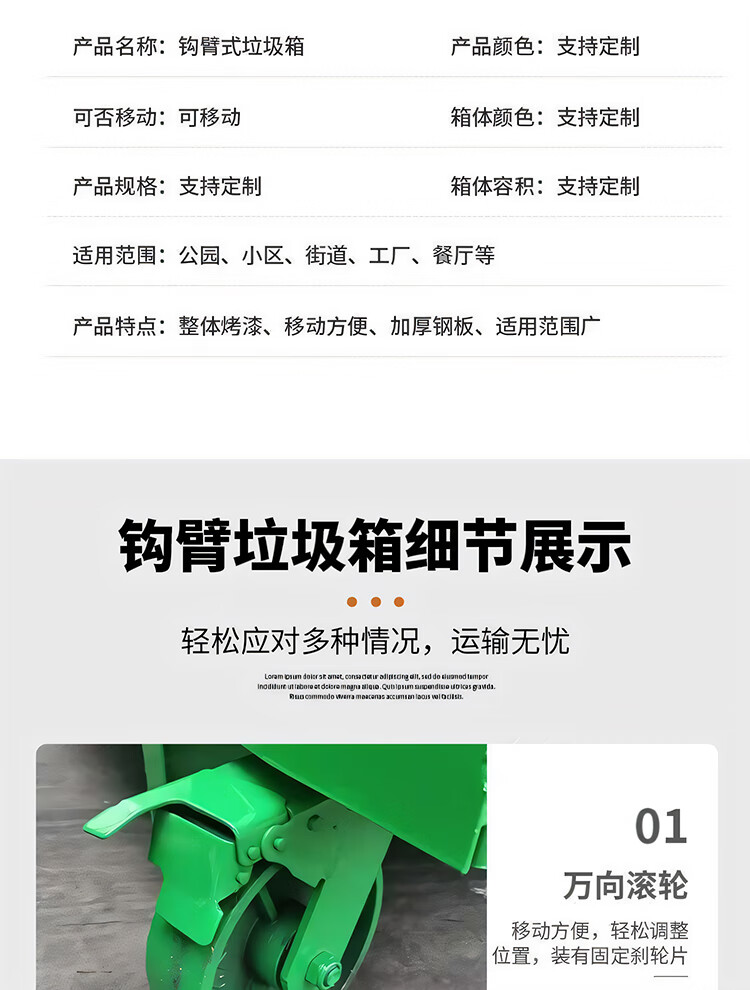 Hook-arm type garbage bin 3-square-meter garbage truck special box outdoor large sanitation removal box garbage bin transfer box Customized/style 1 Deposit Inquiry for quotation