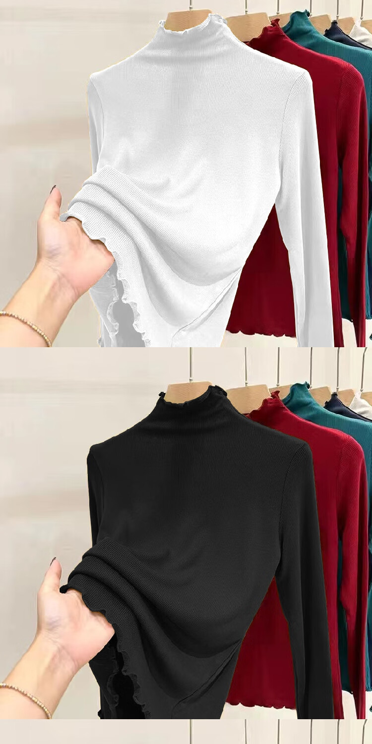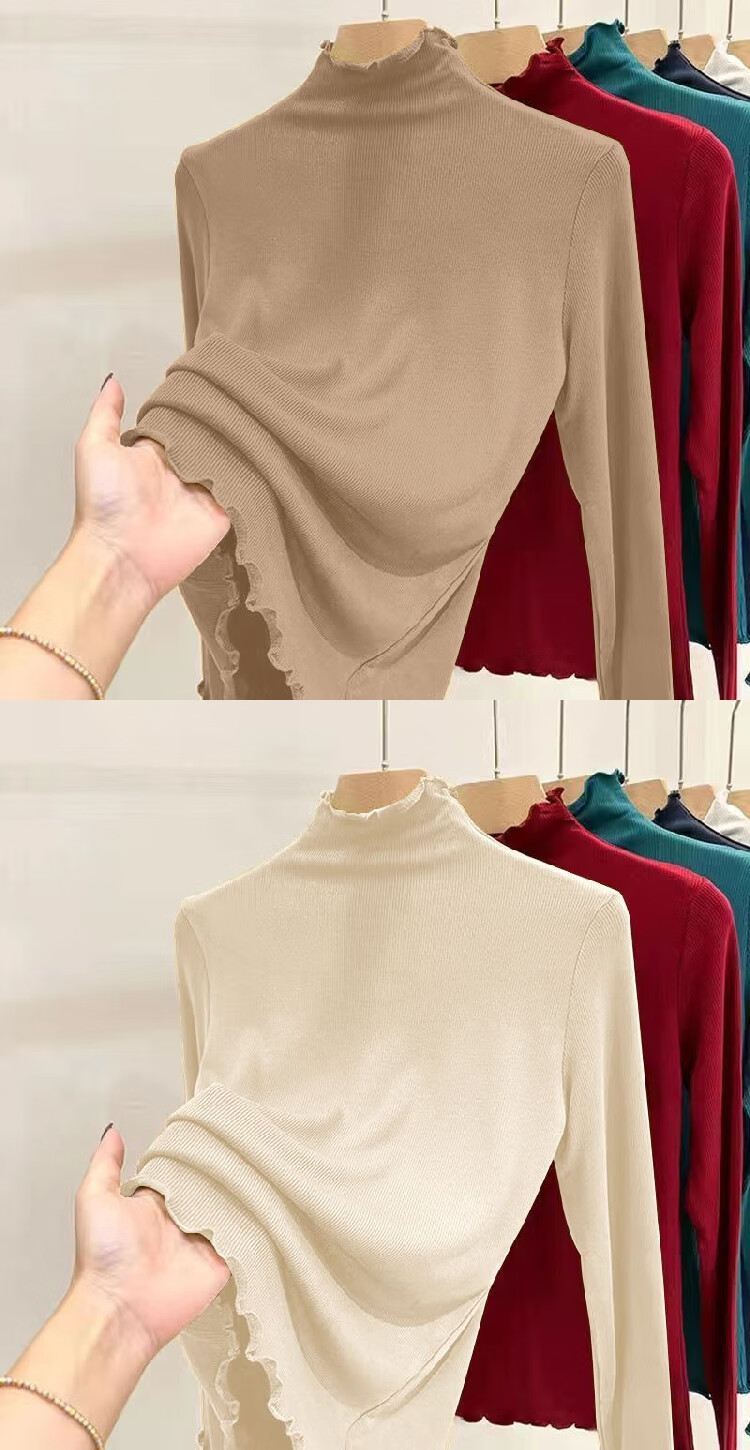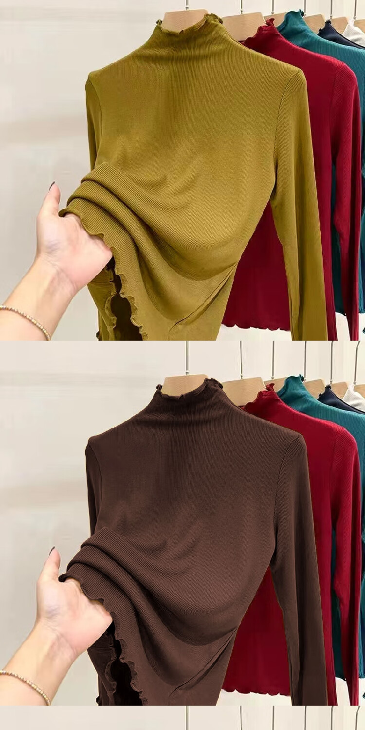 Threaded half-turtle collar bottoming shirt for women, 2025 autumn and winter slim-fit fungus long-sleeved T-shirt for women, can be worn outside 1000-ginger yellow L recommended 95-105 pounds