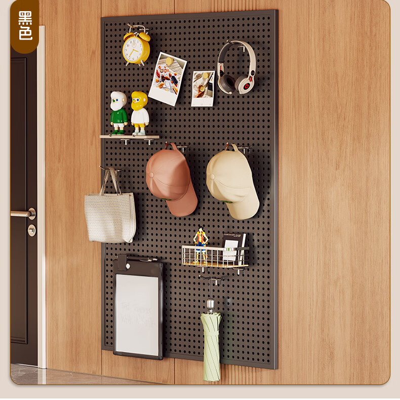 All are perforated boards, home living room wall storage racks, door-free punching plates, metal shape wall hanging plate storage racks, metal hooks 100*40*10cm, black