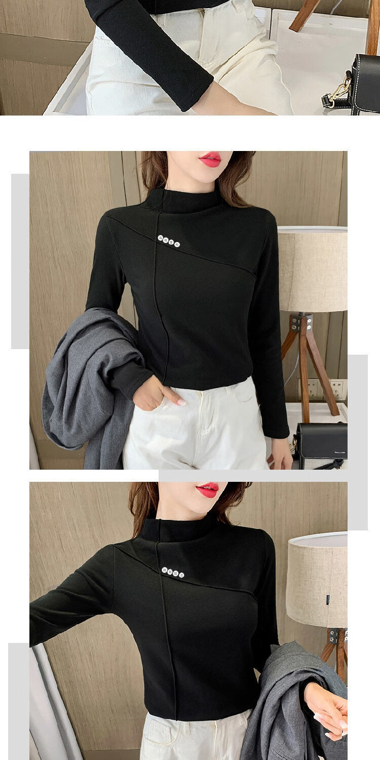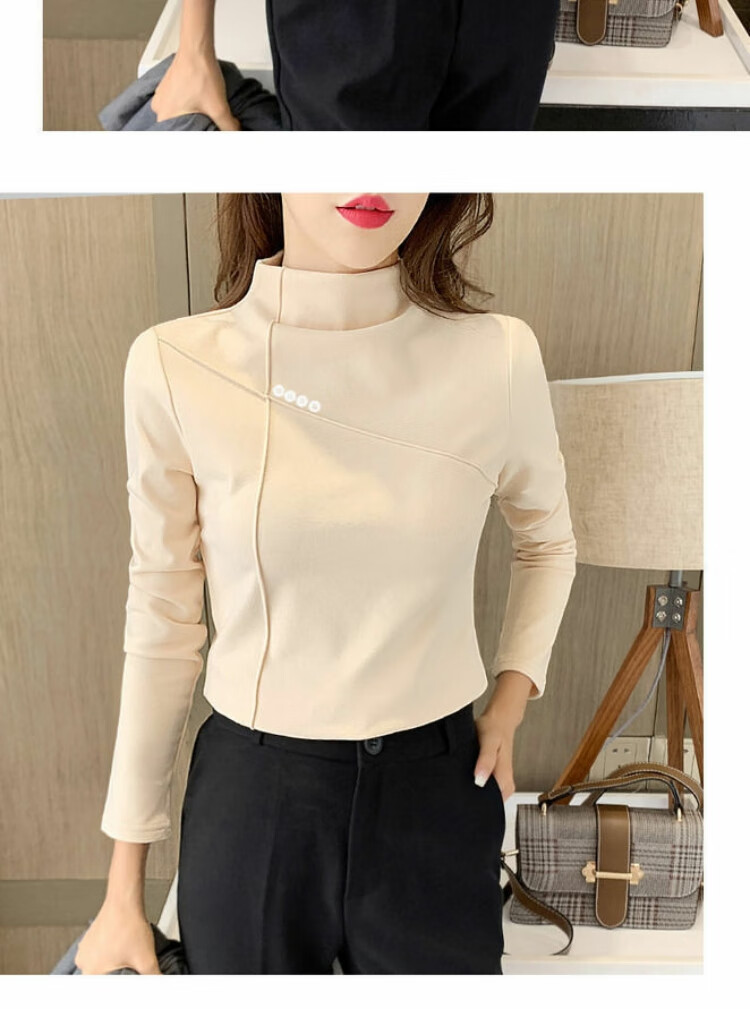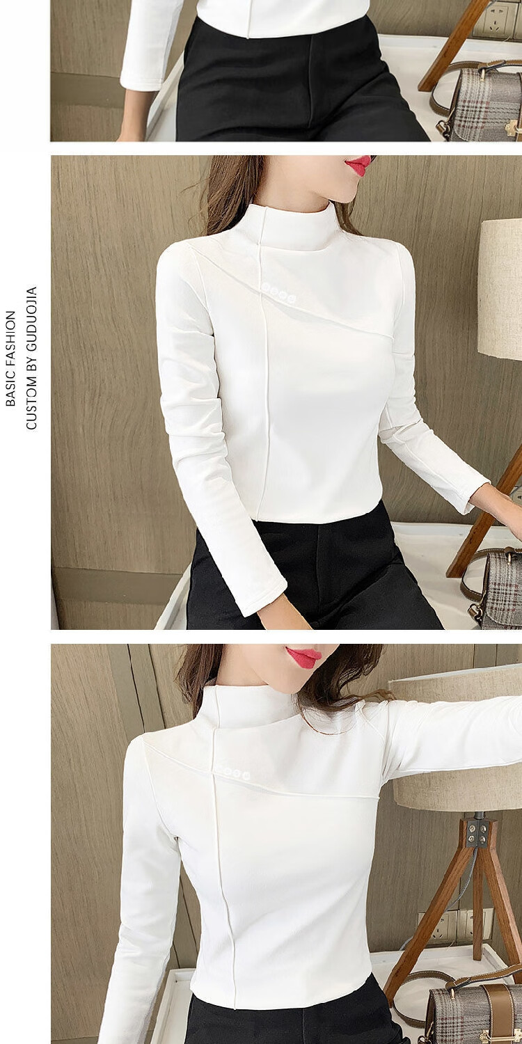 Double-sided German velvet bottoming shirt for women, new high-end half turtleneck 2025 T-shirt, fashionable high-end autumn and winter versatile top, white M, recommended 80-100 pounds